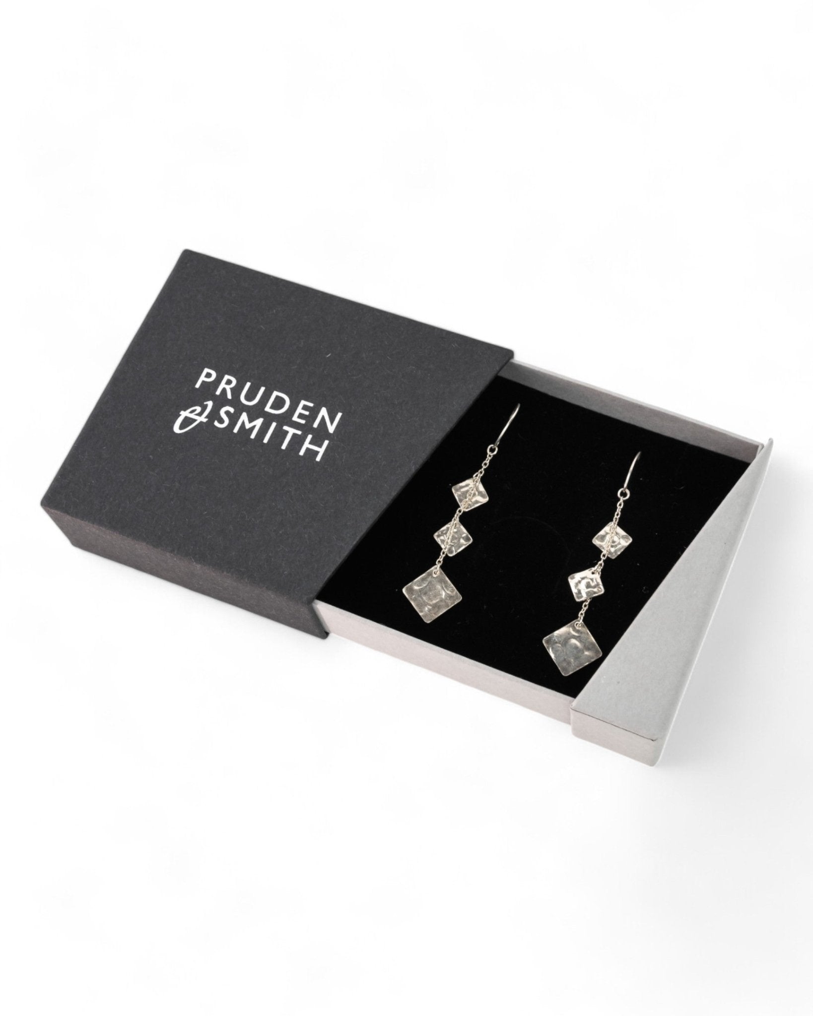 Marwar – Gehämmerte, quadratische, silberne Ohrhänger