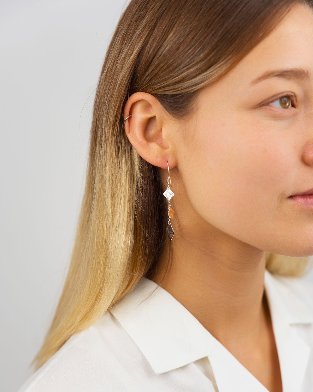 Die gehämmerten, quadratischen, silbernen Ohrhänger von Marwar vereinen Schlichtheit und Eleganz.