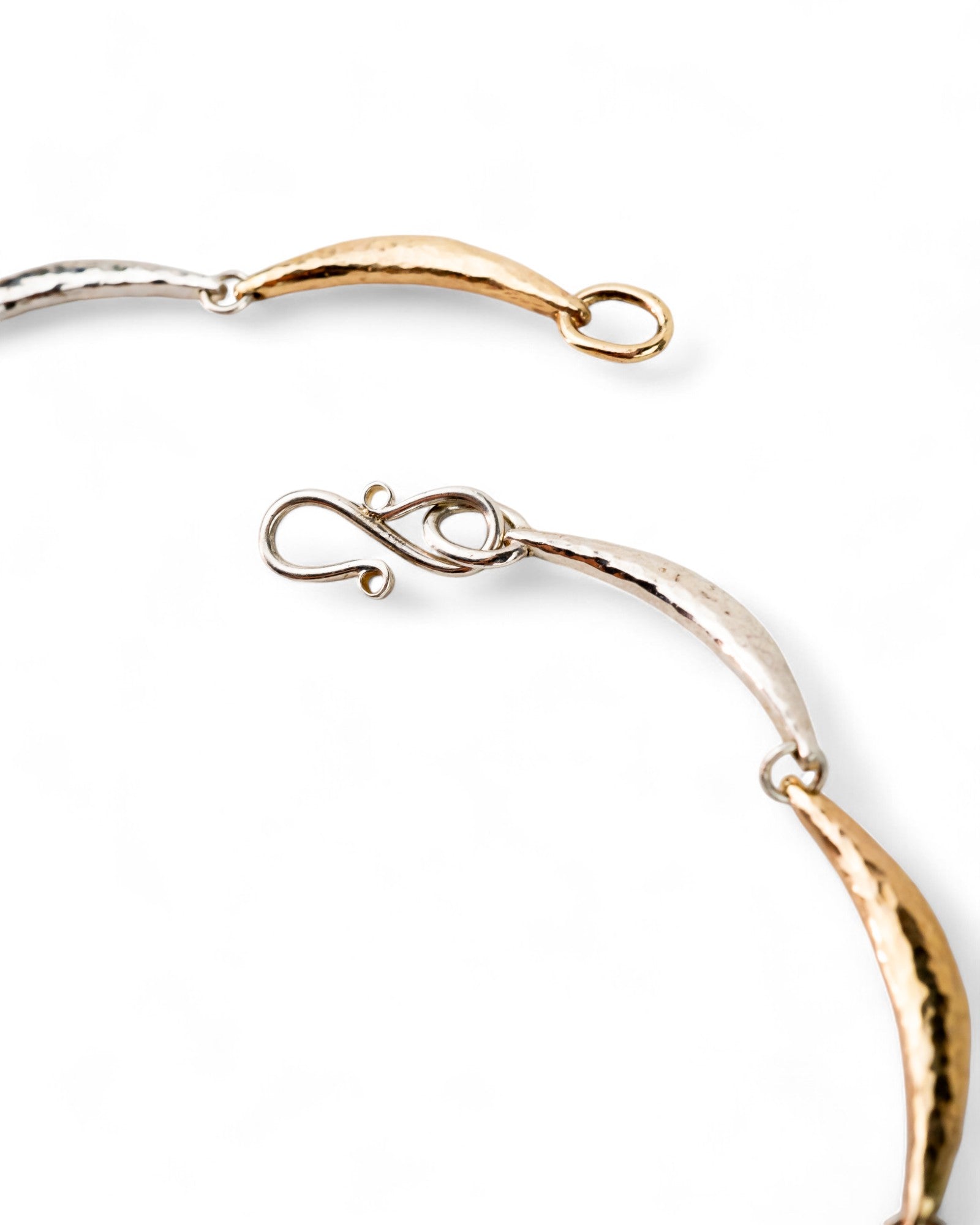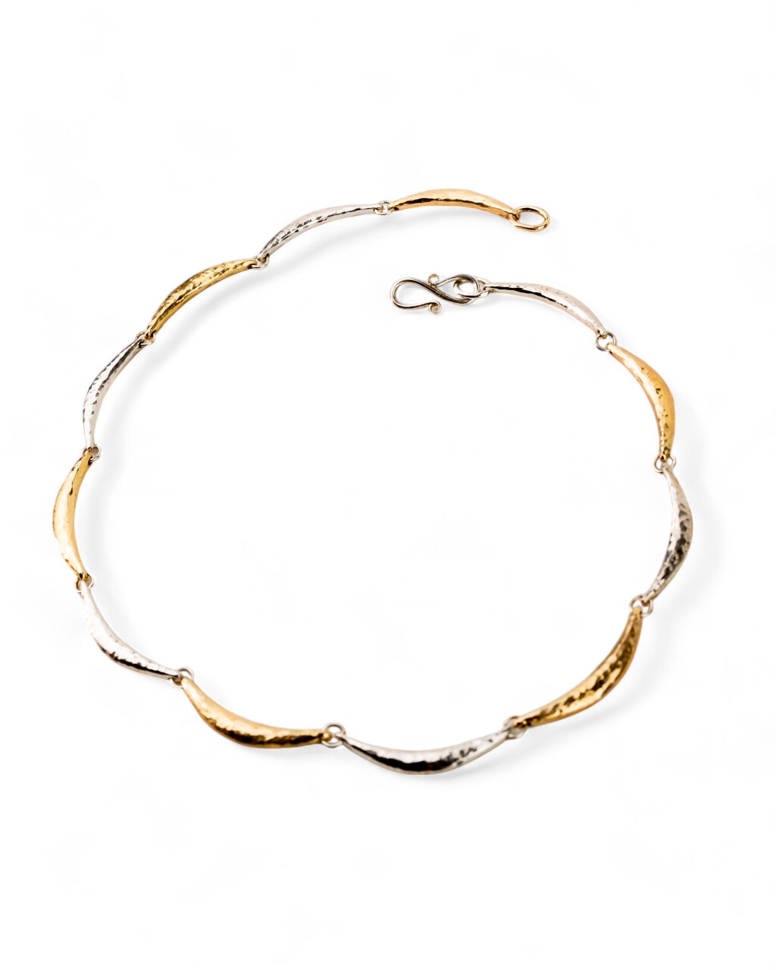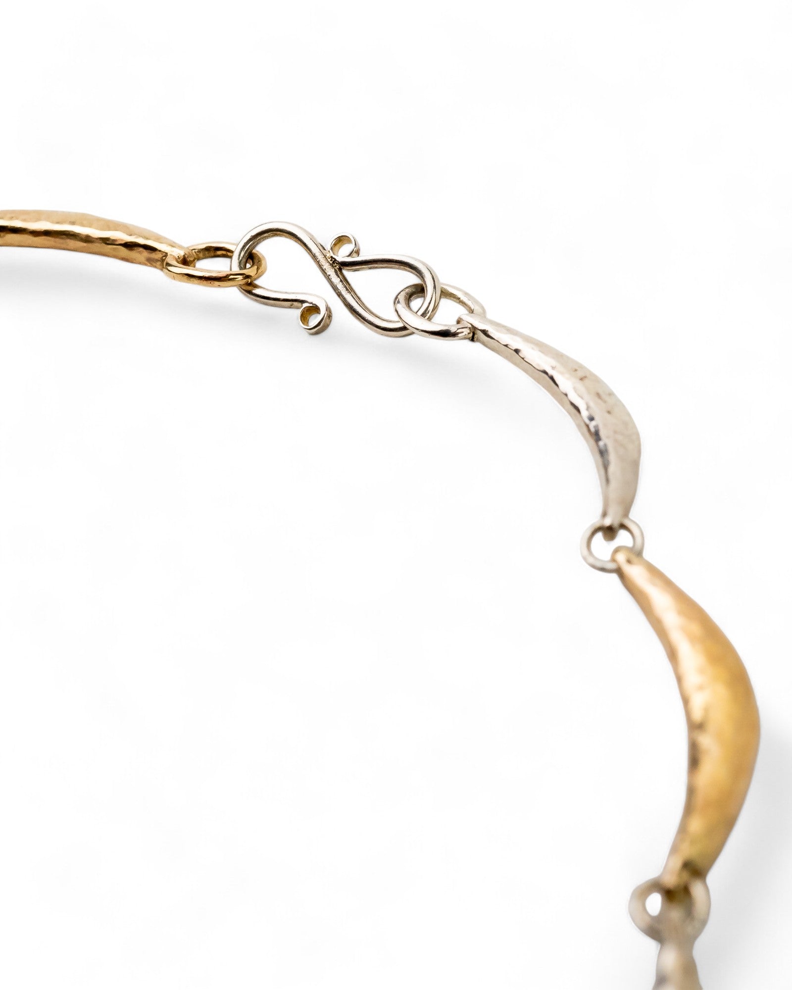 Halbmond-Halskette aus gehämmertem Silber und Gold