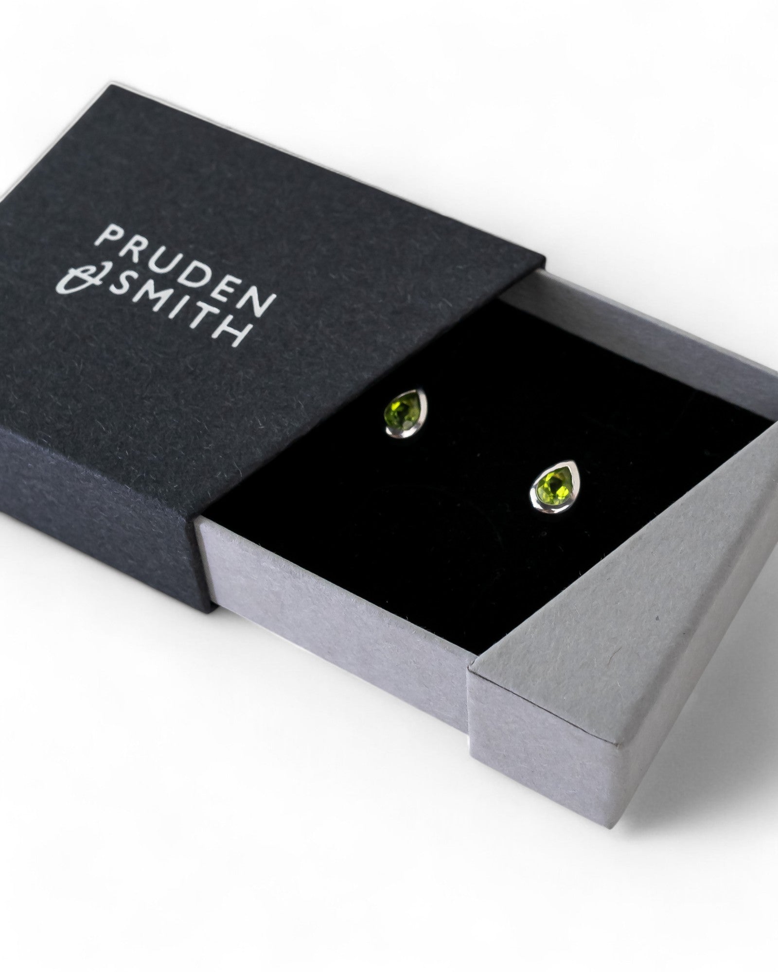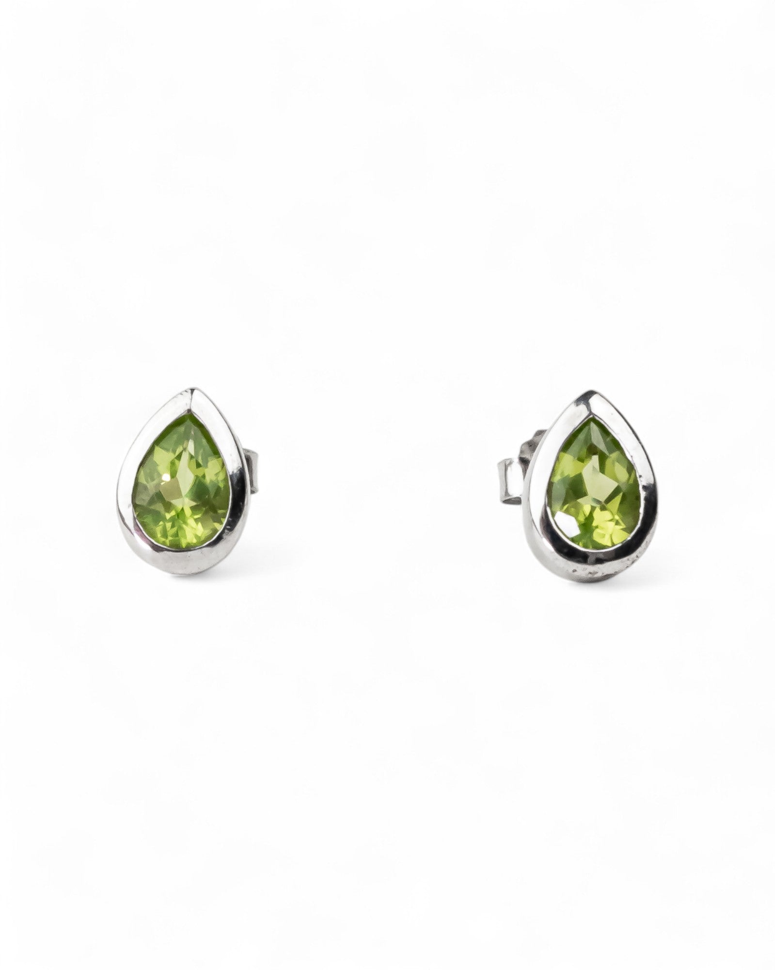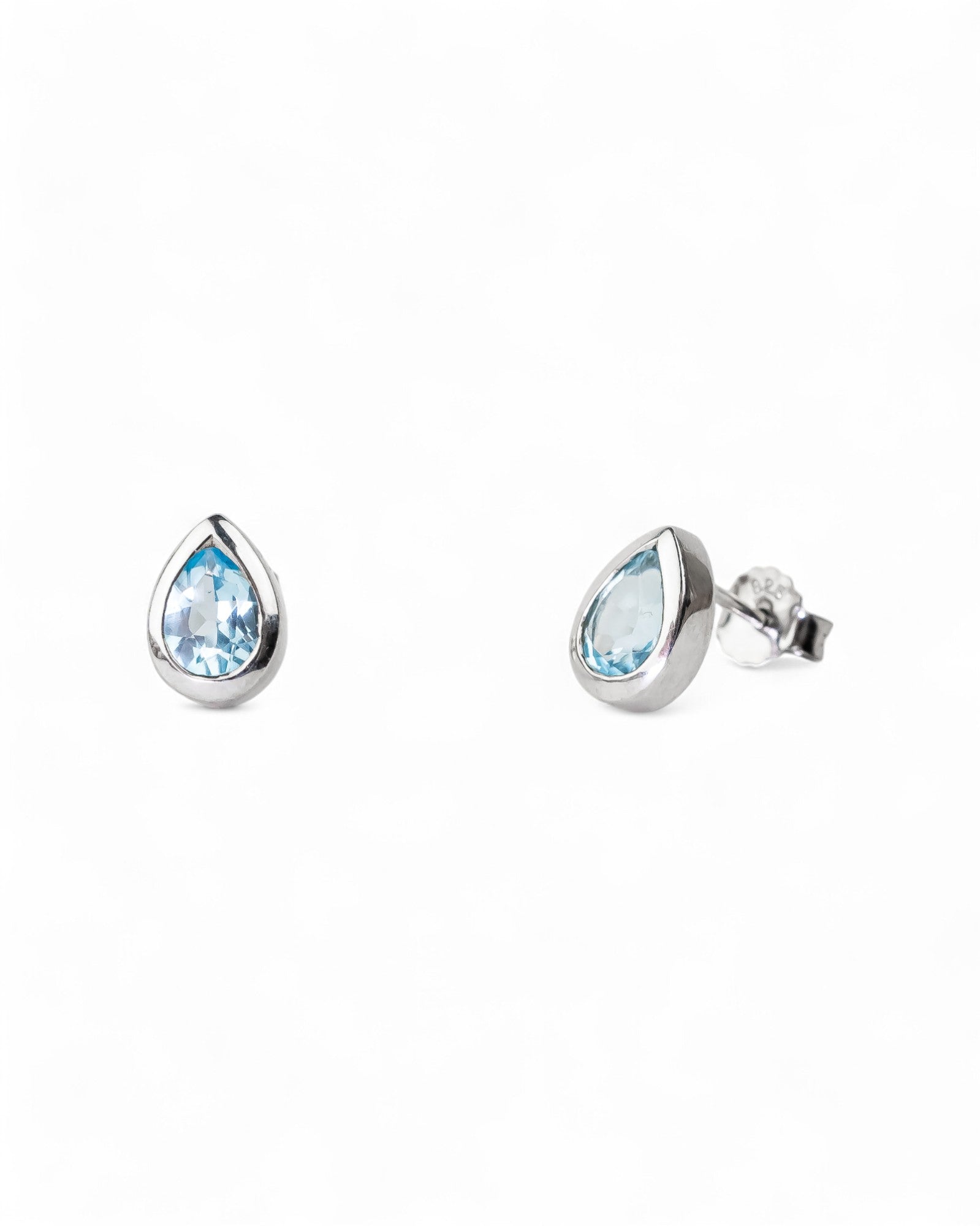 Die birnenförmigen Ohrstecker aus Silber sind mit facettierten, birnenförmigen Edelsteinen von 7 x 5 mm besetzt, die in Silber eingefasst sind.