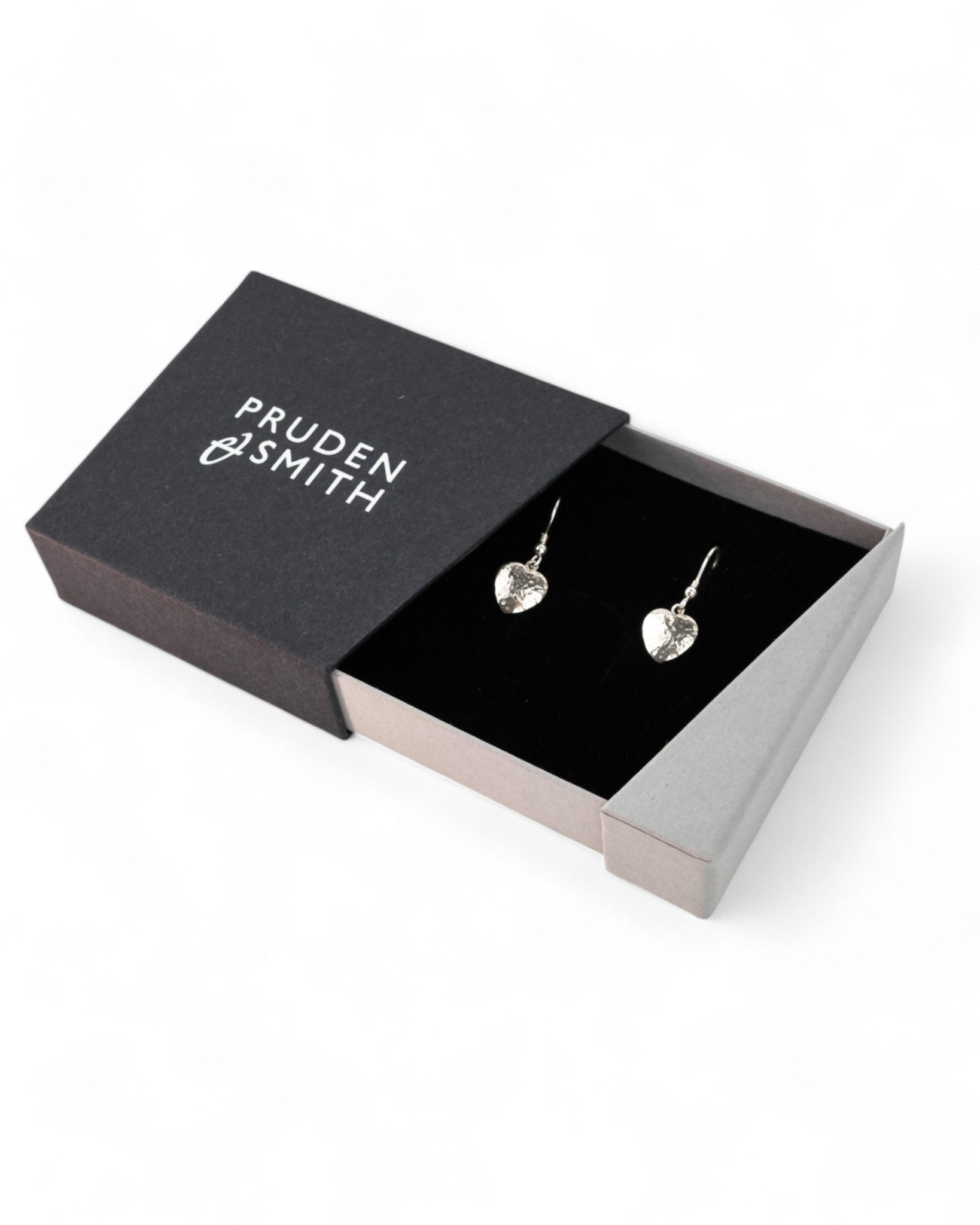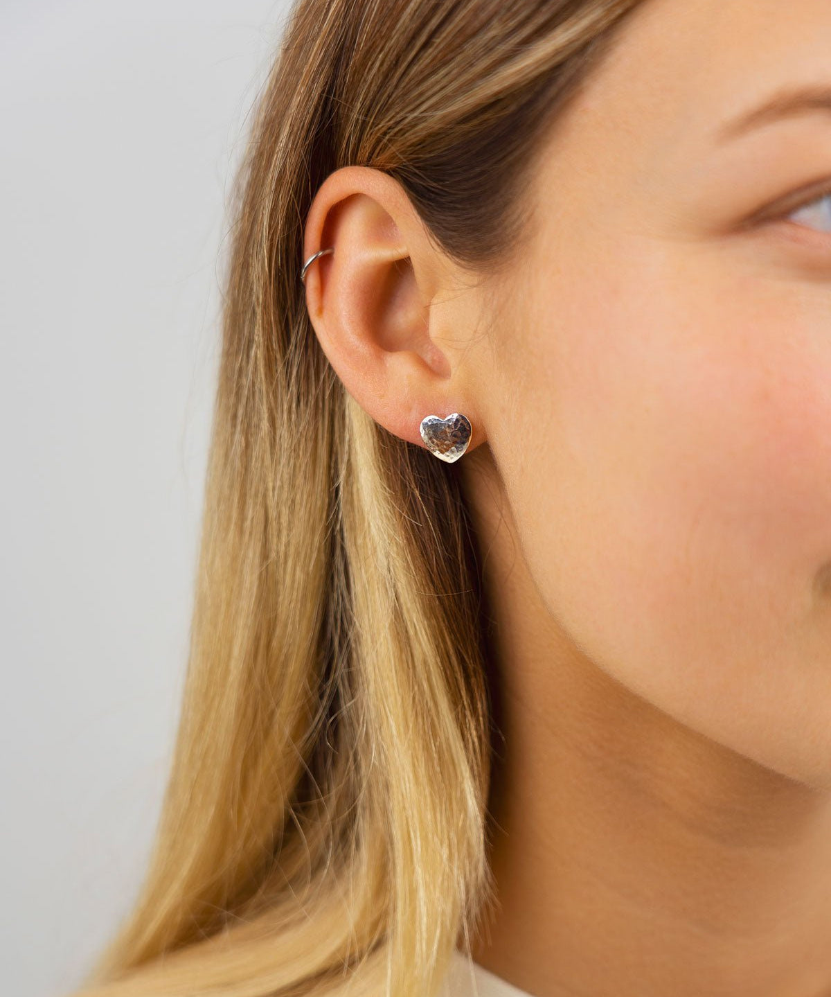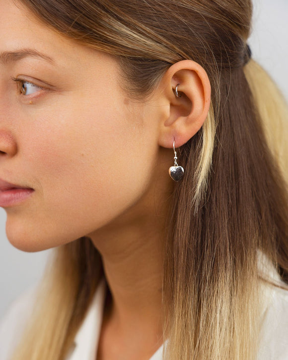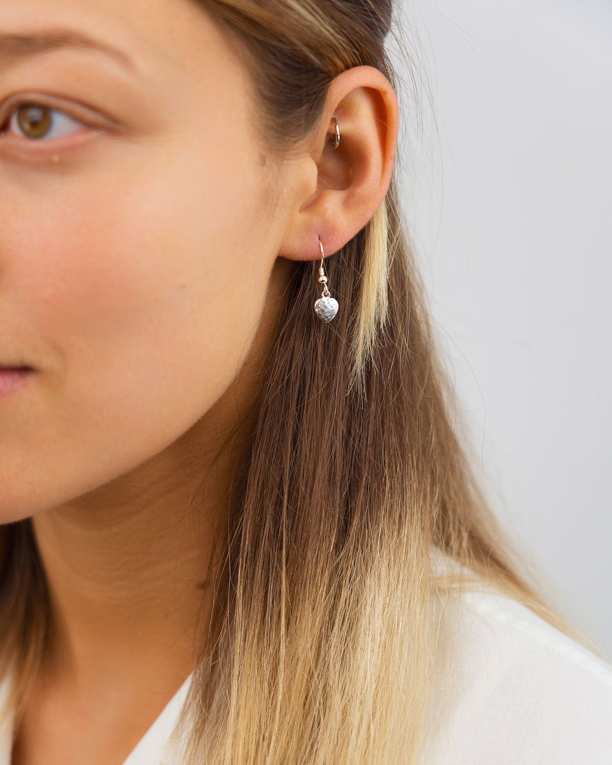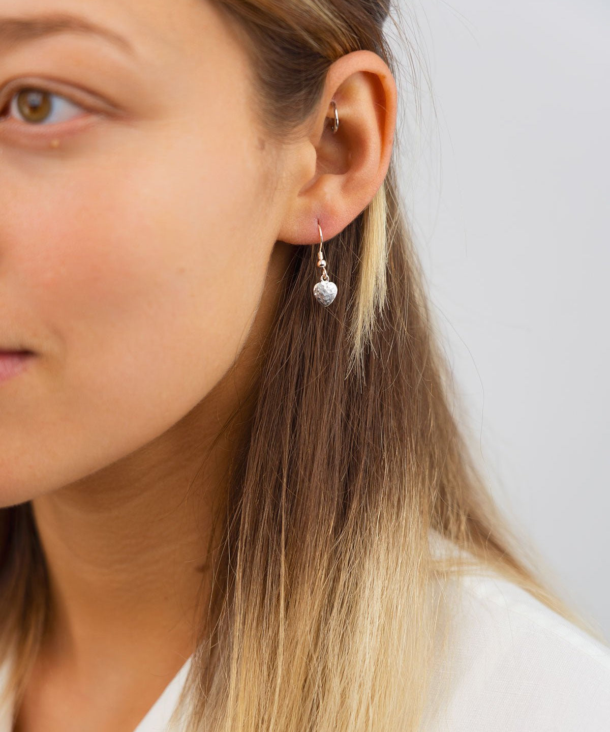 Die gehämmerten Herz-Tropfen-Ohrringe glitzern wunderschön, wenn sie das Licht einfangen, dank ihrer gehämmerten Oberfläche. Die kleineren Herzen sind für alle Altersgruppen geeignet und eine beliebte Wahl als Geschenk für Brautjungfern und andere besondere Anlässe.