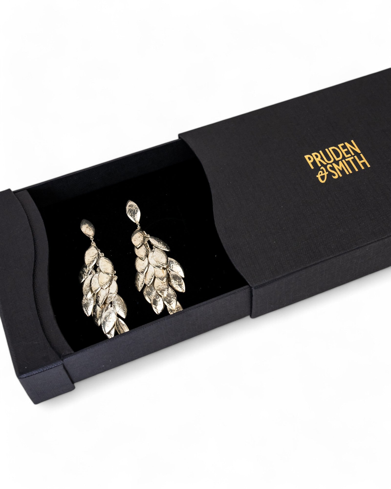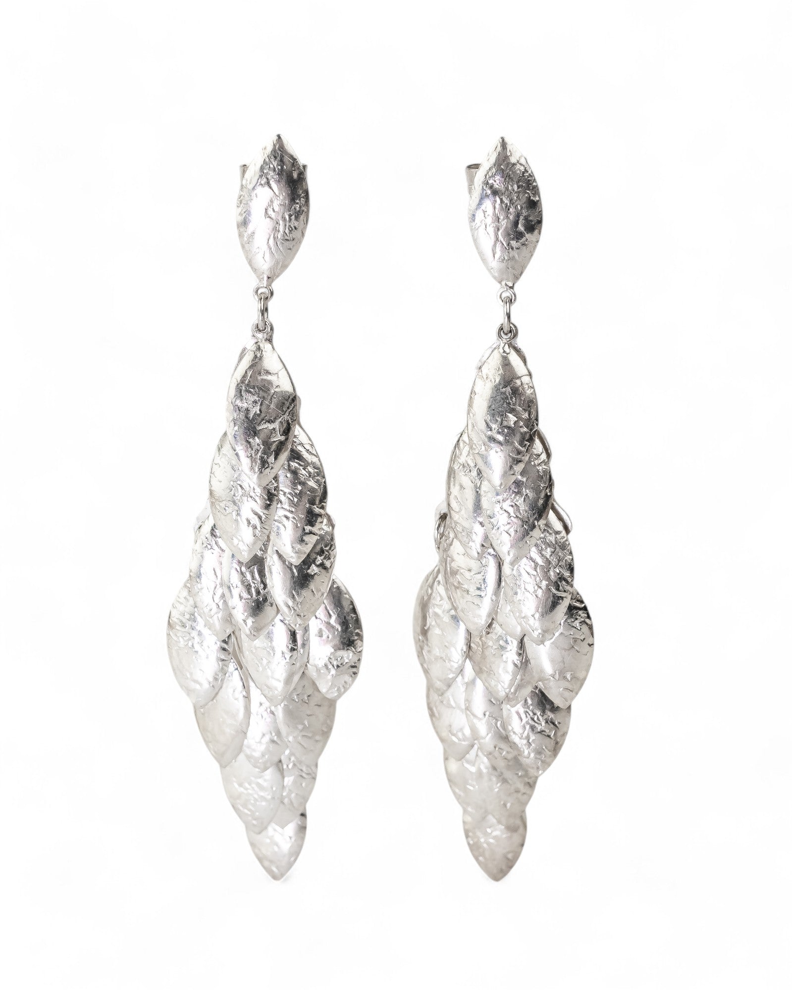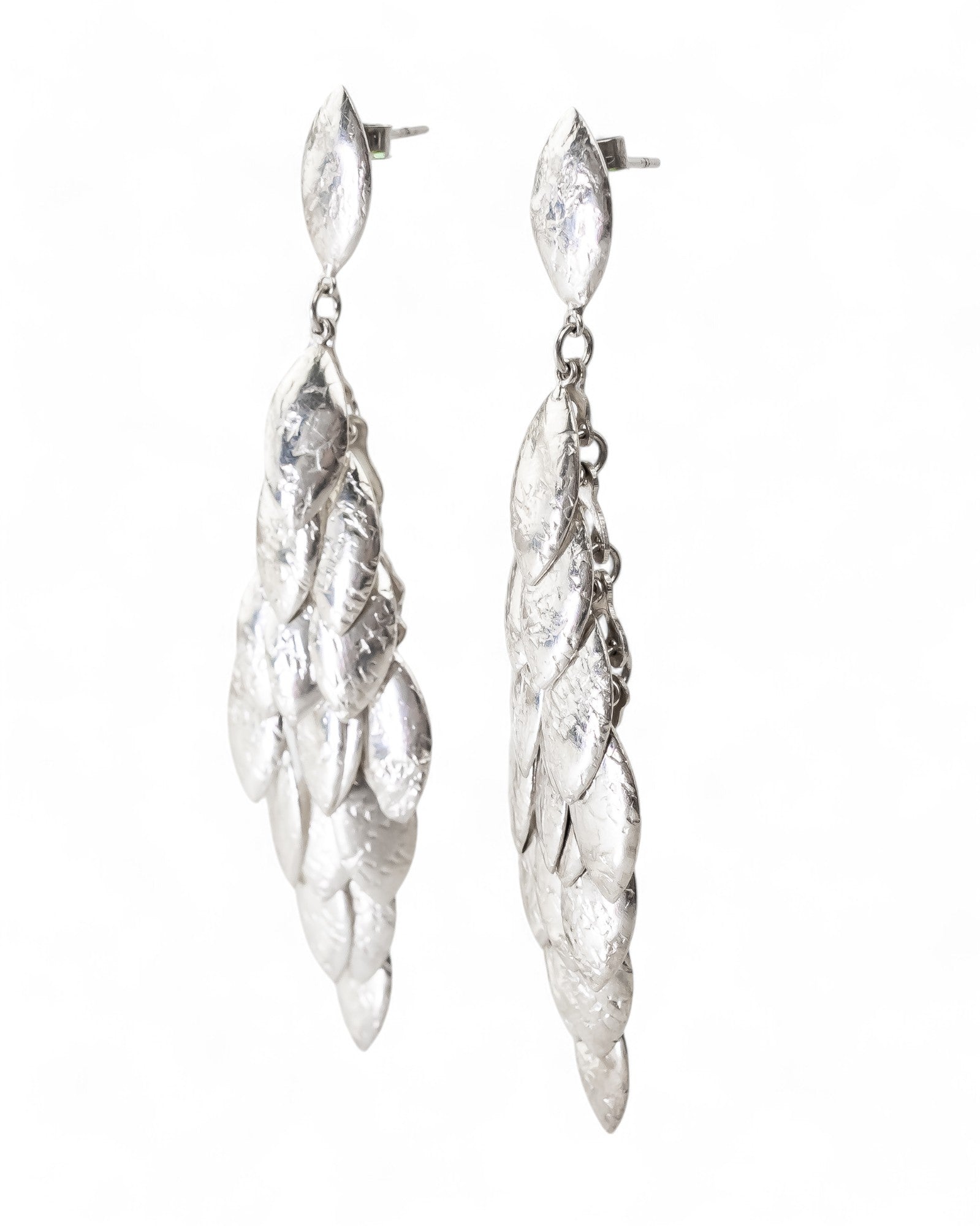 Les boucles d'oreilles pendantes en argent à feuilles multiples mesurent environ 60 mm de longueur et sont conçues pour faire une déclaration.