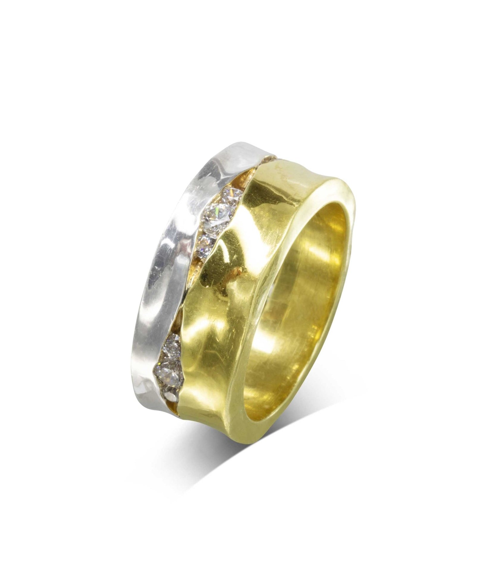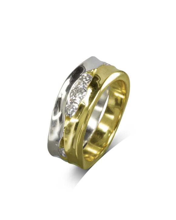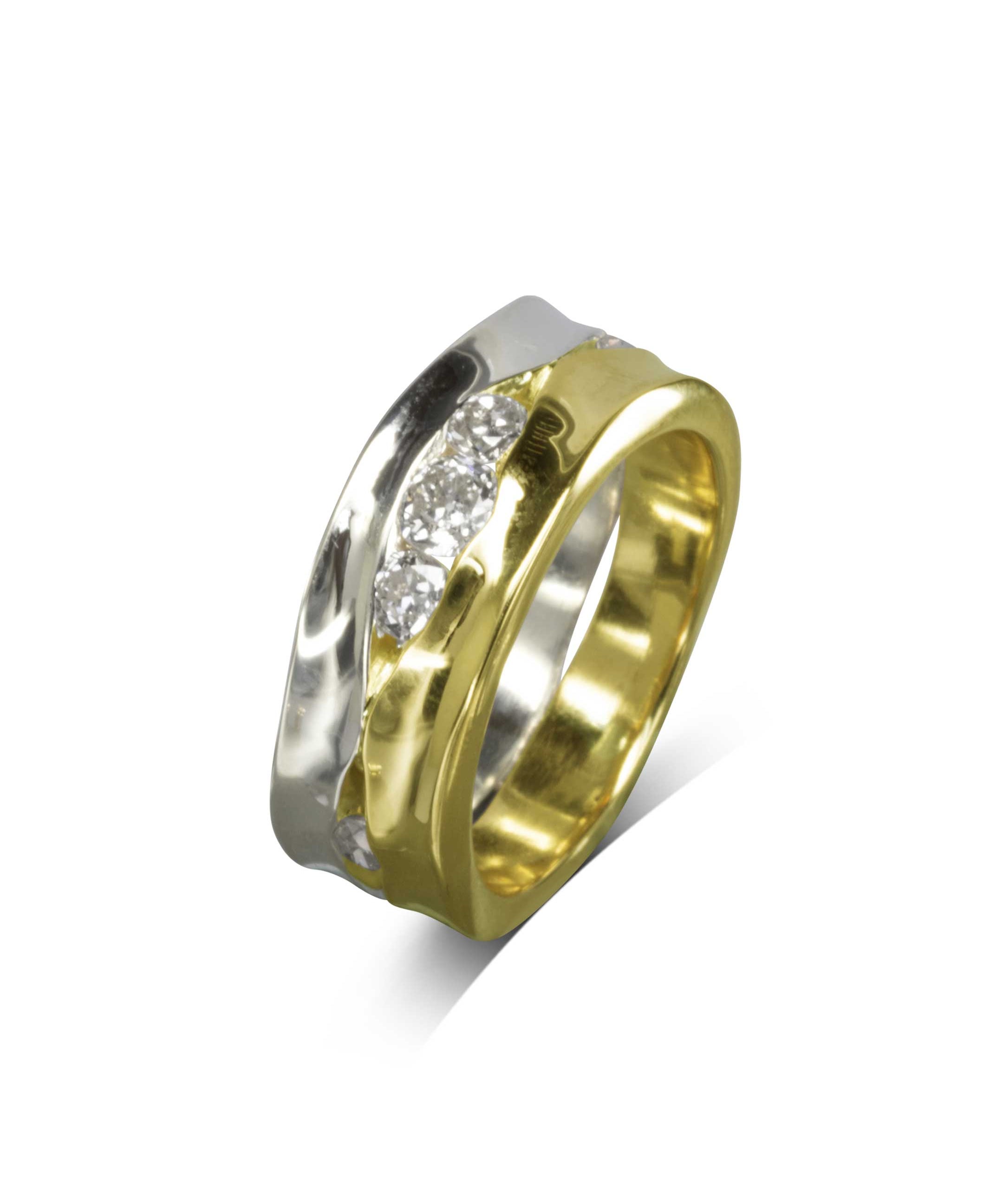 La conception de la bague d'éternité Trap Trilogy Sapphire Diamond - 4 mm a été inspirée par des galets piégés dans le bois le long de la côte du Sussex.