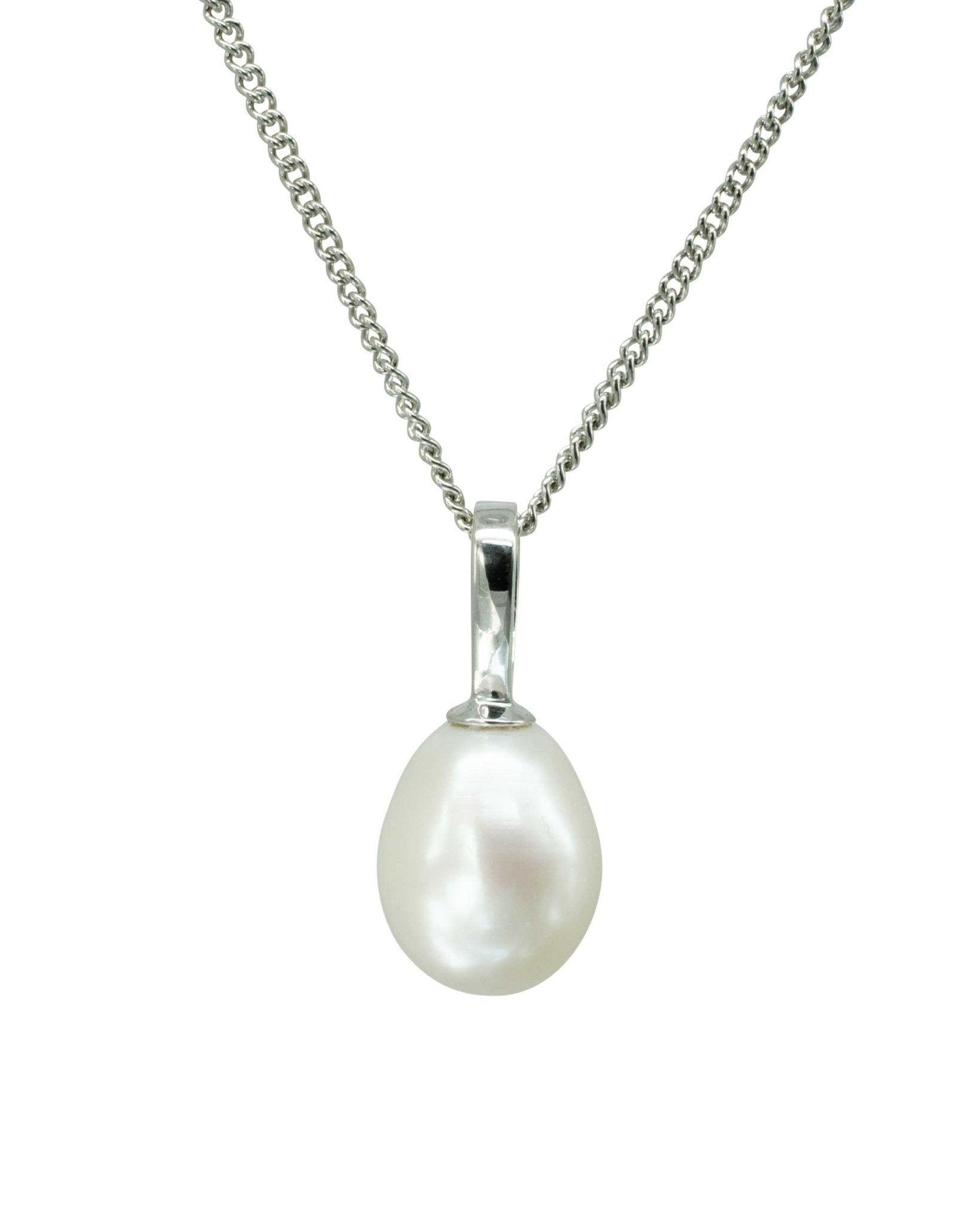 The Simple Pearl Gold Pendant features a 12mm drop-shaped white freshwater pearl.