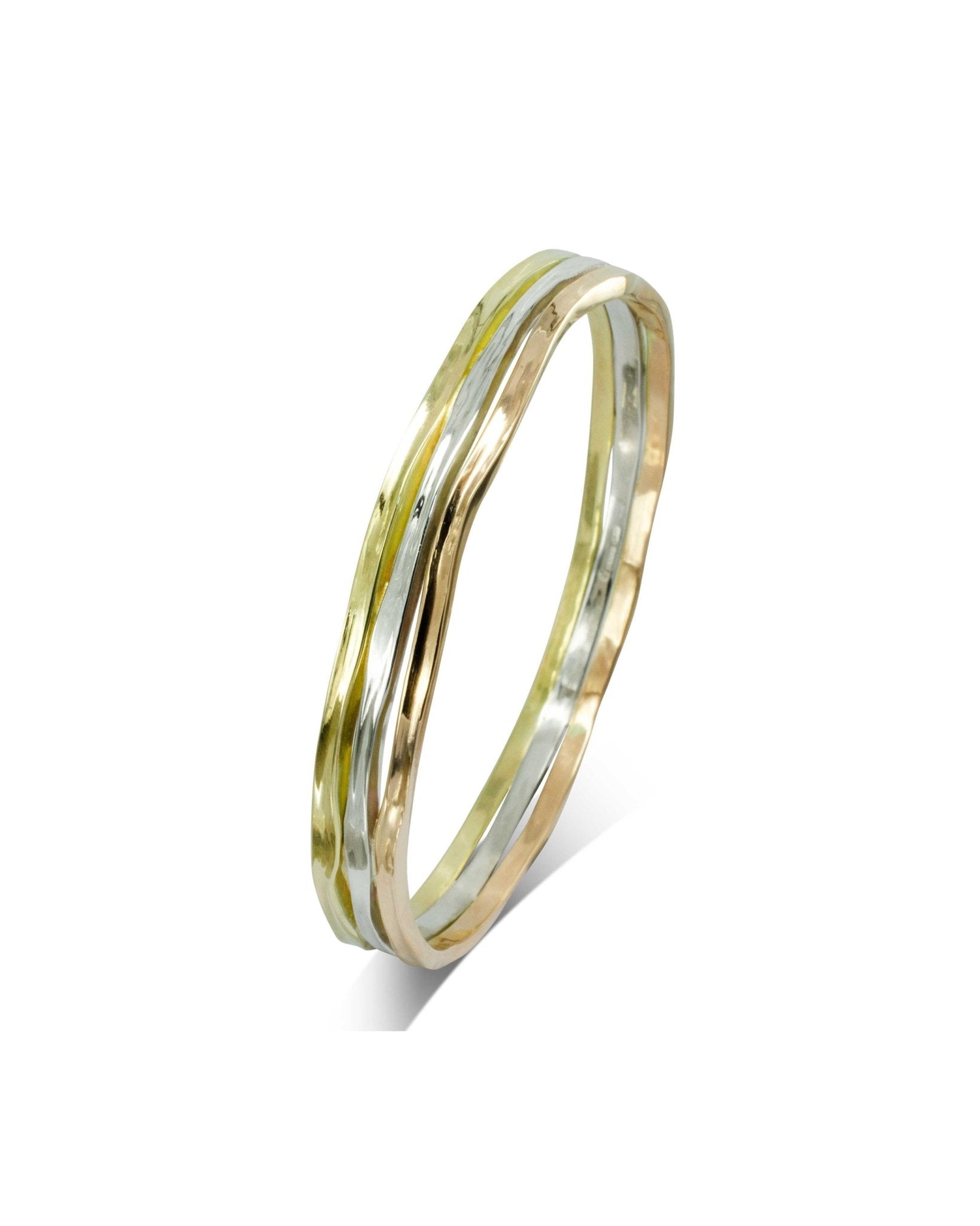 Side Hammered Mixed Metal Bangle 9ct White Gold 9ct & Rose Gold & 9ct Yellow Gold / Extra Large 70mm ID