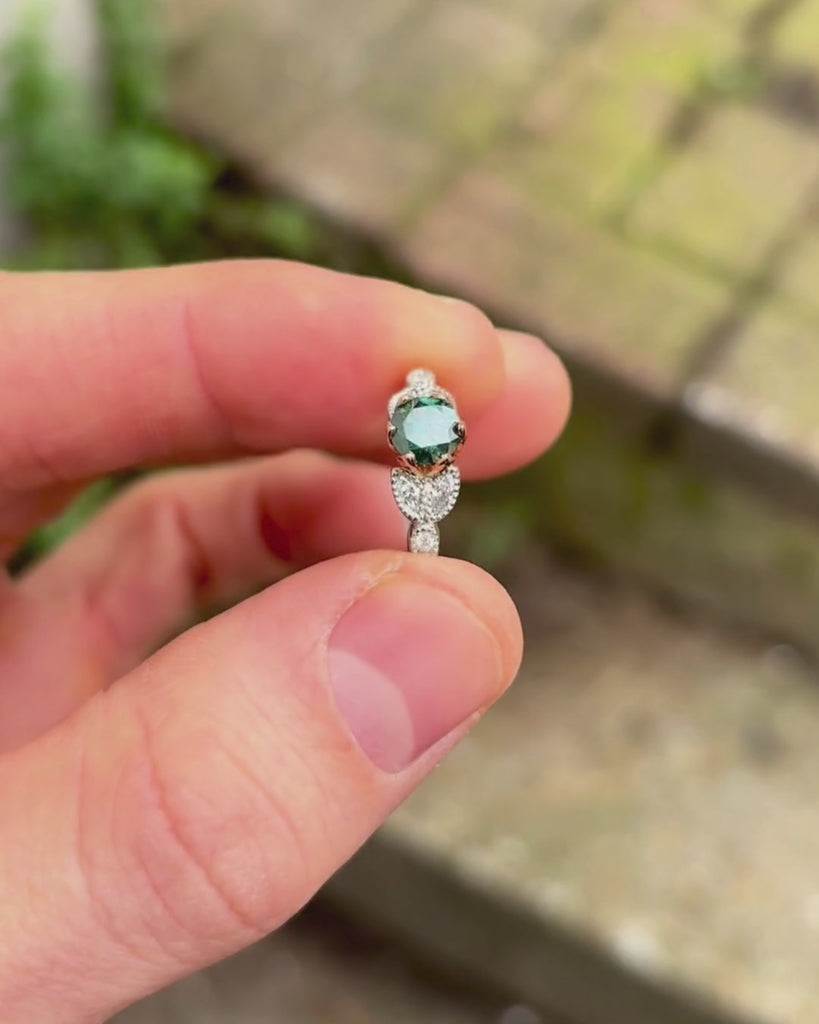 Vintage Green Diamond Engagement Ring