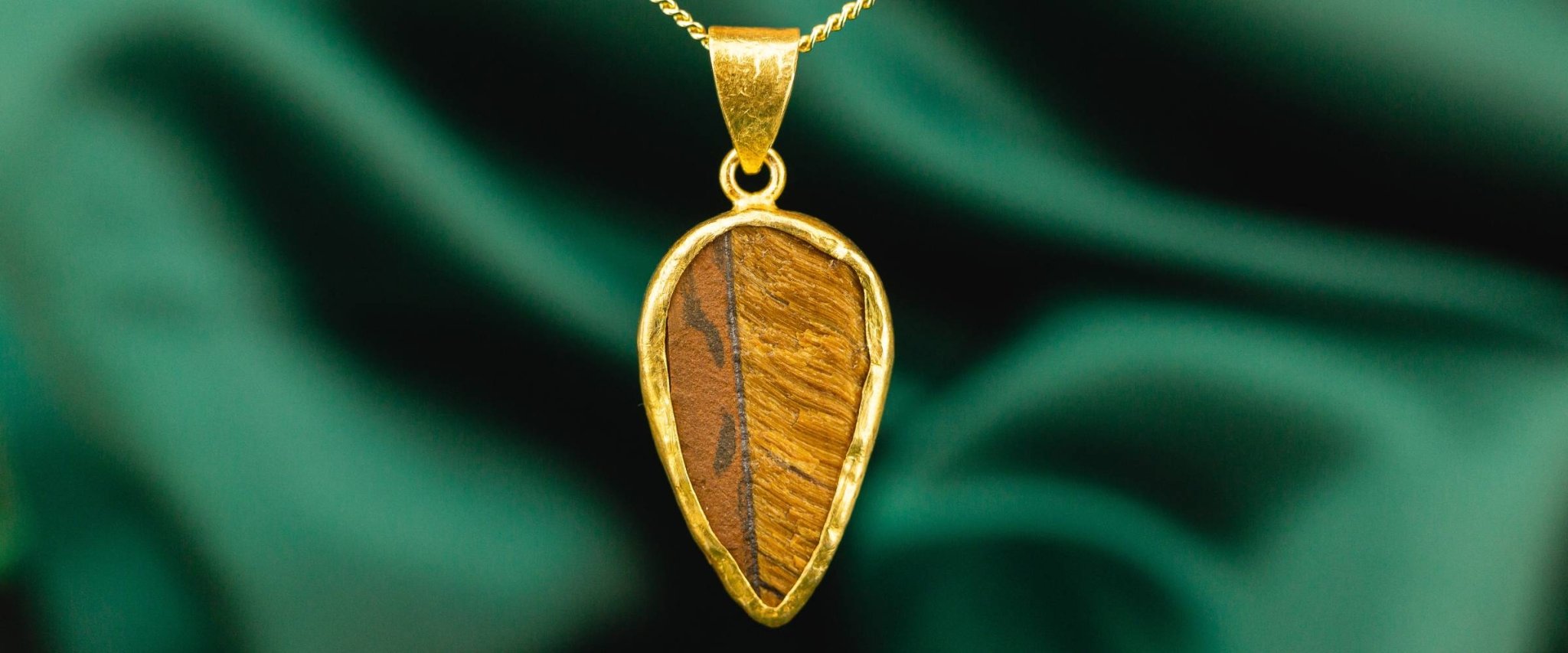 Our iconic range of tigers eye jewellery features rough cuts of the gemstones for a unique finish and natural feel on each piece of jewellery. Most of our designs are paired with gold or gold plated silver (vermeil) to enhance the warm tones of this distinctive stone.