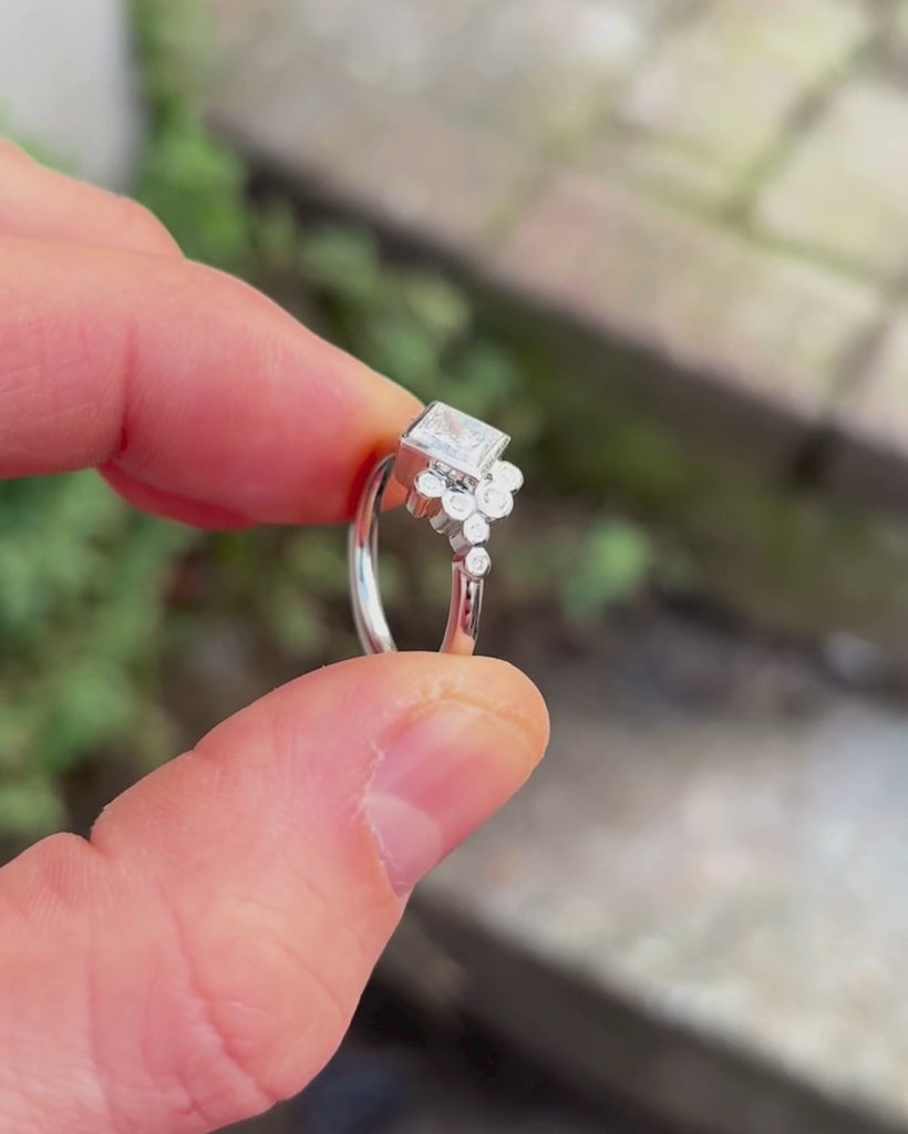 Princess Rocky Water Bubbles Engagement Ring