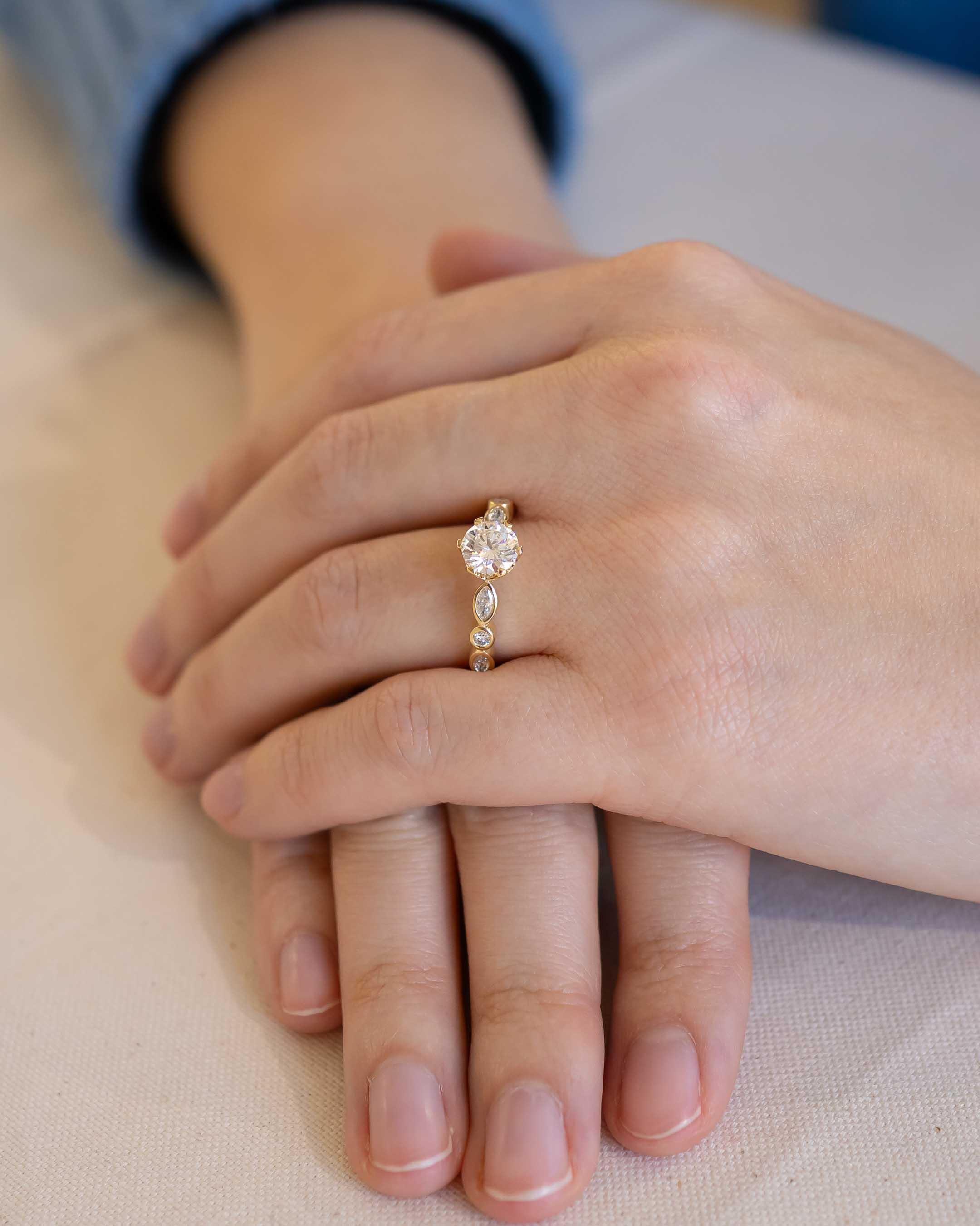 he design of our Claw Engagement Rings is centred around elegance and precision. The fine claws gently curve around the diamond, lifting it above the band to allow exceptional light reflection and a delicate sense of openness. Each ring is carefully balanced to ensure both security and beauty, with refined proportions that celebrate the stone’s natural sparkle.