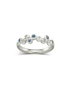 • Brillanz der Diamanten: Zwölf FV-Diamanten im Bereich von 1,2 mm bis 1,5 mm sind in die wellenförmigen Kanäle rund um den Ring eingefasst, mit einem Gesamtkaratgewicht von ungefähr 0,18 ct.