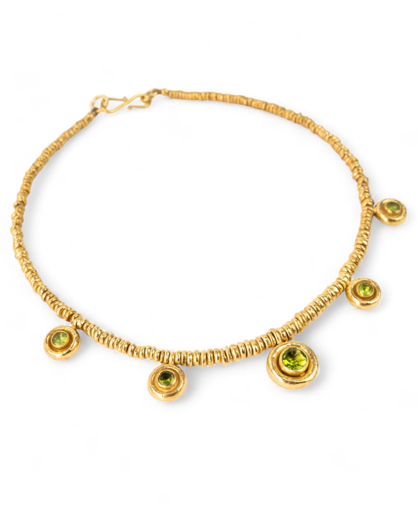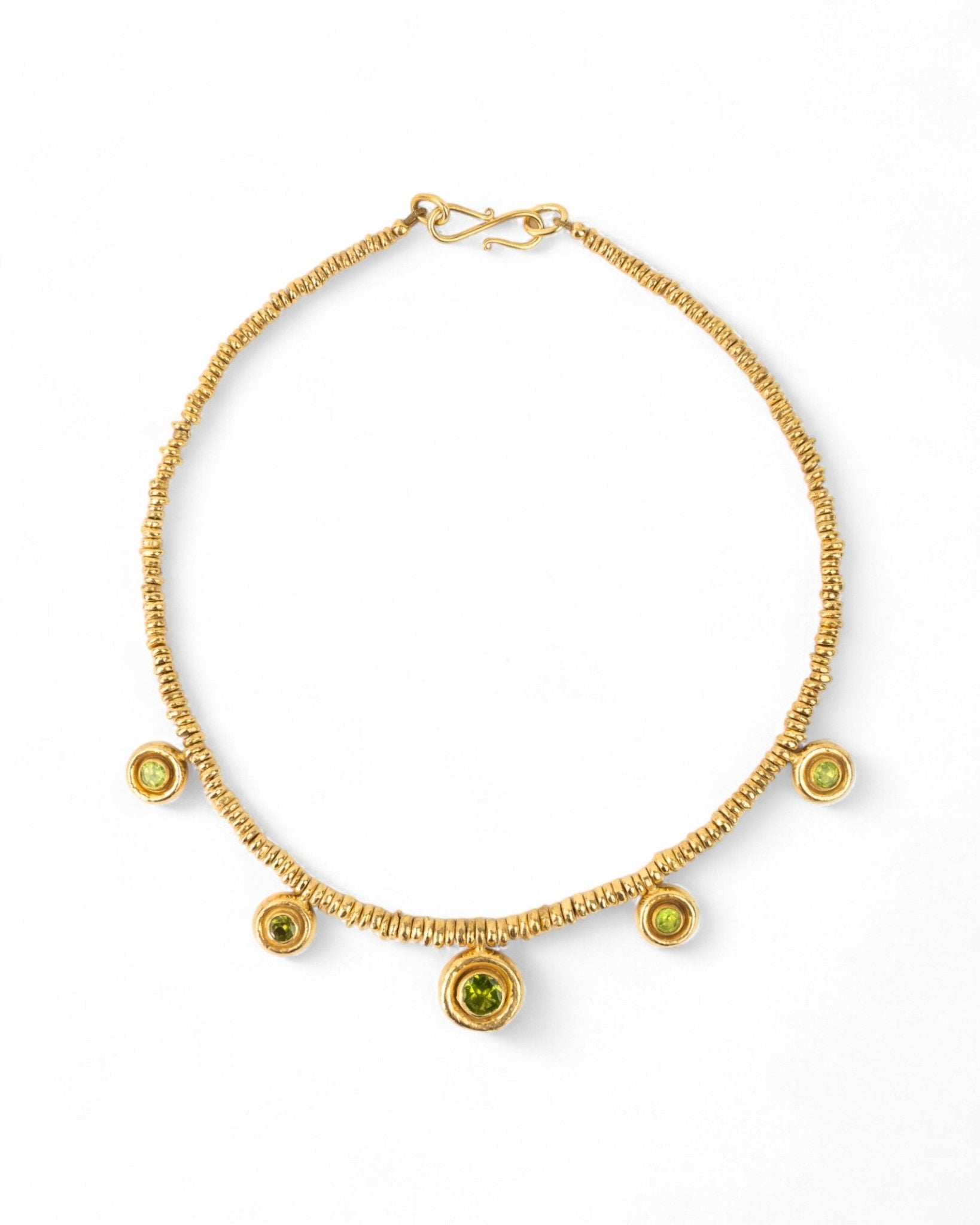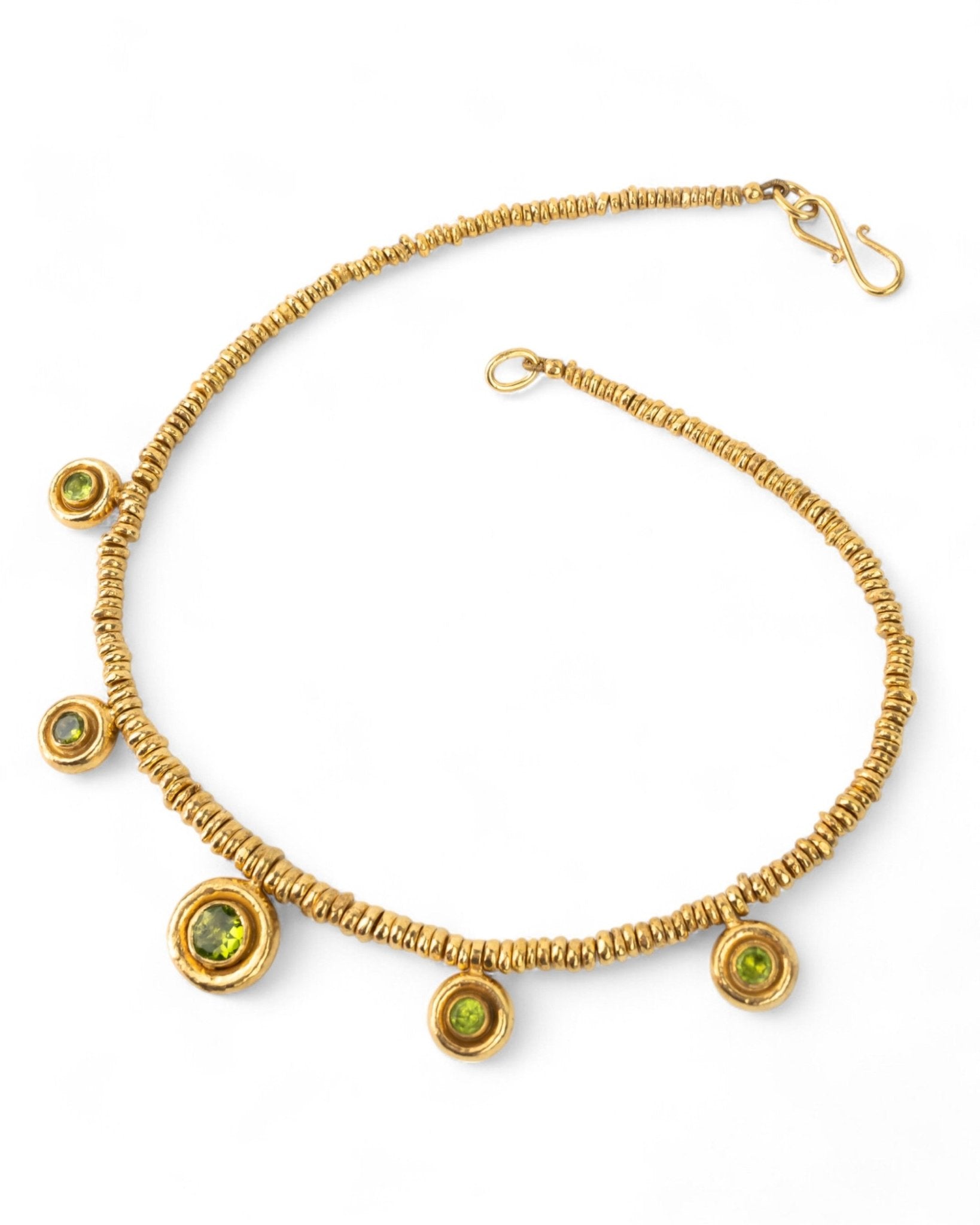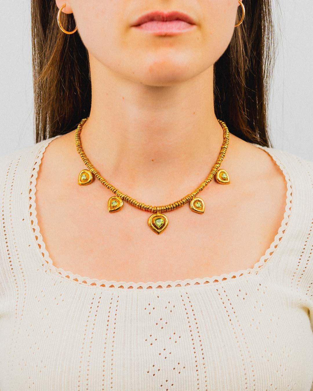 Die gehämmerte Peridot-Herzhalskette hat ein unverwechselbares Design und ist handgefertigt aus vergoldetem Silber.