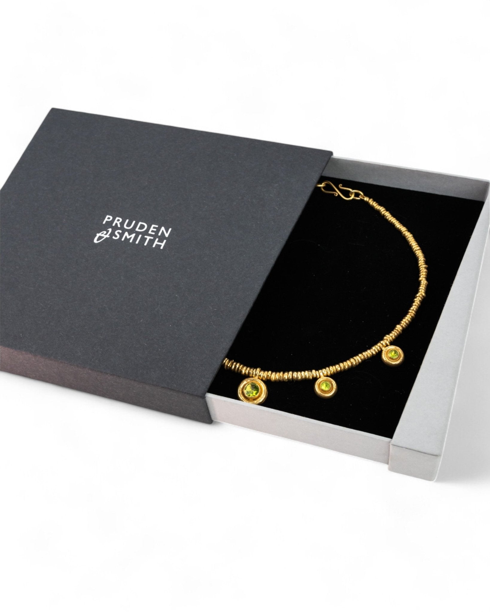• Vergoldete Eleganz: Diese aus vergoldetem Silber gefertigte Halskette bietet das luxuriöse Aussehen von 18 Karat Gelbgold und gewährleistet gleichzeitig Haltbarkeit und Erschwinglichkeit. Die warmen Goldtöne ergänzen den leuchtenden Peridot wunderschön.