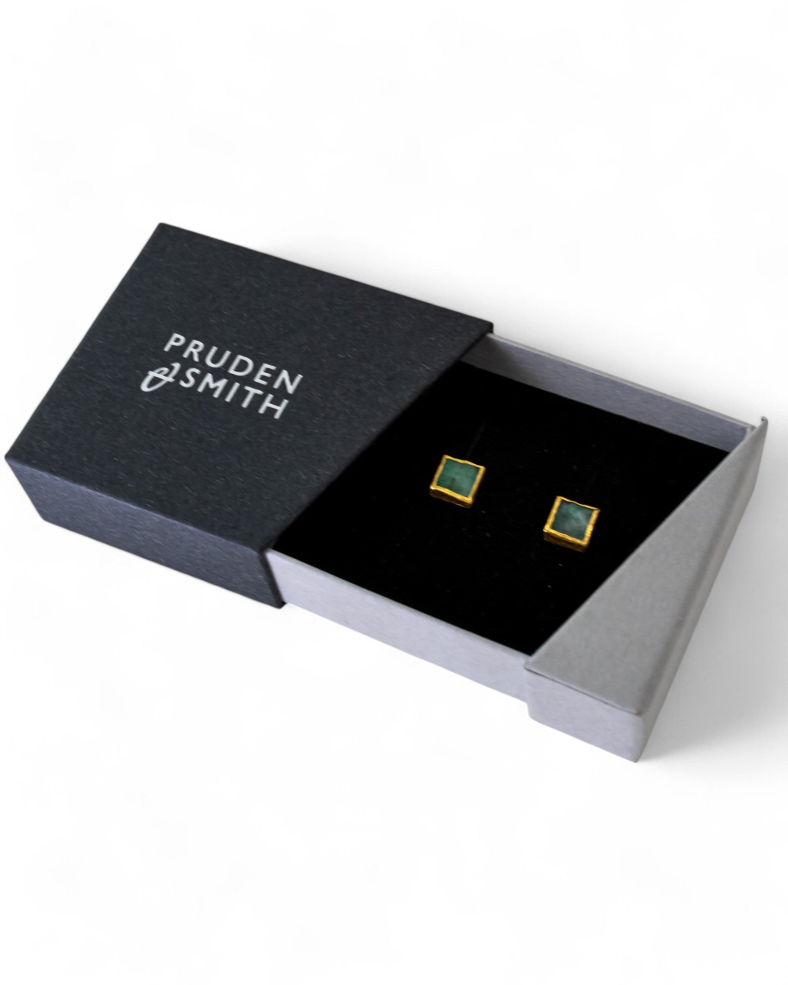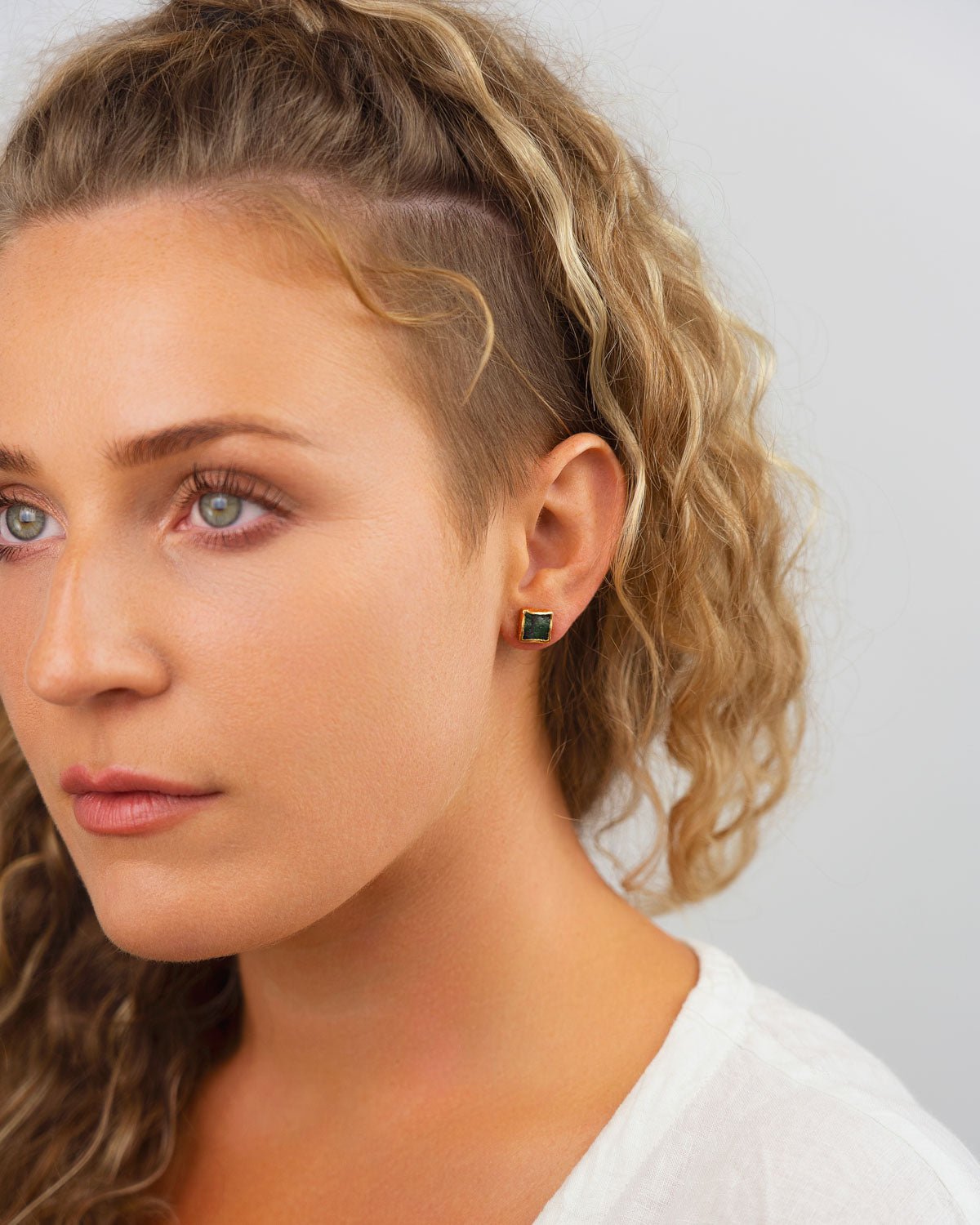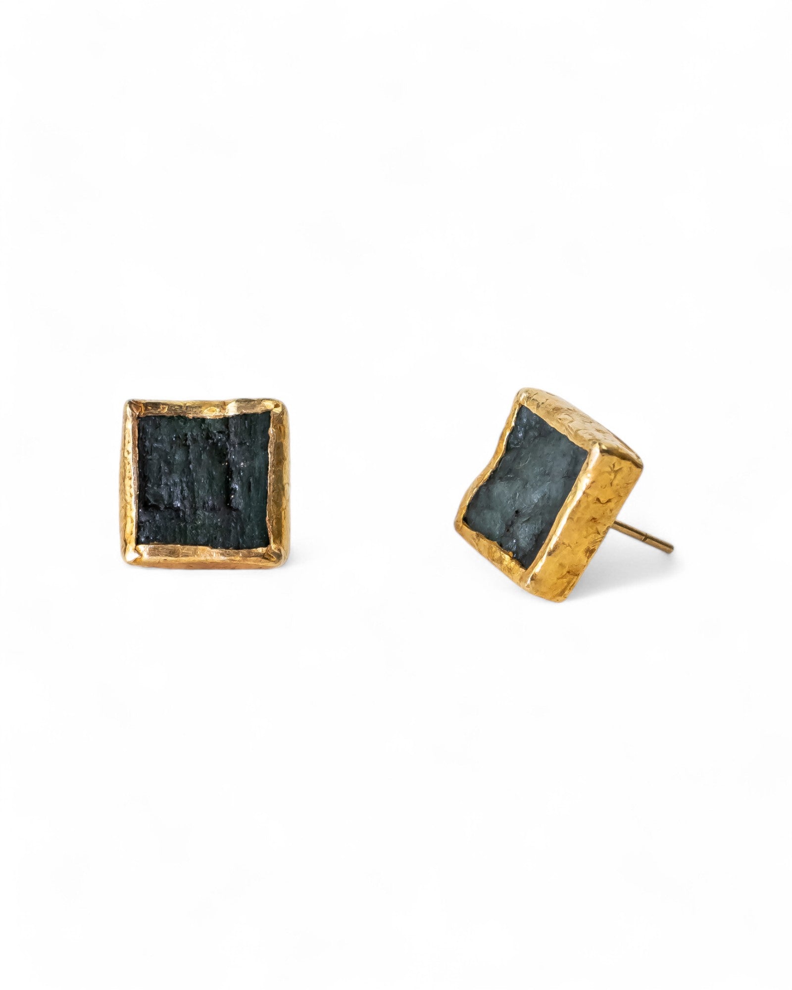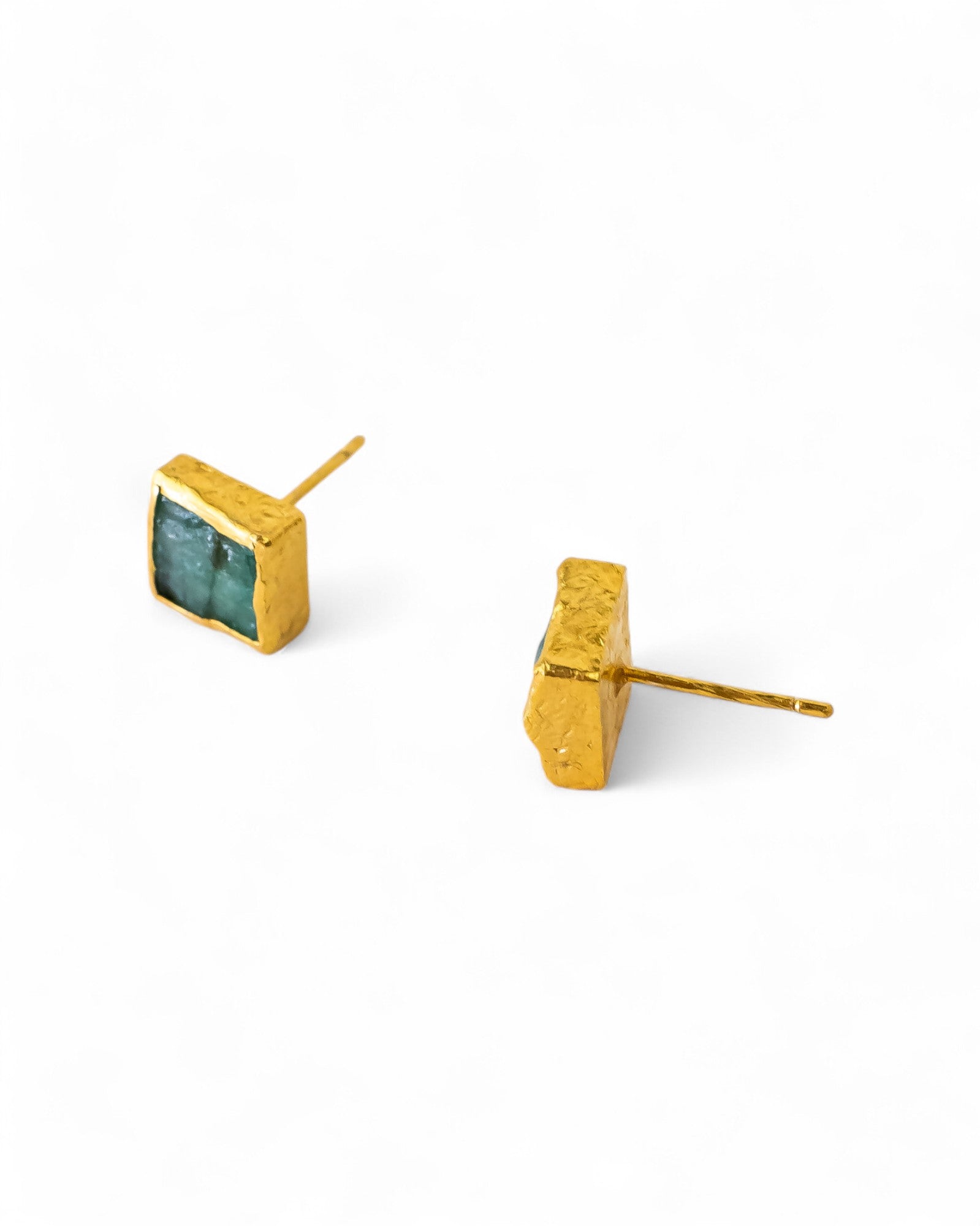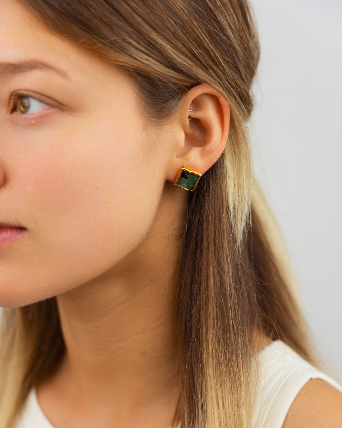 Rough Emerald Square Stud Earrings Yellow Gold Vermeil / 8mm Square