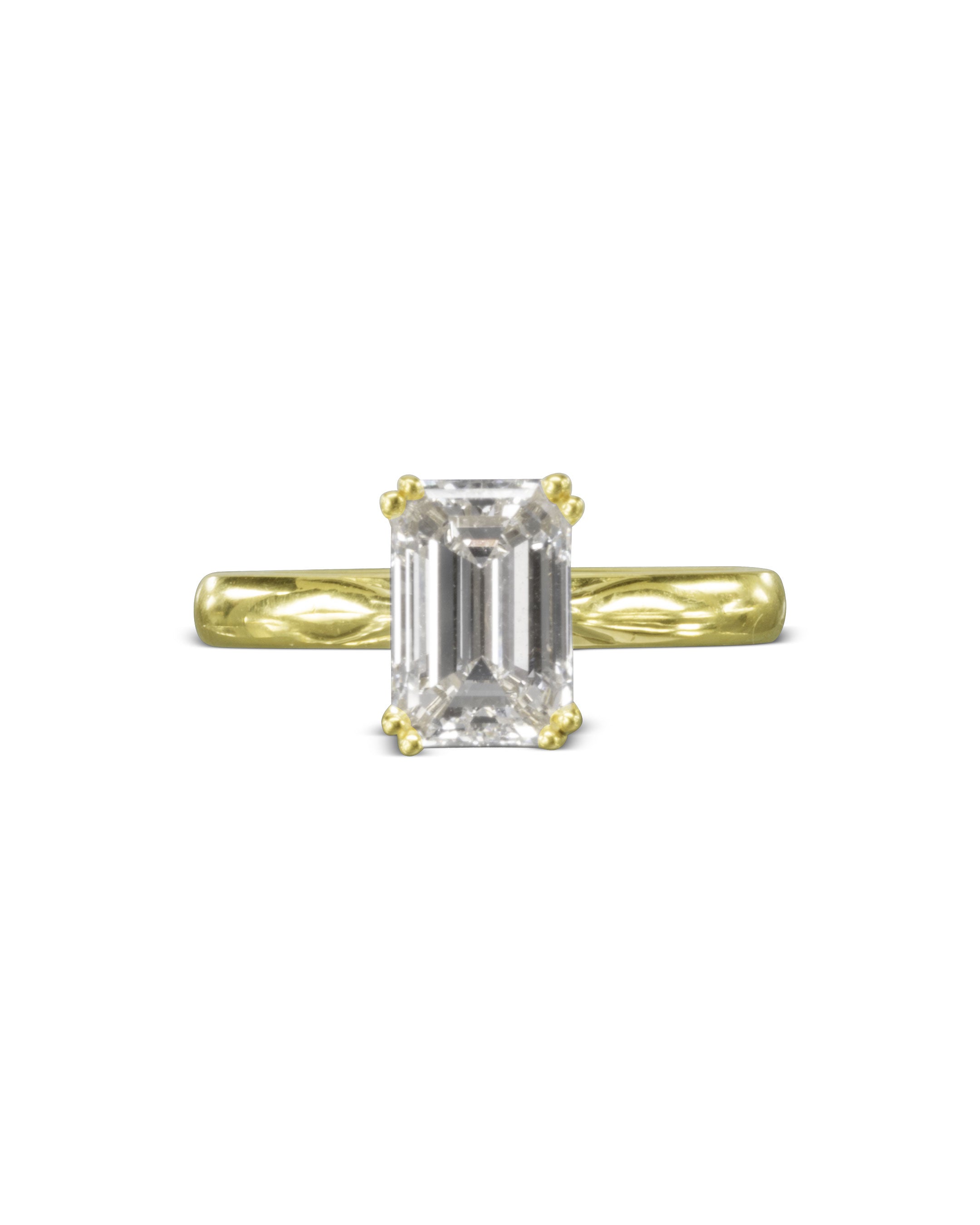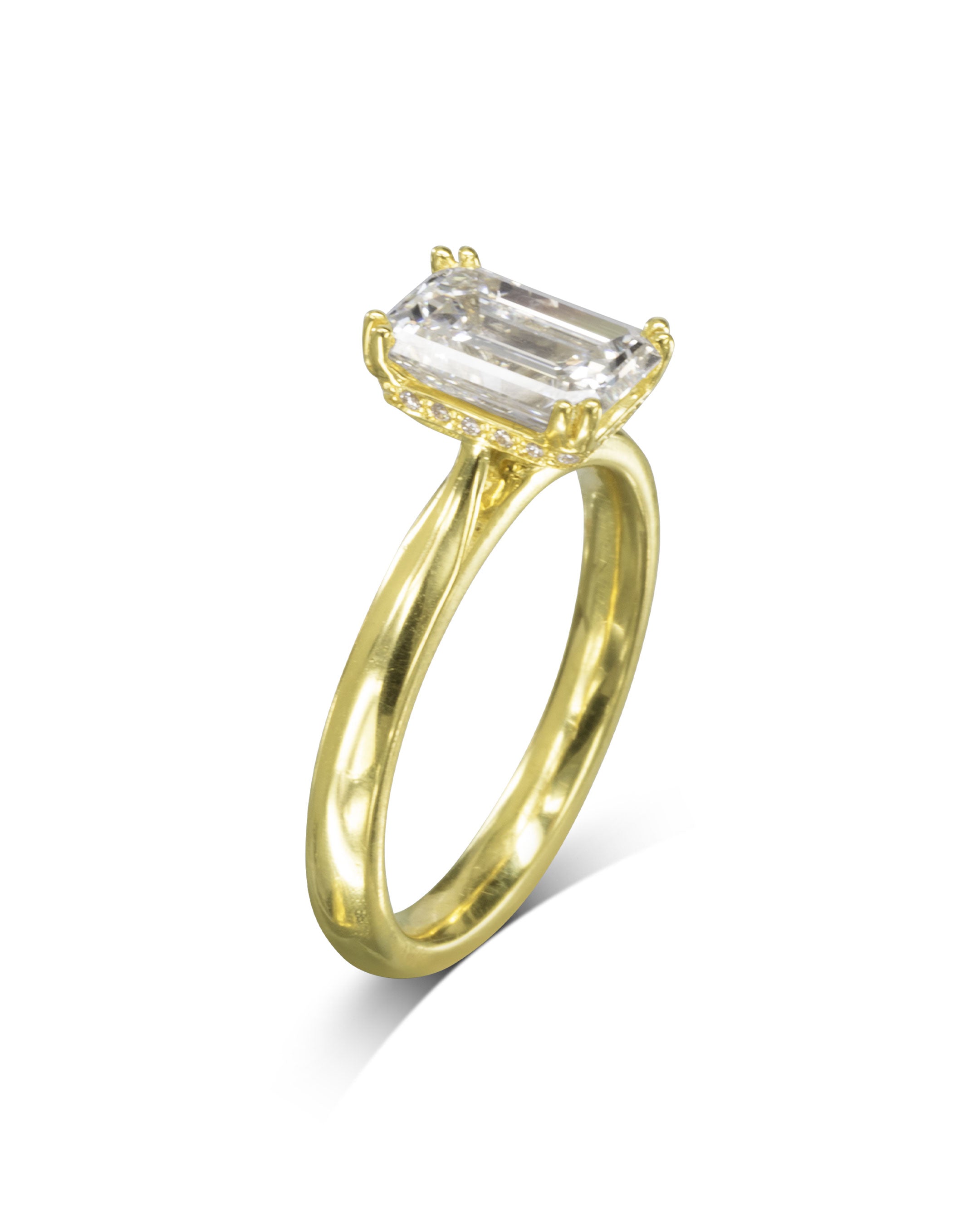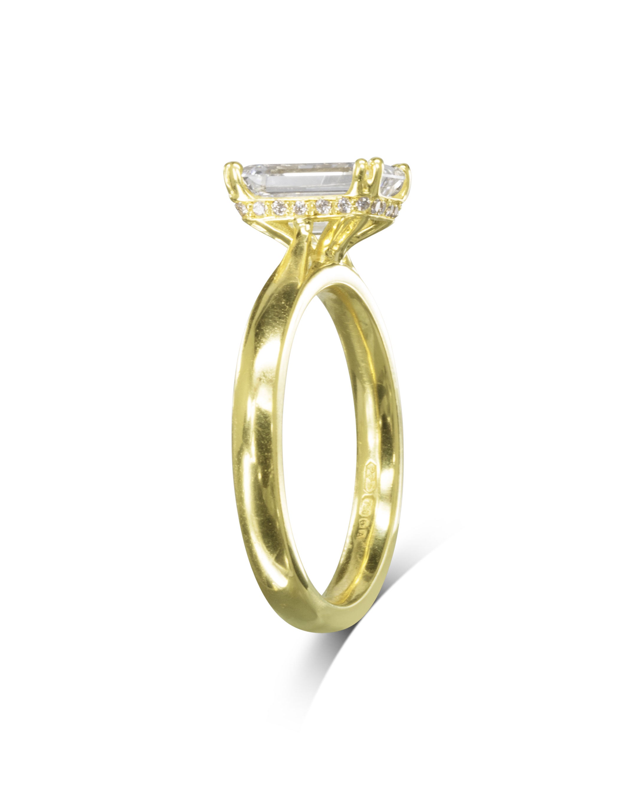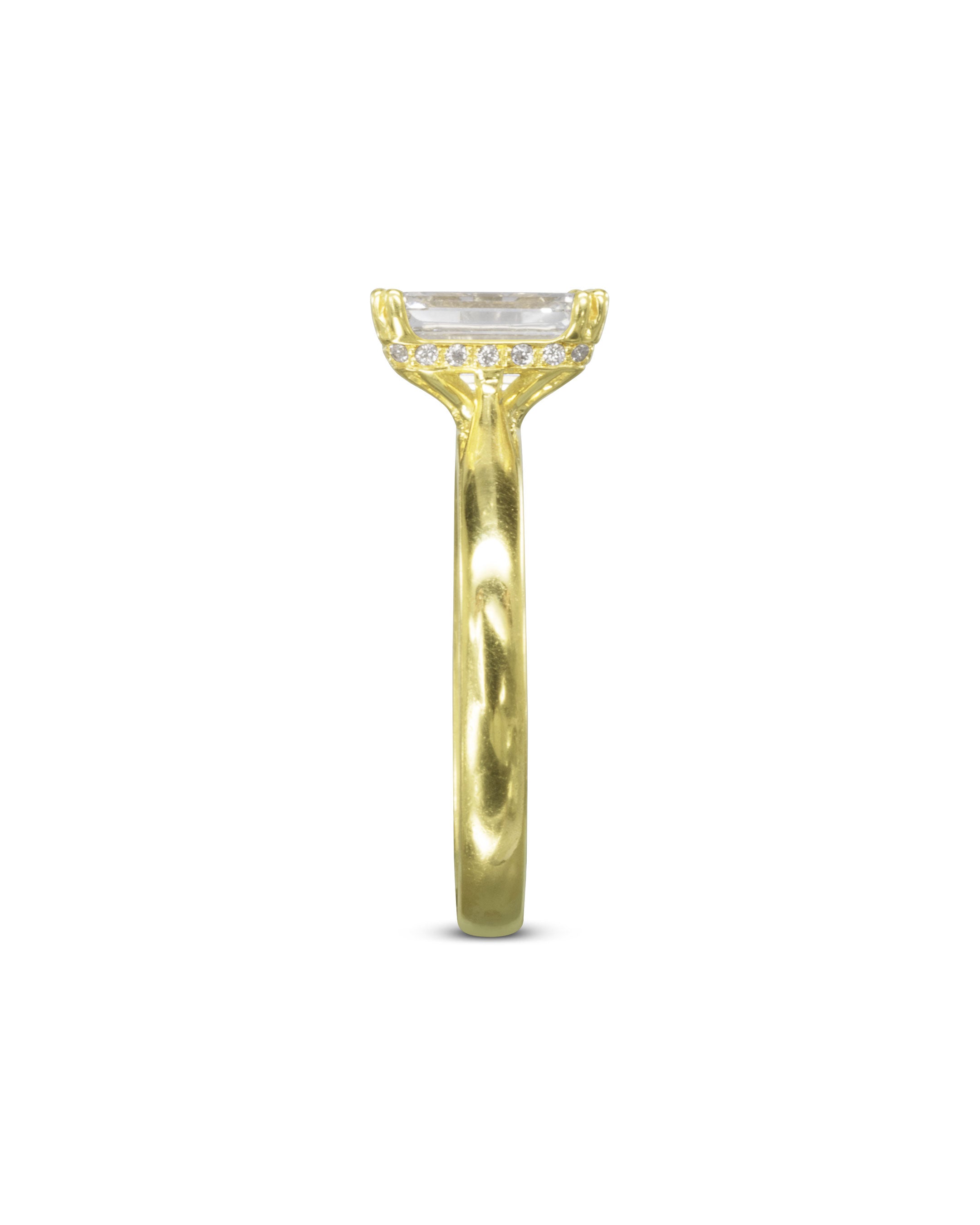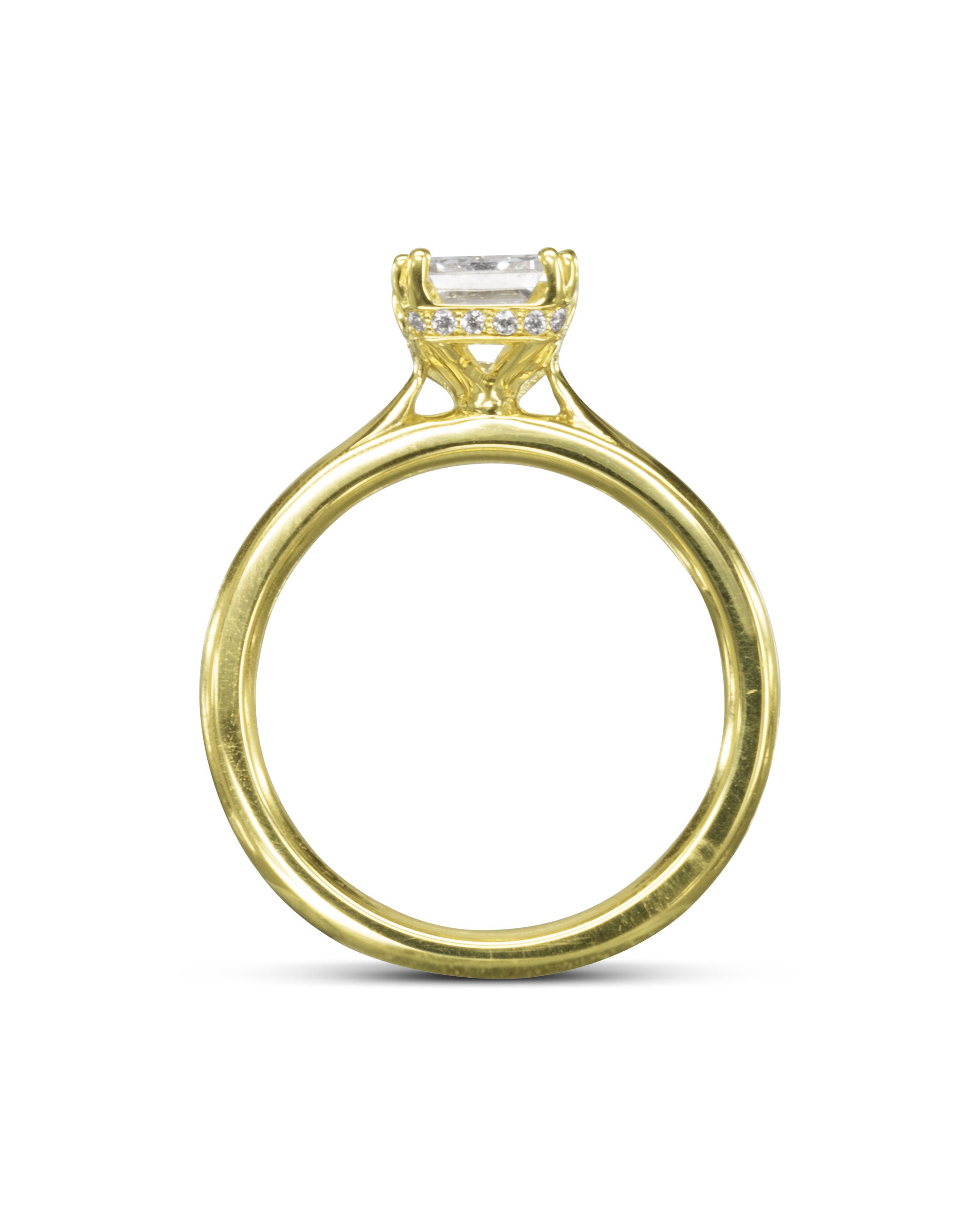 • Verstecktes Halo-Design : Ein versteckter Ring aus Diamanten, der zart in die Basis der Krappen eingelassen ist, verleiht dem Ring einen Hauch von Faszination und Glanz. Dieser versteckte Halo verstärkt die Gesamtbrillanz des Rings und sorgt gleichzeitig für ein elegantes und dezentes Erscheinungsbild.