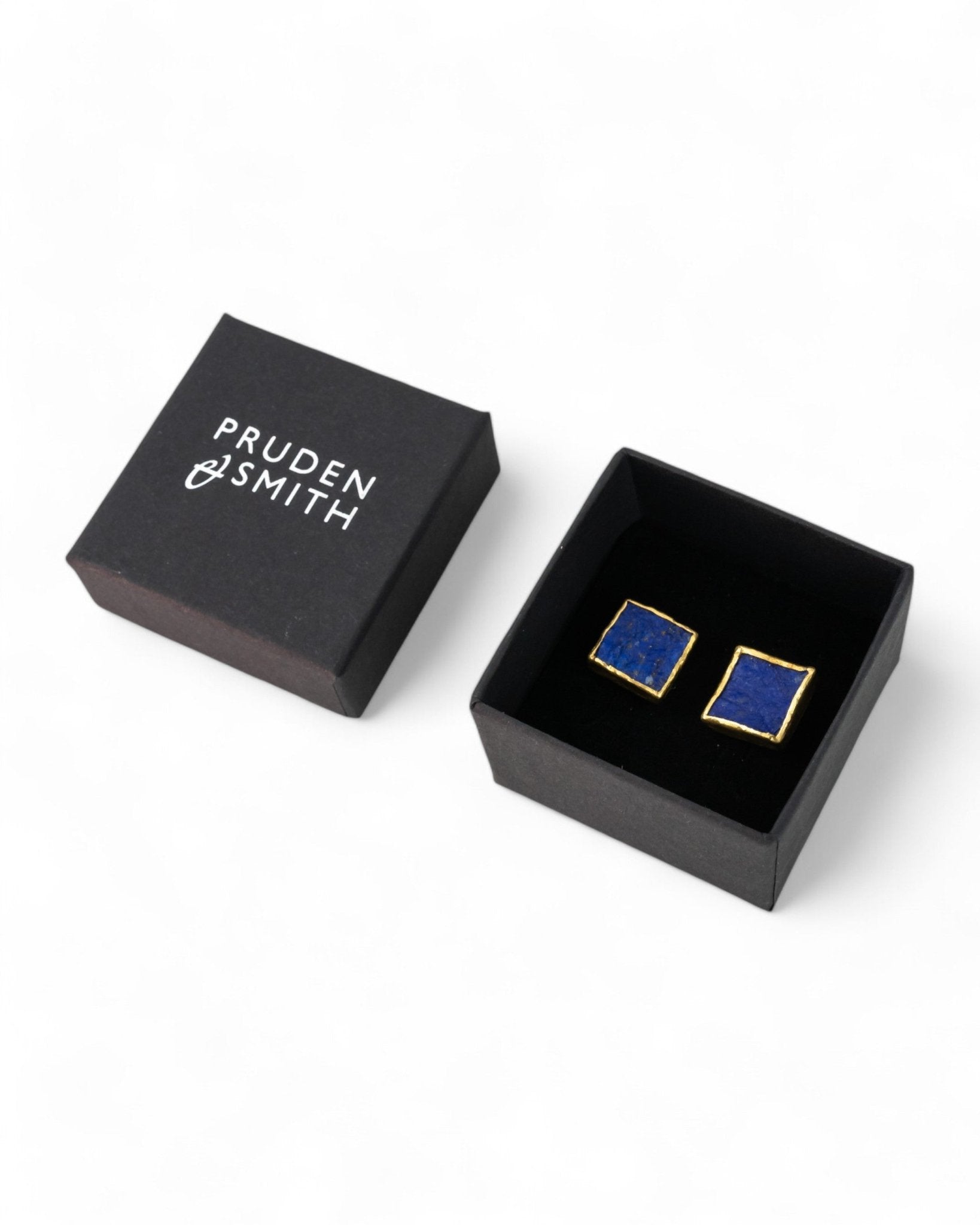 Die quadratischen Ohrstecker (12 mm) aus Lapislazuli sind kühn und elegant.
