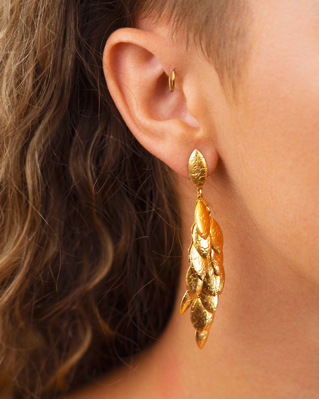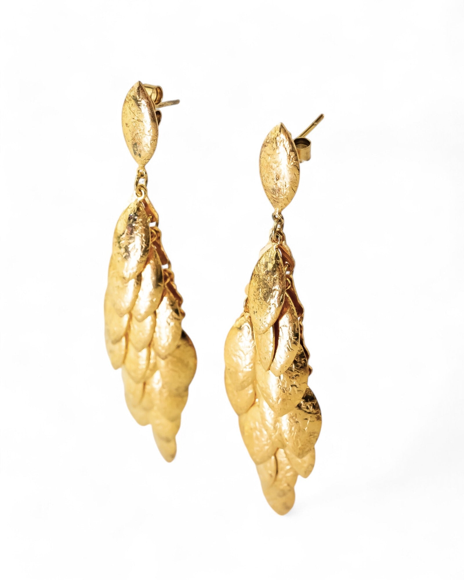 Lange, baumelnde Ohrringe mit mehrblättrigem Vermeil-Gold
