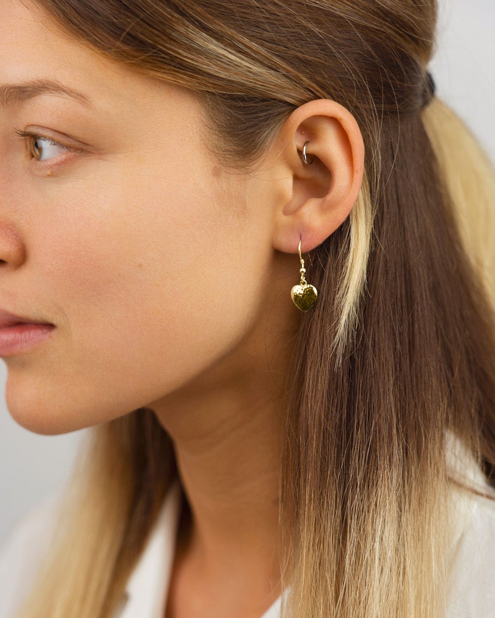 • Passender Schmuck: Diese gehämmerten Herzohrringe aus massivem 9-Karat-Gelbgold ergänzen unser Sortiment an gehämmerten Herzschmuckstücken, darunter Anhänger, Armbänder und Halsketten, und ermöglichen Ihnen die Vervollständigung Ihres abgestimmten Looks.