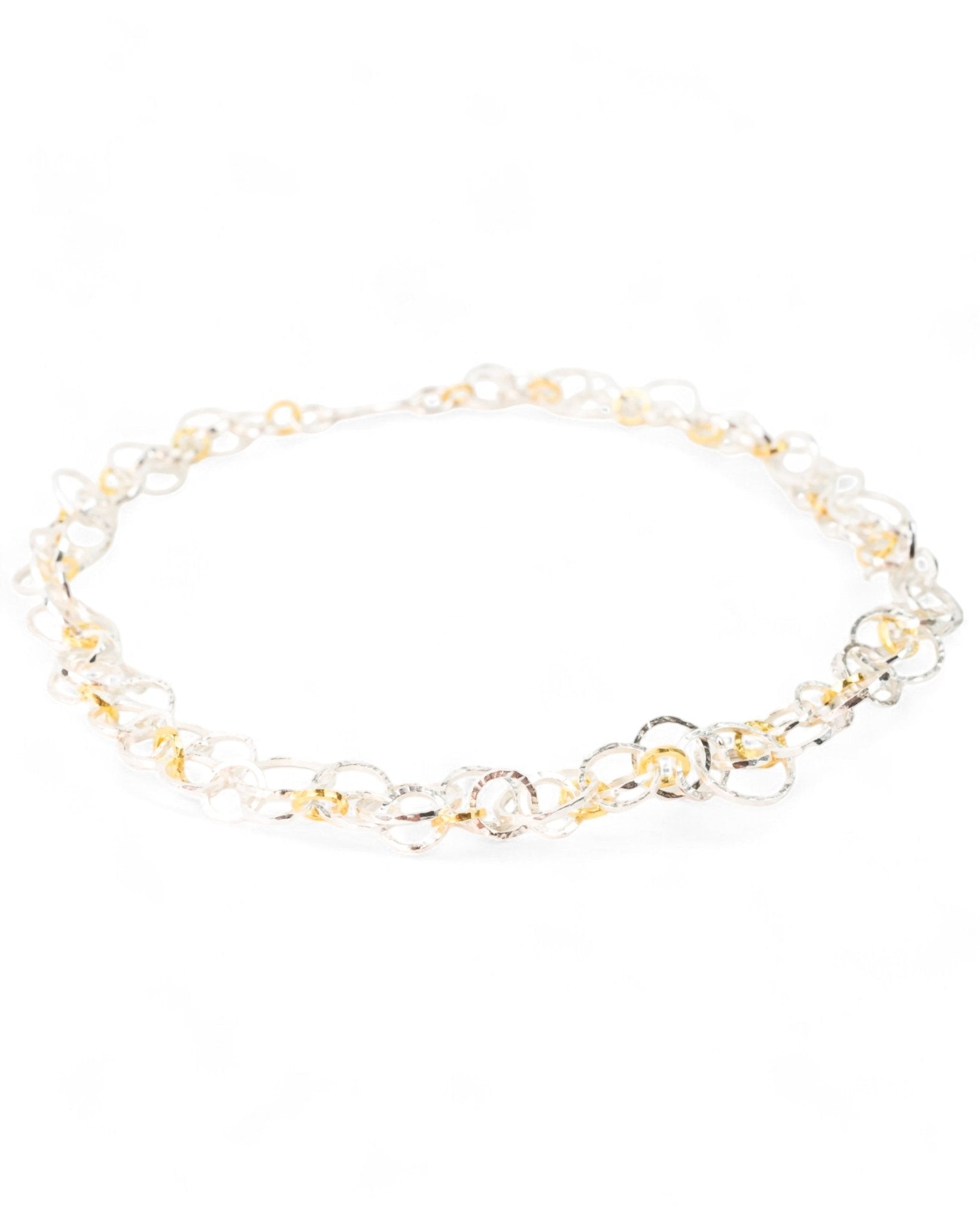 Hammered Two Tone Chain Necklace Silver & Yellow Gold Vermeil / 16 inch