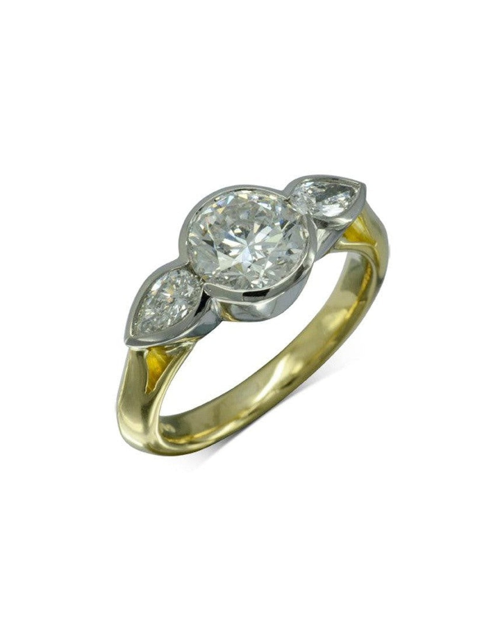 Trilogie-Ring mit rundem Brillant und birnenförmigem Diamanten