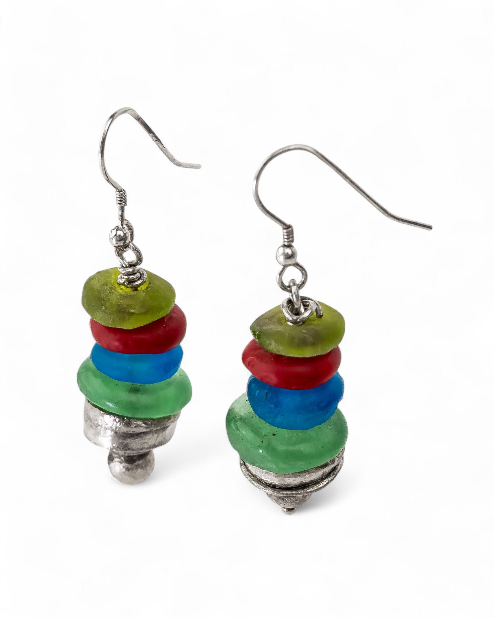 • Handgefertigt in Ghana: Diese Die tropfenförmigen Ohrringe aus afrikanischen recycelten Glasperlen bestehen aus leuchtend bunten Glasperlen, die in Ghana handgefertigt werden, 12–15 mm groß sind und durch unregelmäßige Silberscheiben ergänzt werden. Die Ohrringe haben einen Tropfen von ungefähr 40 mm, was ein unverwechselbares und auffälliges Design ergibt.