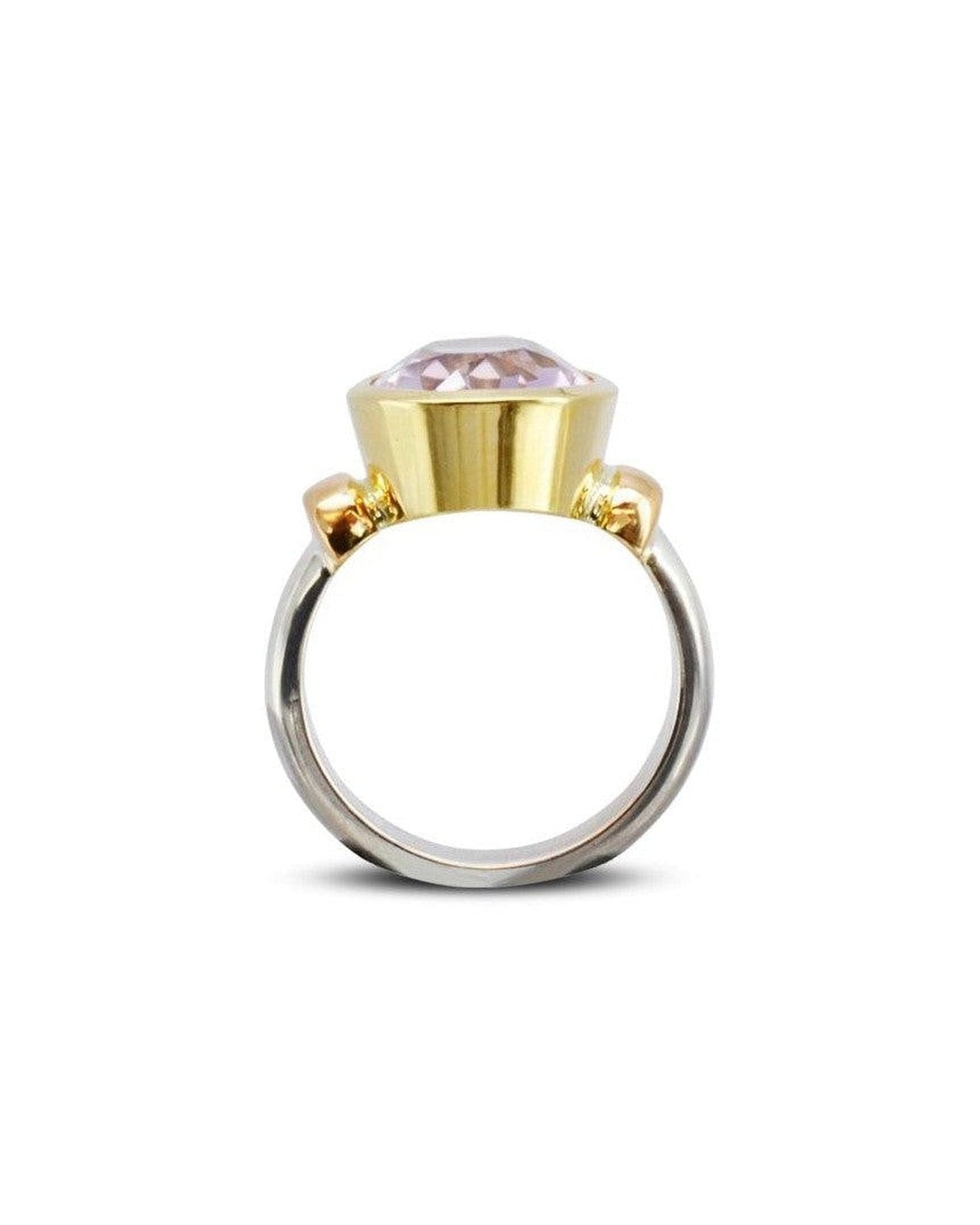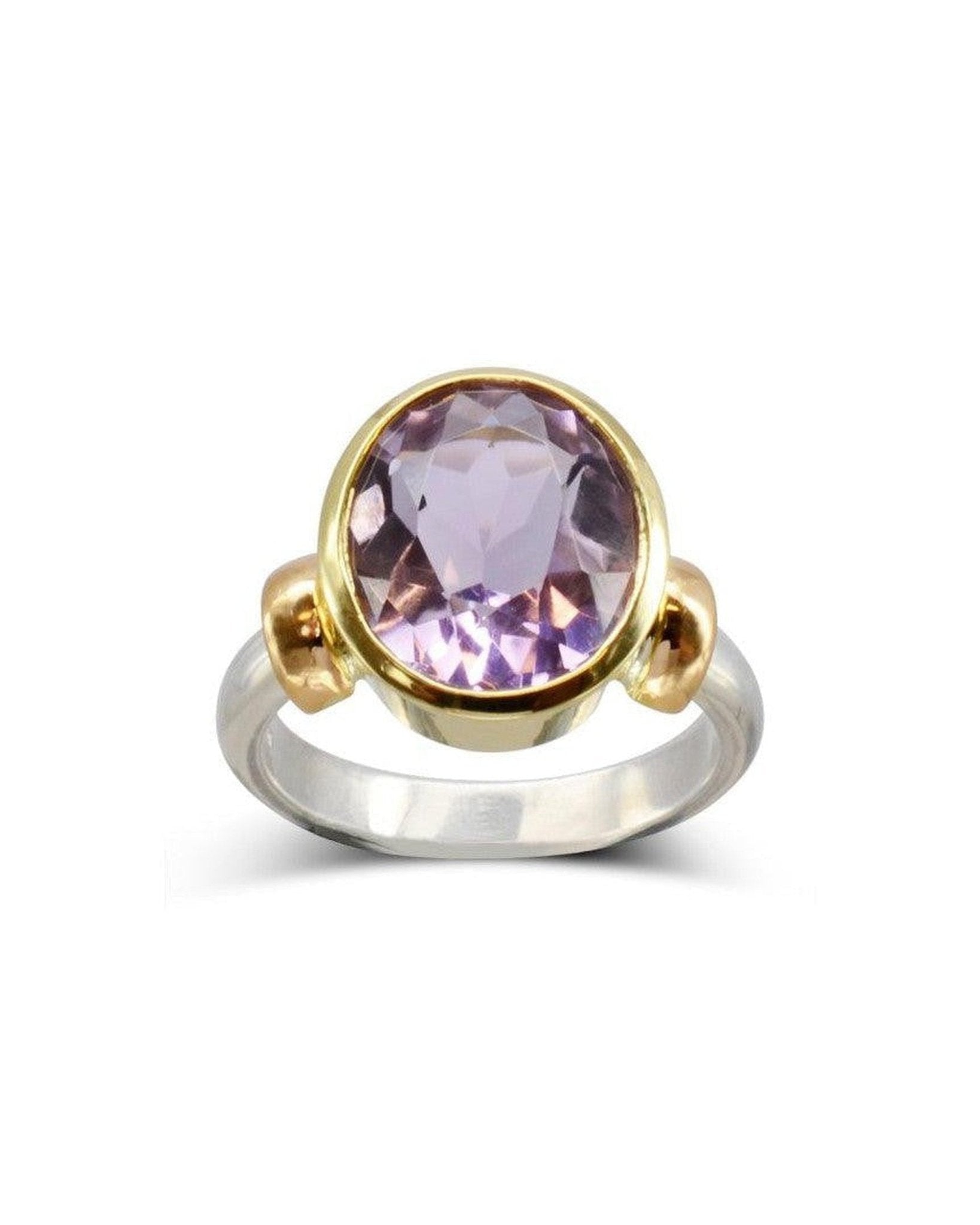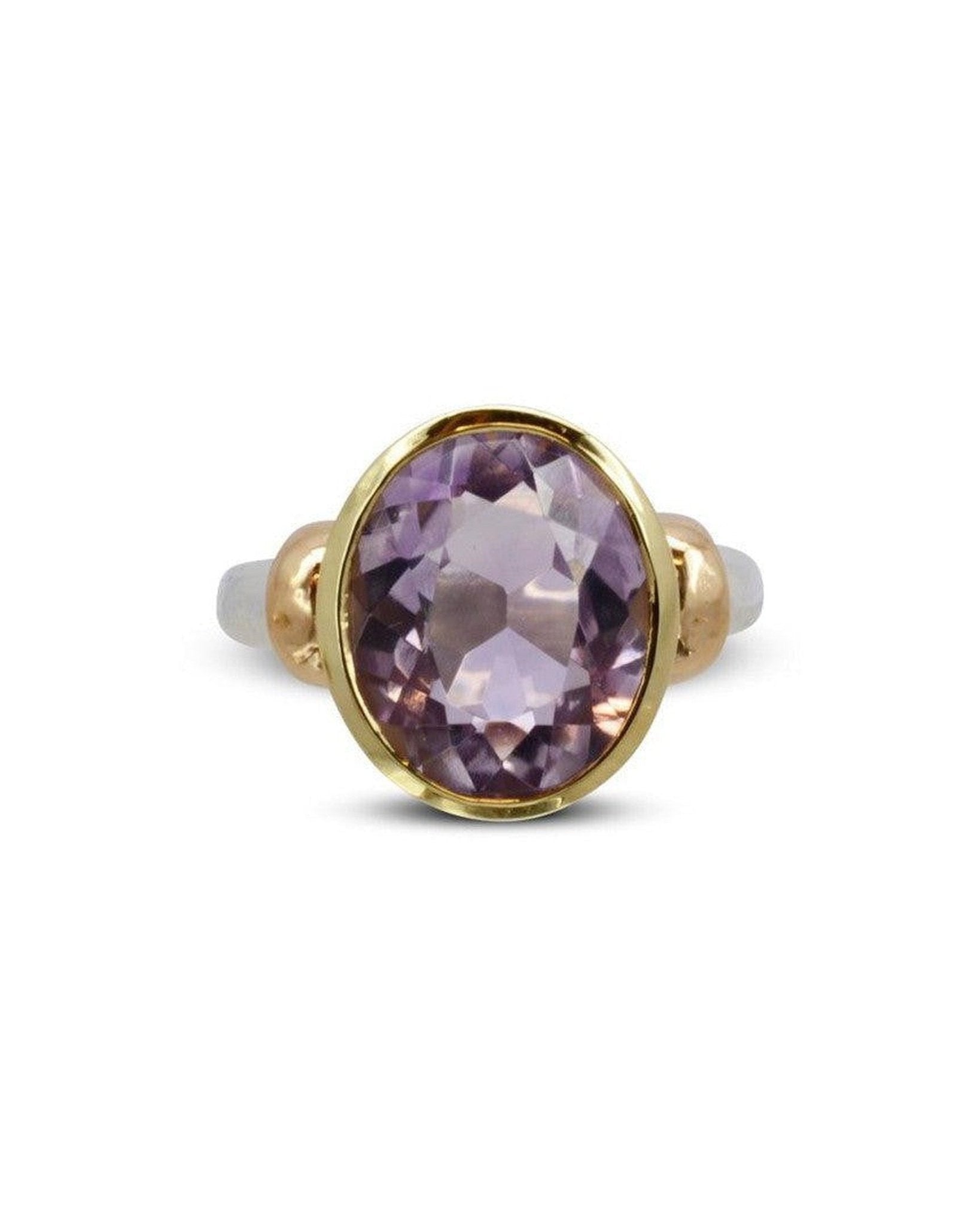 Der Amethyst-Zweifarb-Gold-Ring verfügt über ein zeitgenössisches Design und ist umweltfreundlich gefertigt.