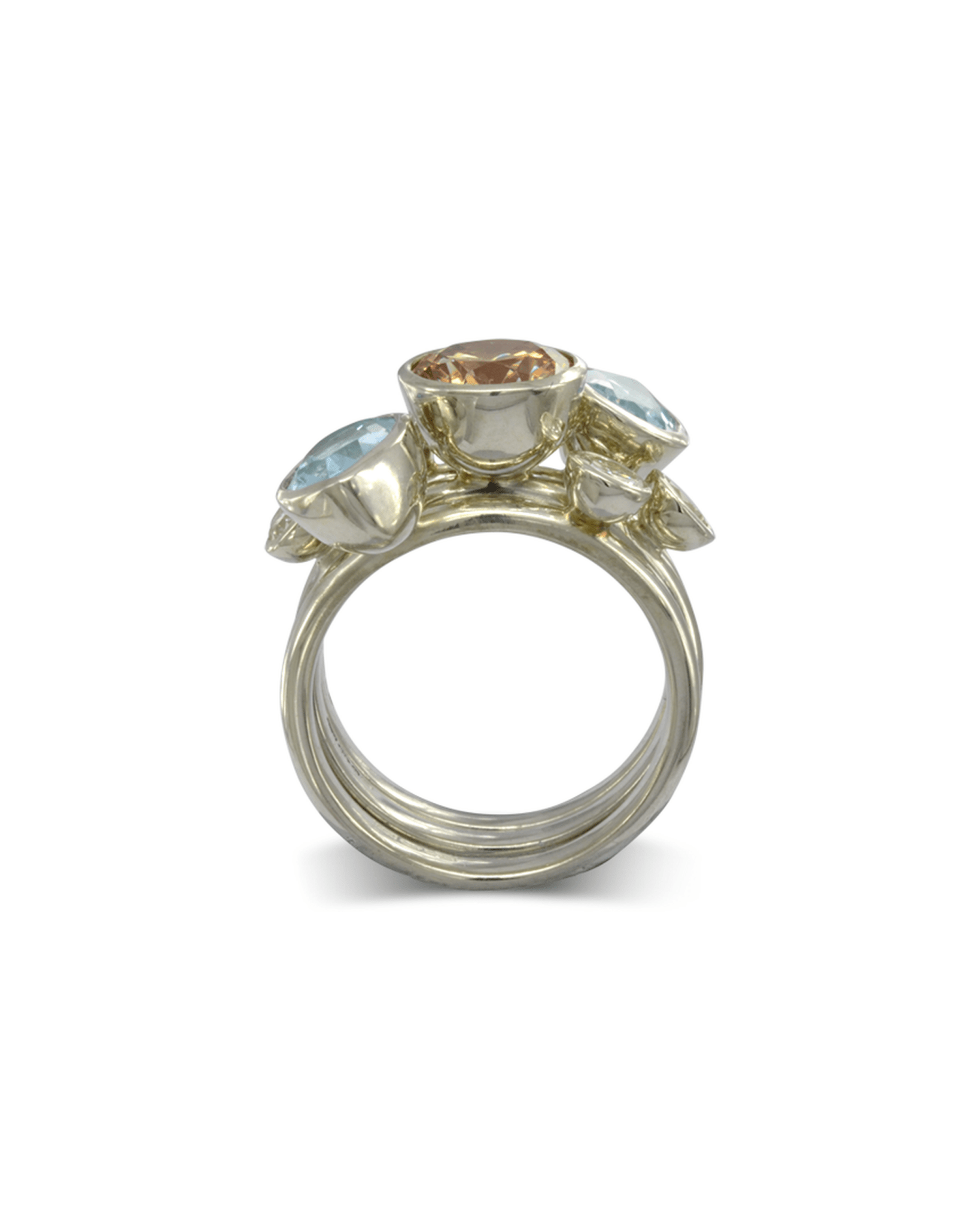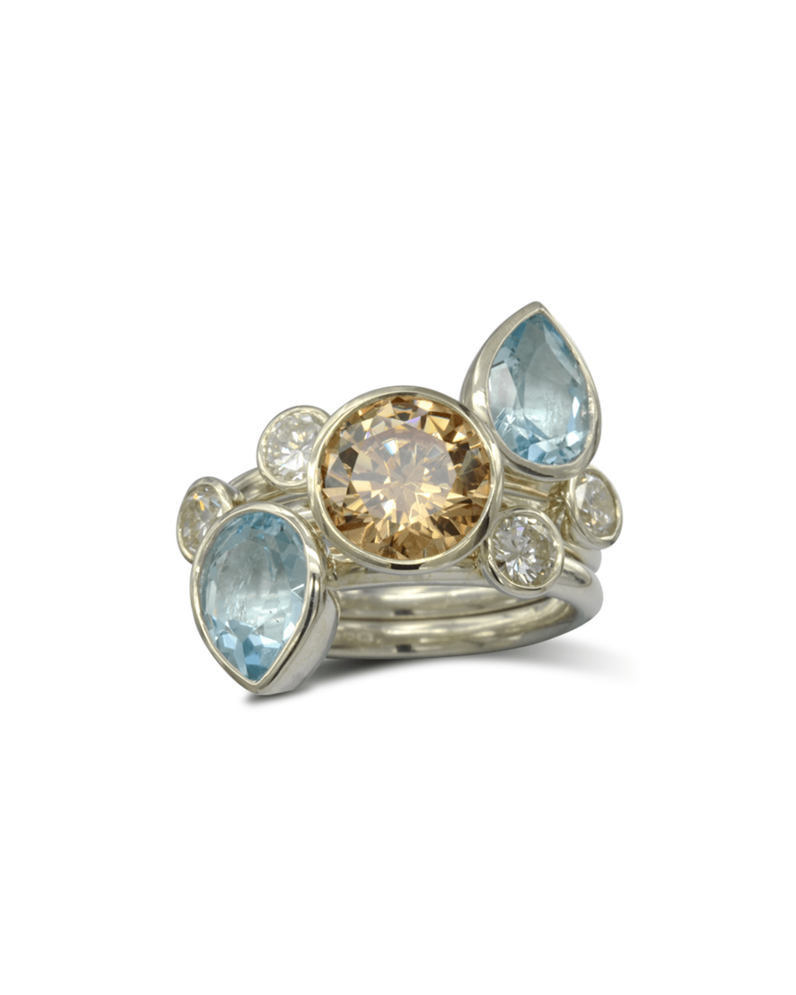 Stapelring-Set aus Aquamarin, Diamant und Citrin