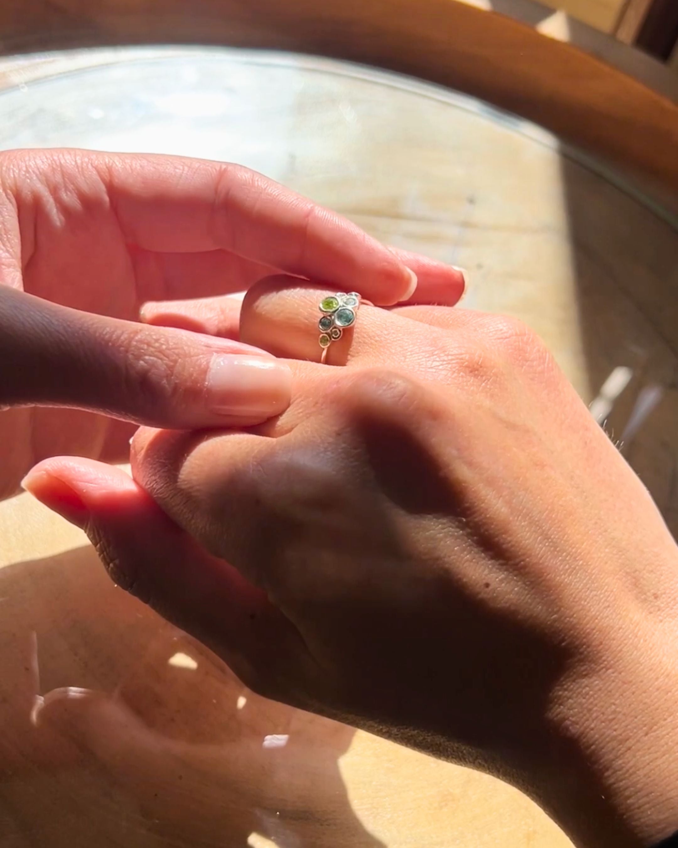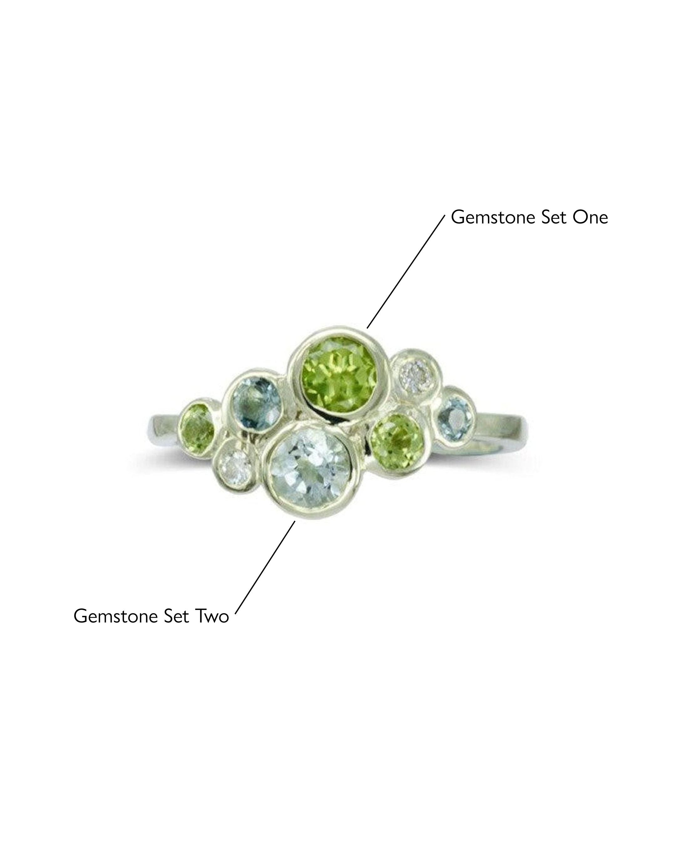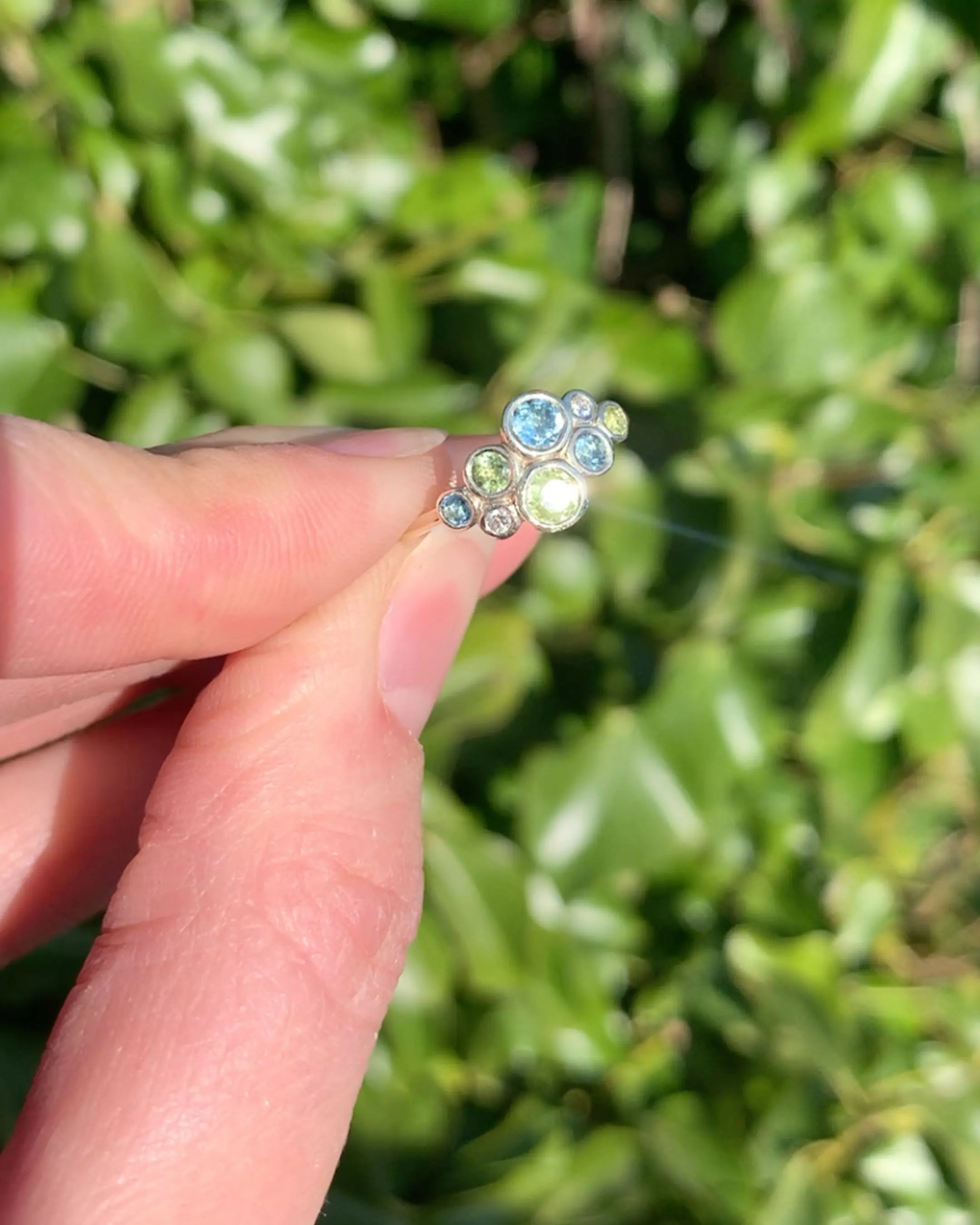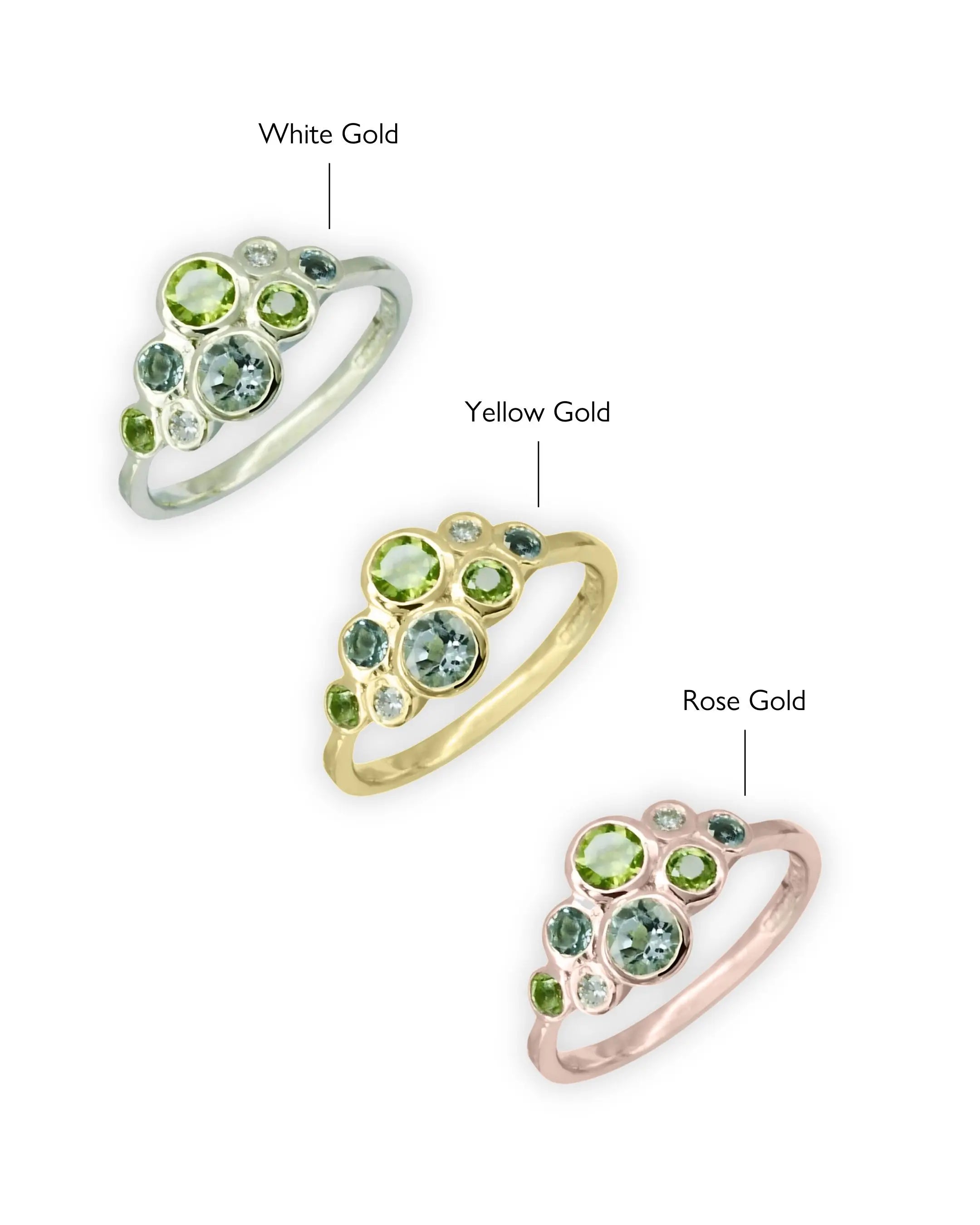 Bubbles Aquamarin-, Peridot- und Diamant-Clusterring