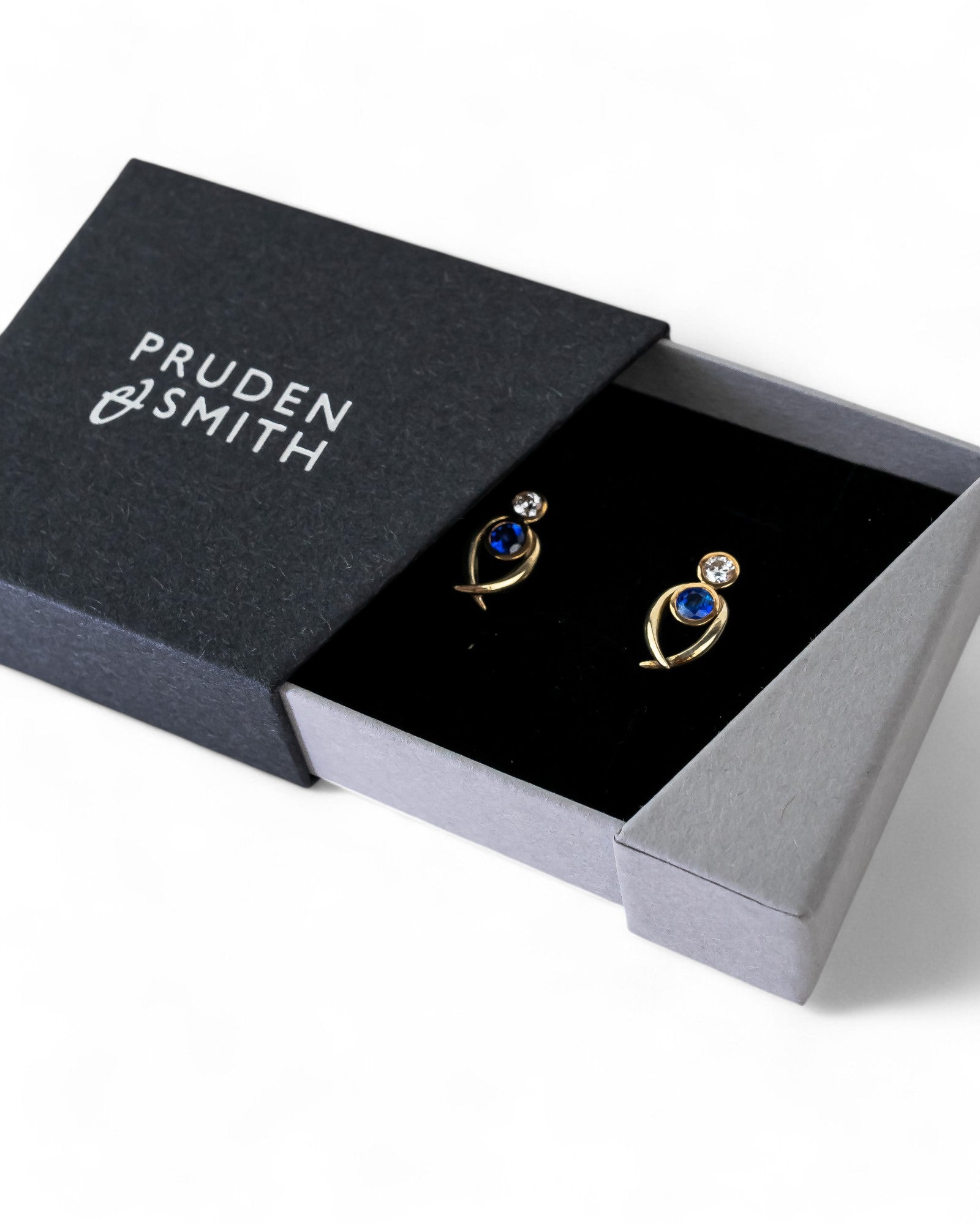 Die Spiky-Ohrstecker aus Gelbgold mit Saphir und Diamant sind eine Mischung aus Eleganz und Stil und ein perfektes Geschenk für Geburtstage im September.