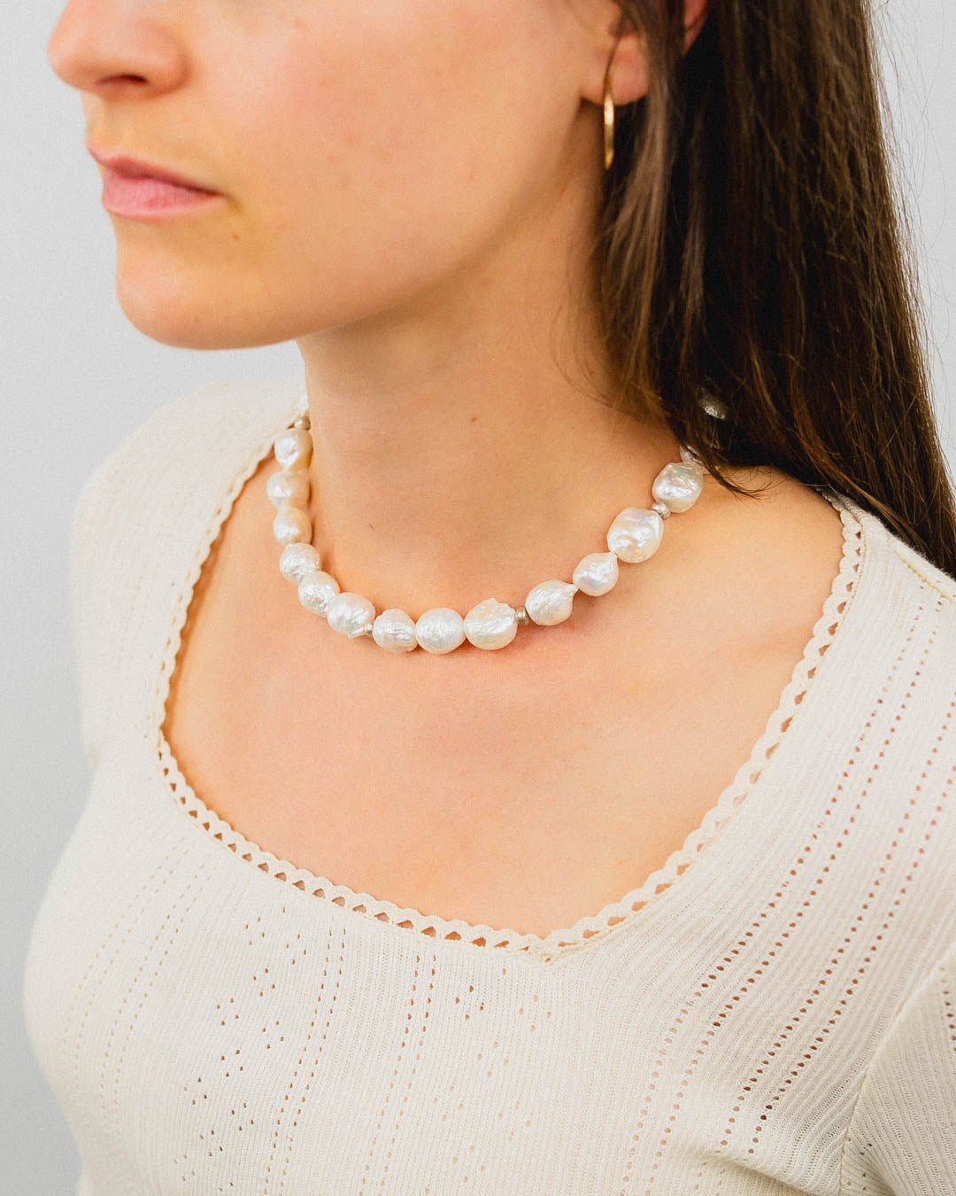 • Barocke Schönheit : Die Halskette besteht aus einer Sammlung weißer Barockperlen, jede mit einer einzigartigen abgerundeten Form und einer folienartigen Oberfläche.