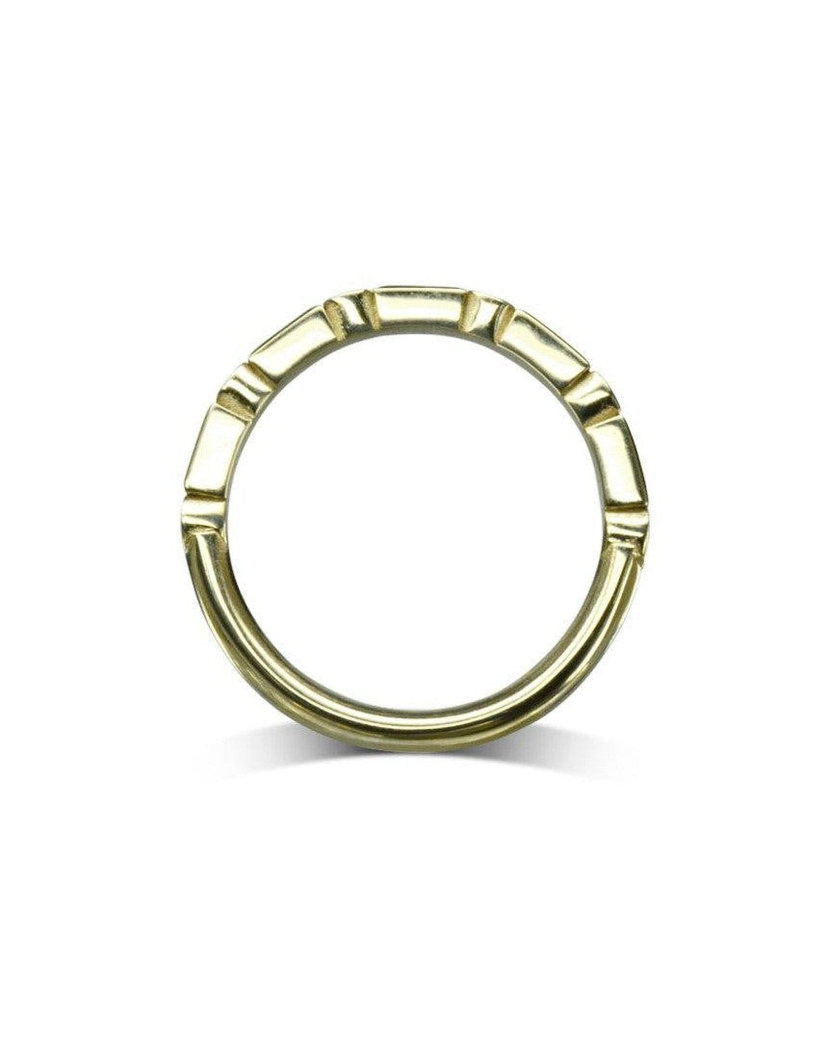 • Abwechselnd gelber Saphir und Diamant: Dieser Ring ist mit einem Muster aus 1,5 mm großen runden Diamanten und 3,5 mm x 1,5 mm großen gelben Saphiren im Baguette-Stil besetzt. Die abwechselnden Edelsteine ​​erzeugen einen schönen Kontrast aus Formen und Farben.
