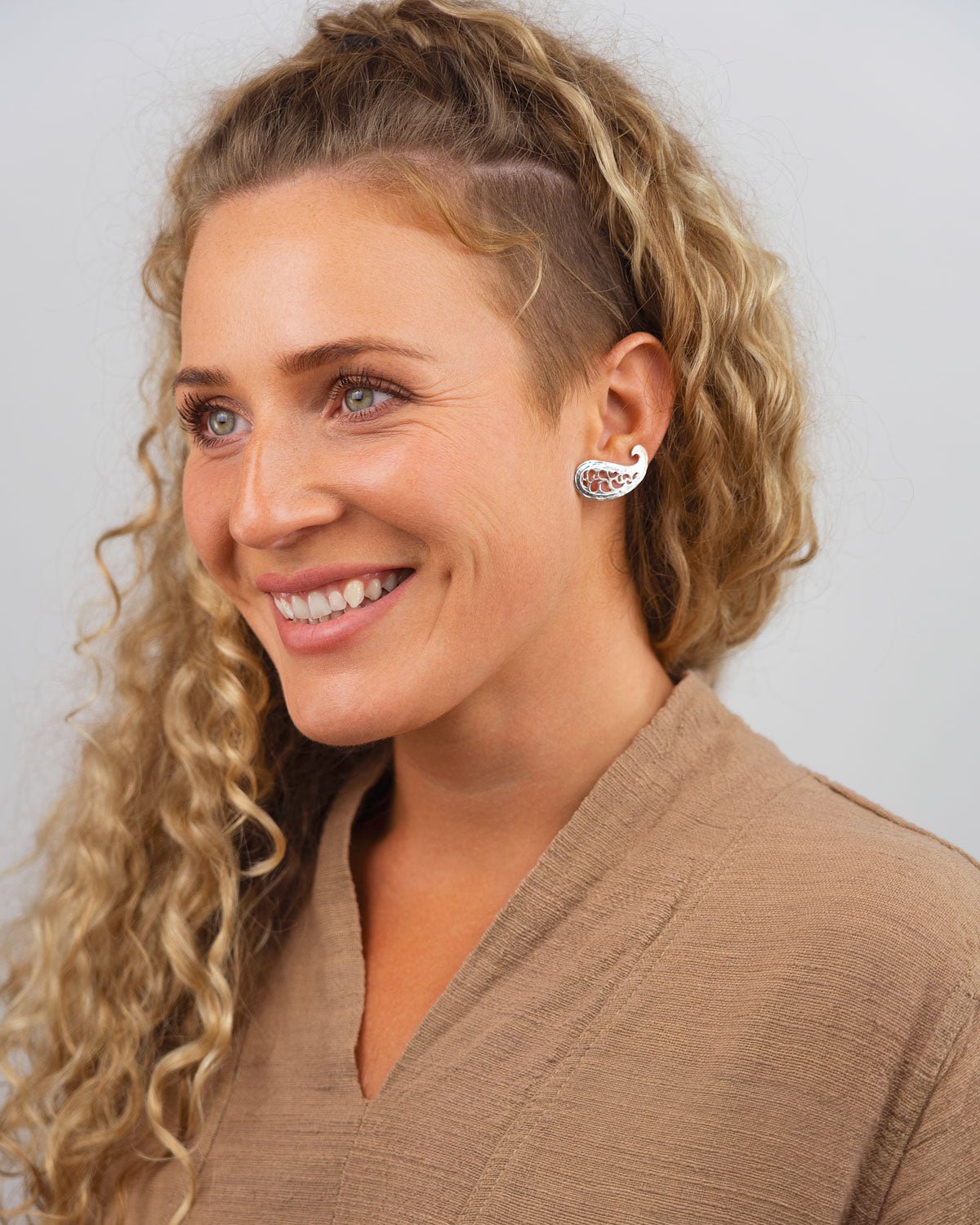 • Graceful Earlobe Curls: These Pierced Paisley Stud Earrings are designed to look great when curled along the earlobe.