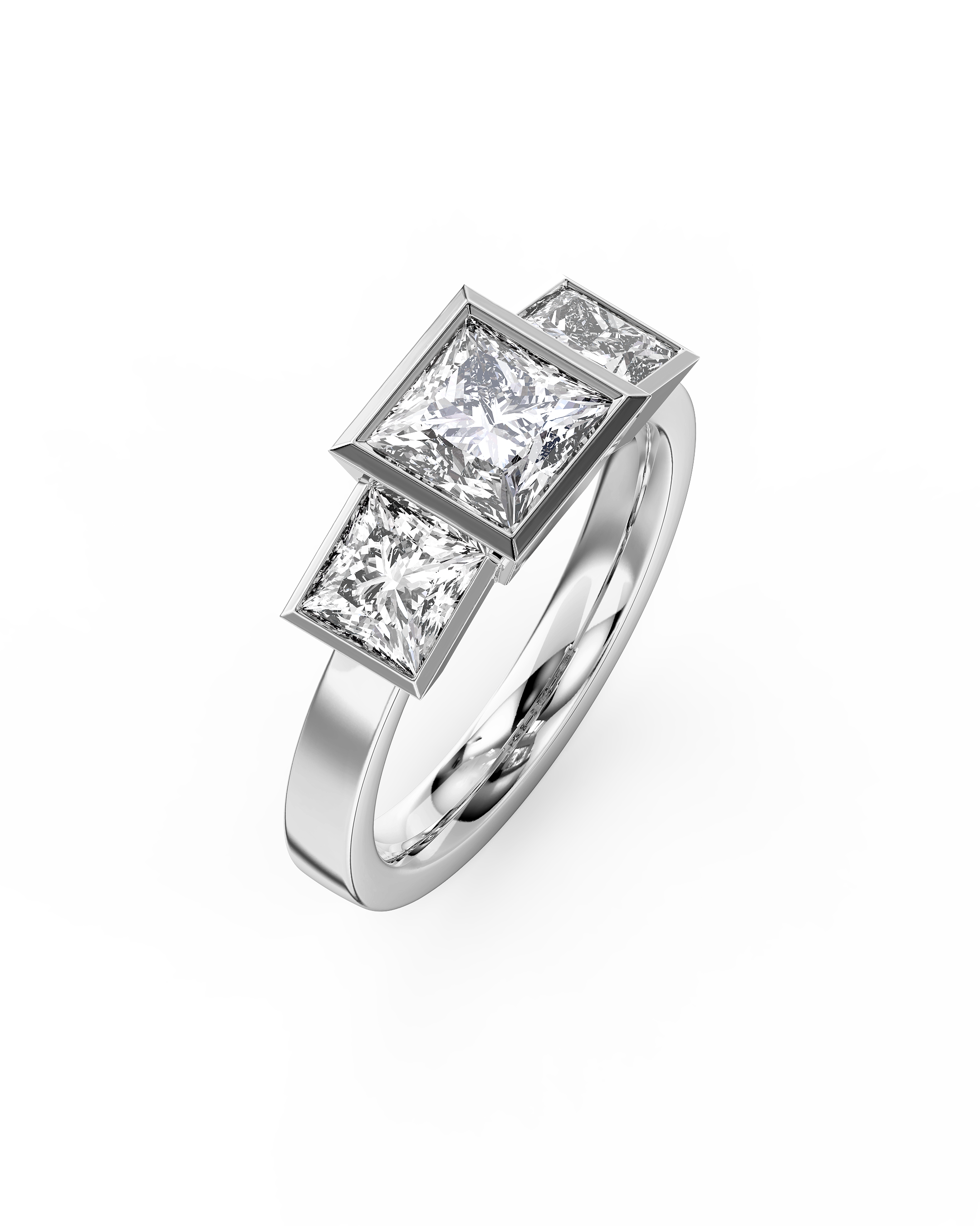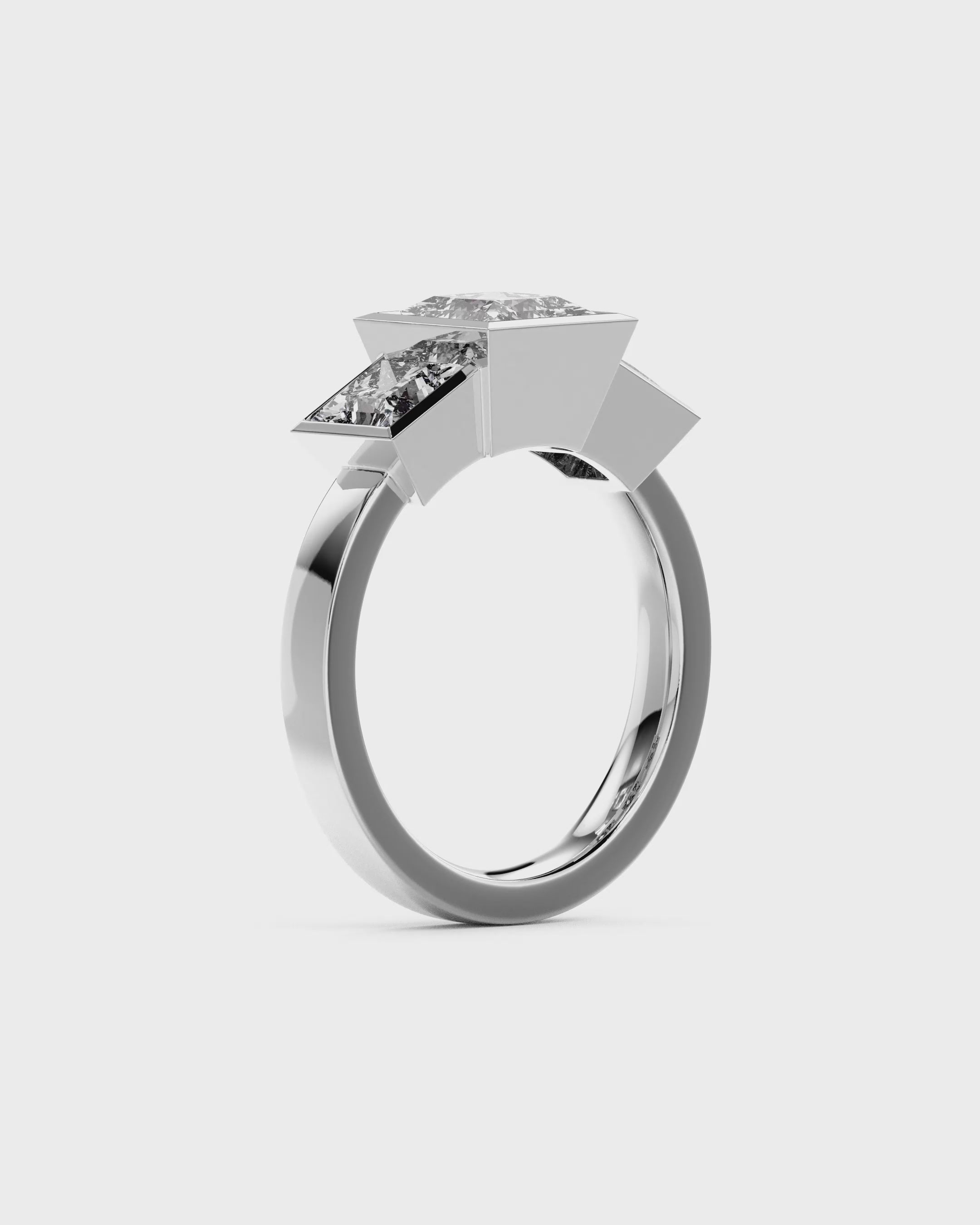 Defined by crisp lines and precise symmetry, the Princess Art Deco Trilogy Engagement Ring features a square-cut centre stone framed by two complementary side stones. You can choose between a 0.5ct or 1.5ct lab-grown centre diamond, each paired with proportionally balanced side stones — 0.33ct each for the 0.5ct version, and 0.75ct each for the 1.5ct version. This gives an overall total diamond weight of approximately 1.16ct or 3ct respectively. Inspired by the strong geometry of the Art Deco era, this handmade-to-order design feels bold yet elegant, structured yet full of sentiment.