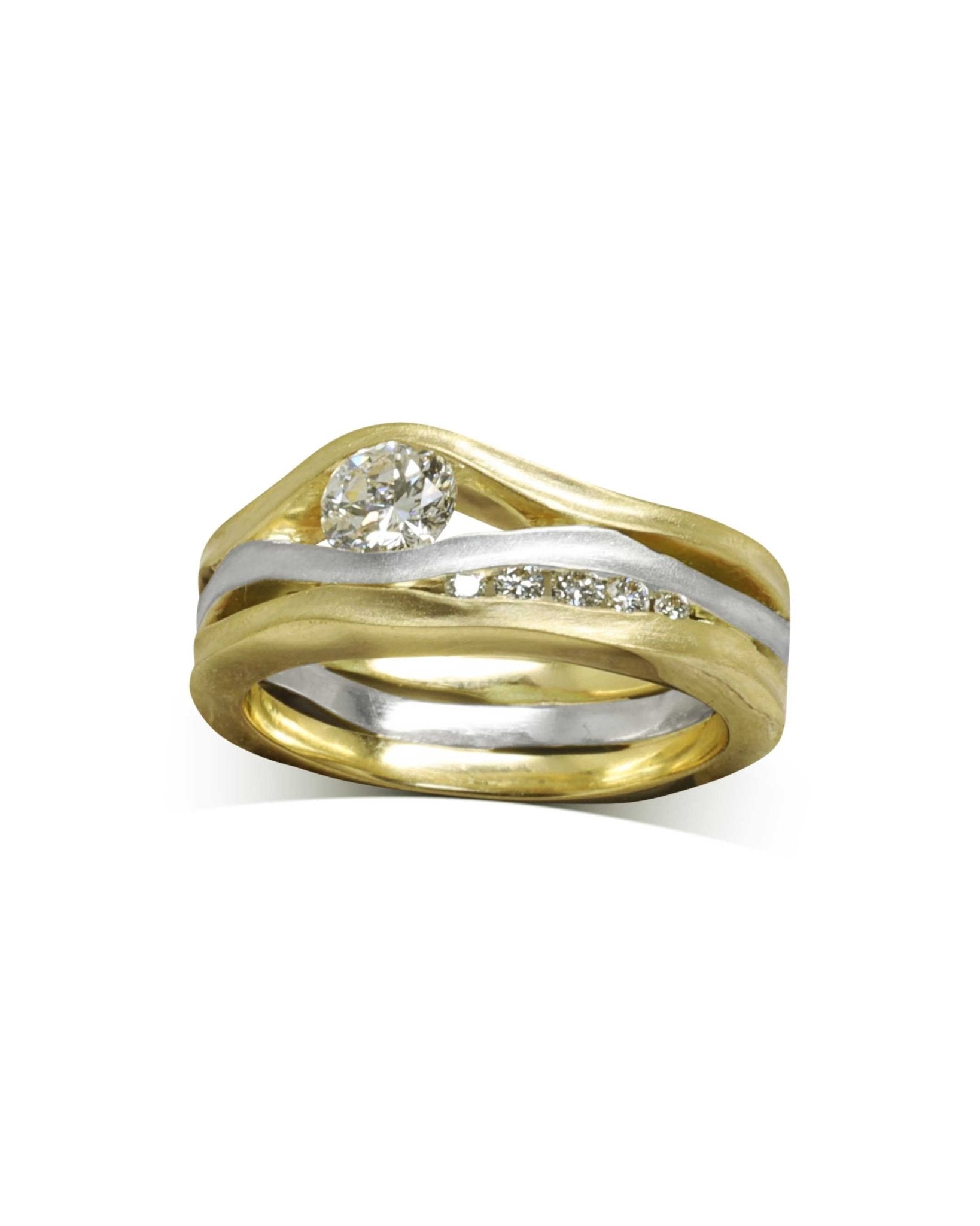 • Contemporary Design: The ring pictured has two yellow gold bands and a central white gold or platinum strand. It measures 6mm in width at the sides and 8mm at the front.