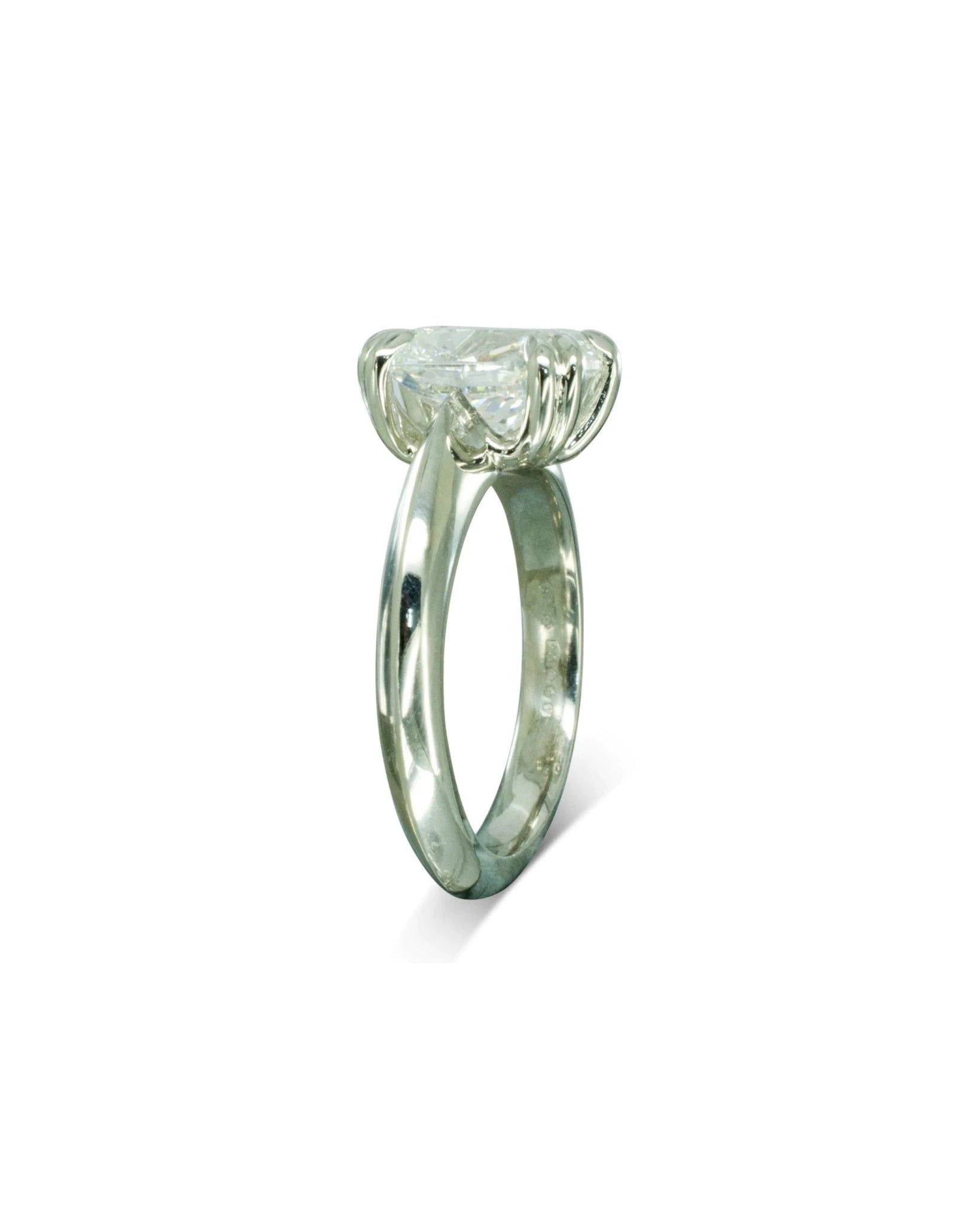 The Claw Set Platinum Cushion Shaped Diamond Engagement Ring is a stunning piece that combines classic elegance with a hidden touch of brilliance.
