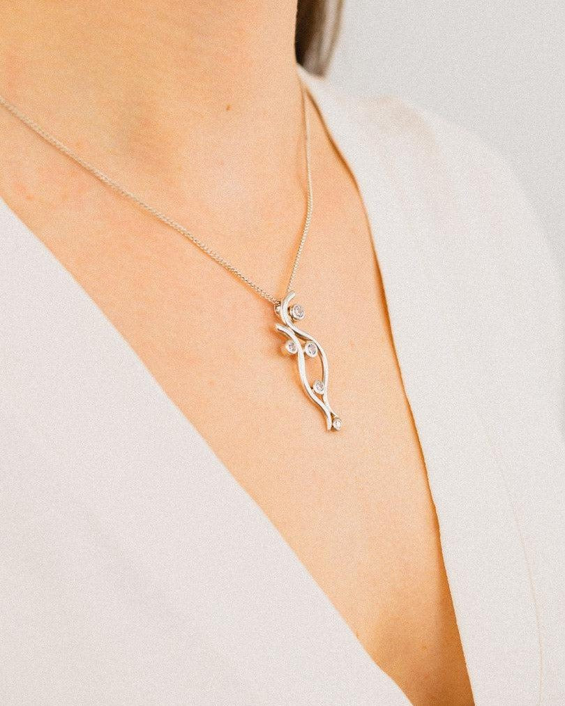 • Model Variation: The model pictured showcases the white gold variation, demonstrating the pendant's versatility and range of possibilities.
