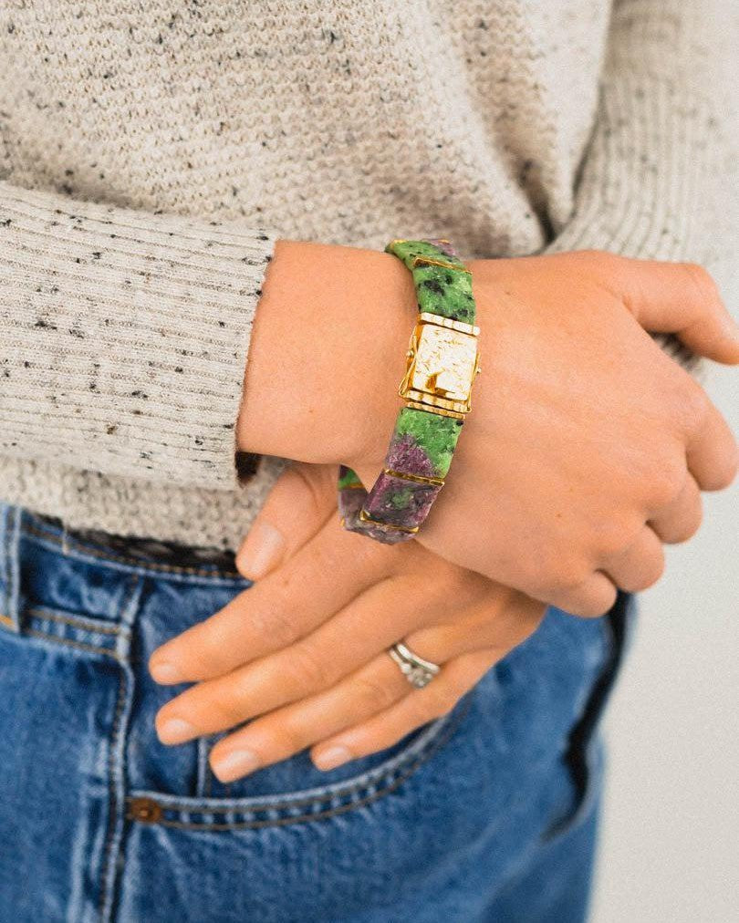 Bracelet en rubis et zoïsite brut
