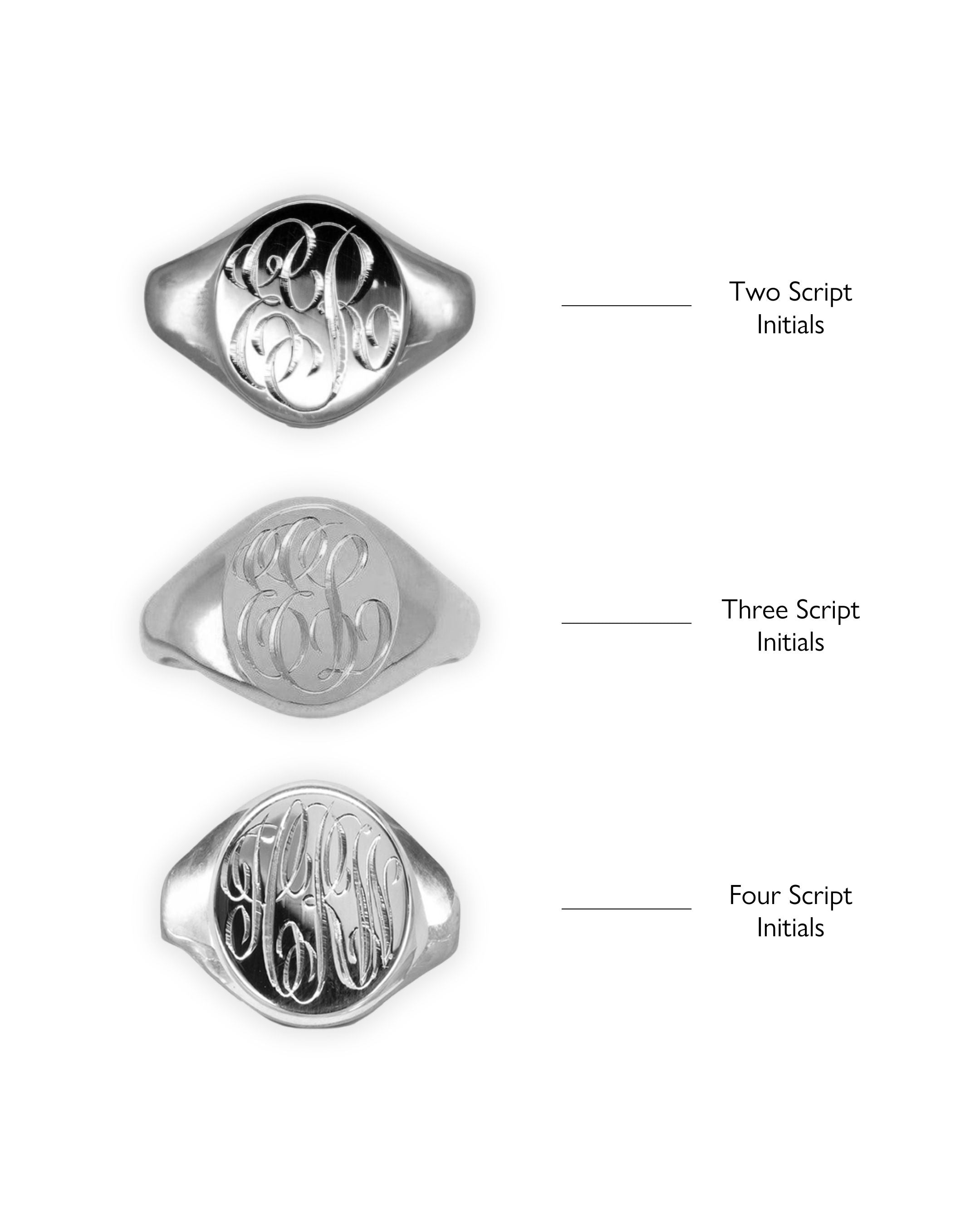• Design classique : la chevalière avec initiales gravées à la main présente un design traditionnel sophistiqué, avec un choix de deux à quatre initiales, adapté aux occasions formelles et décontractées.