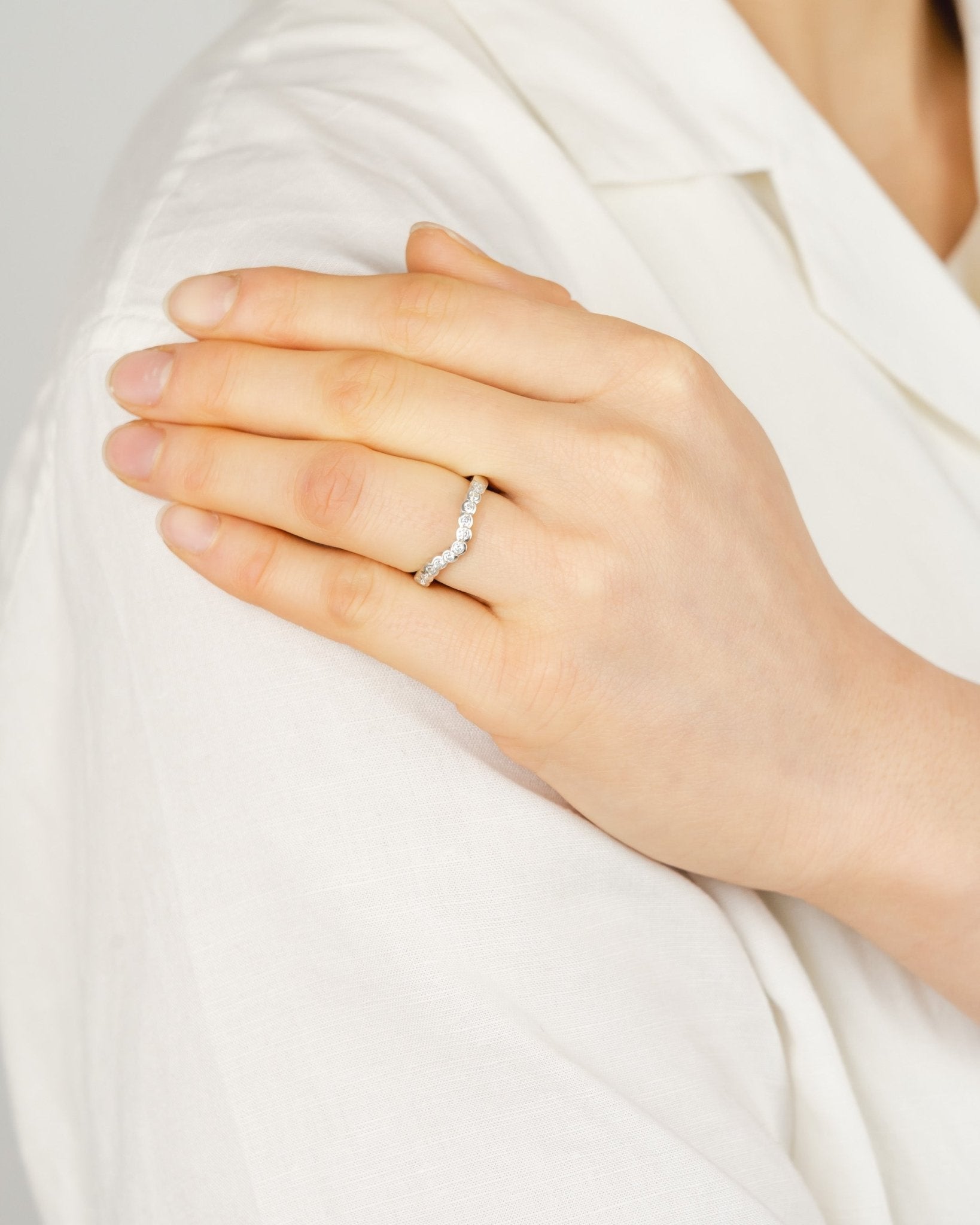 L'alliance délicate en forme de diamant est un complément parfait à toute bague de fiançailles, s'enroulant parfaitement autour de différentes formes.