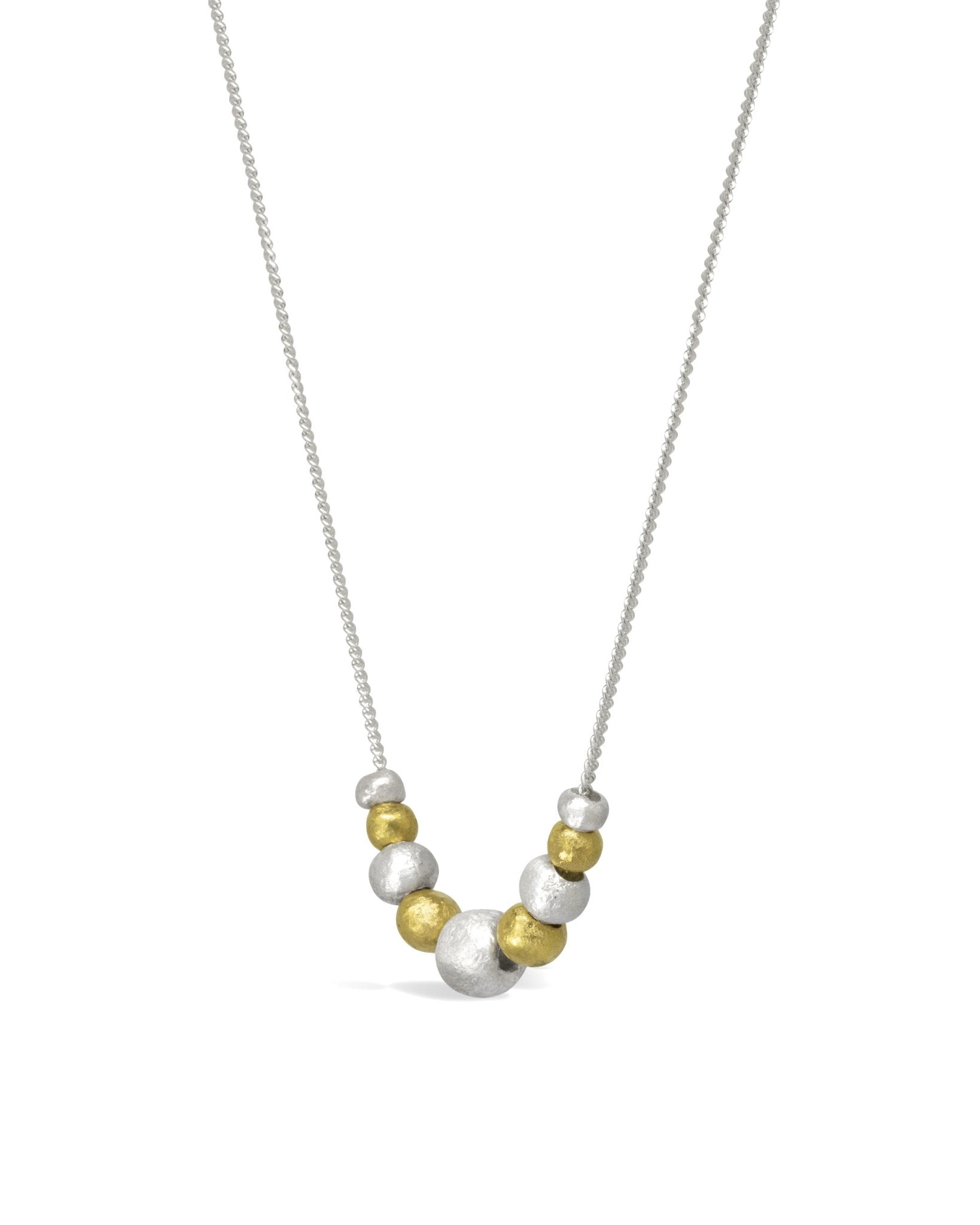 • Brillance des métaux mixtes : ce collier présente une combinaison de perles en pépites d'argent faites à la main et de perles en or jaune massif 9 carats, créant une élégante interaction de textures et de tons.