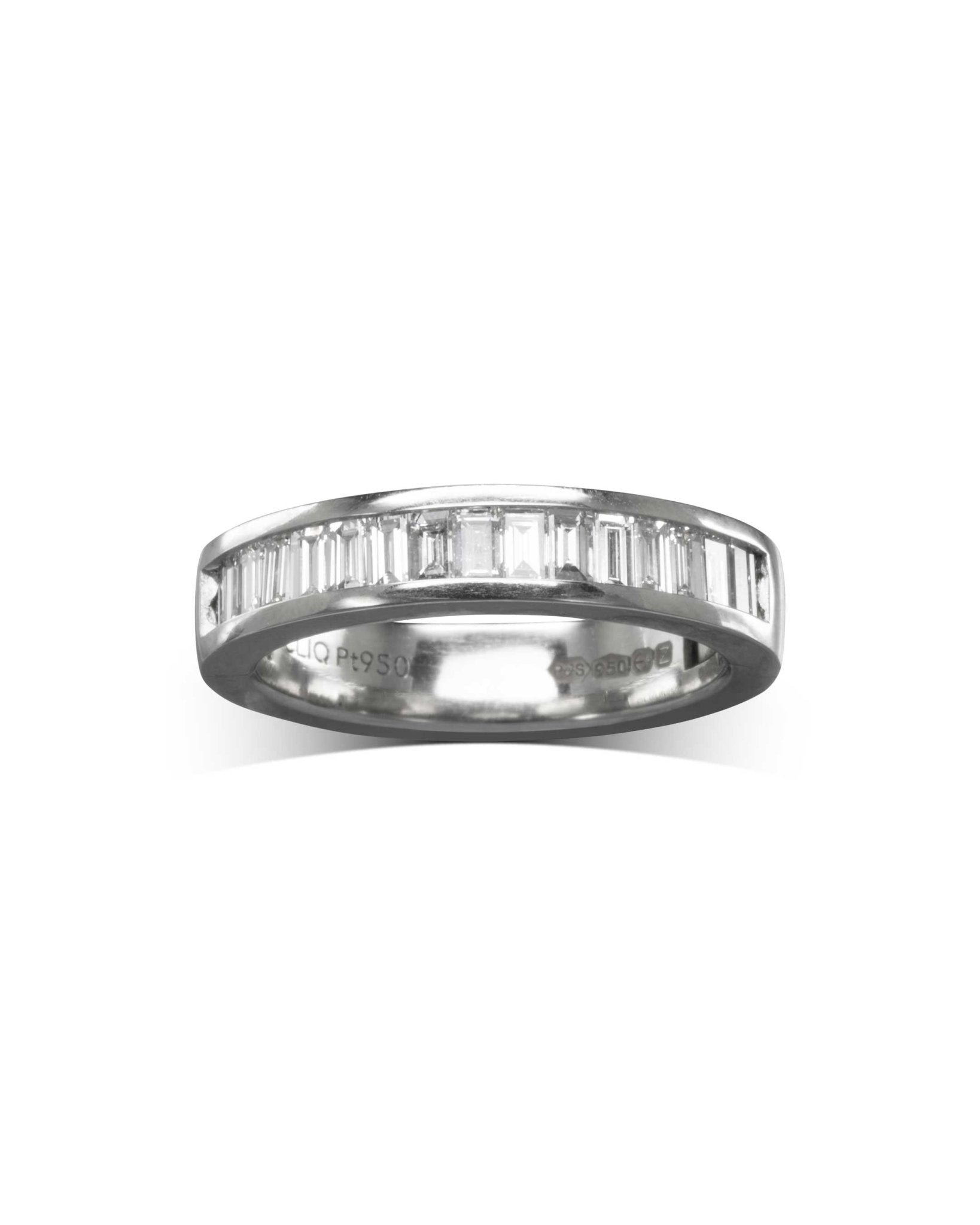 • Options polyvalentes : cette bague d'éternité en platine avec diamant baguette peut être fabriquée sur mesure en platine ou en or jaune 18 carats, vous offrant le choix du métal qui convient le mieux à votre style et à vos préférences.