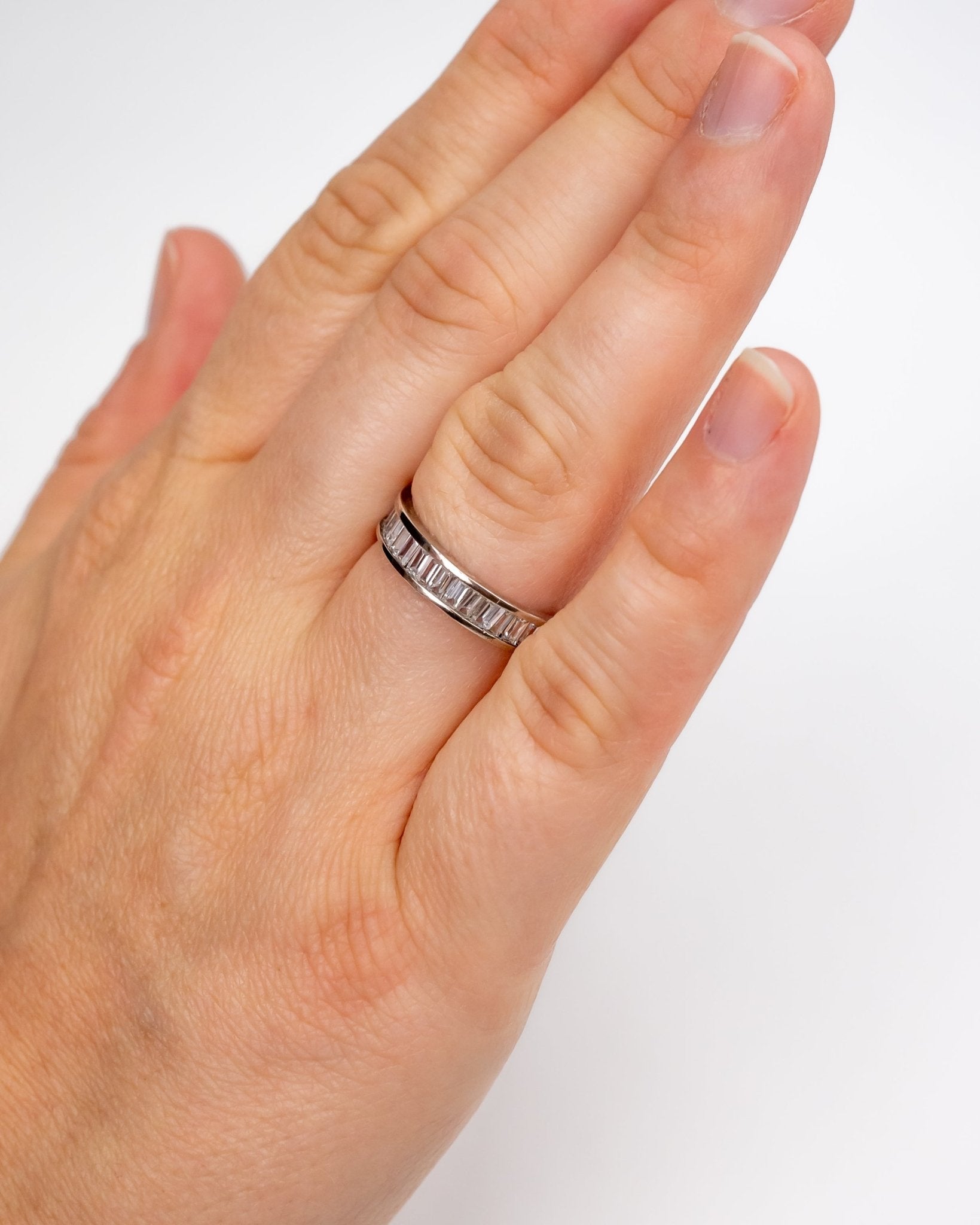 Bague d'éternité en platine avec diamants baguette (4 mm)