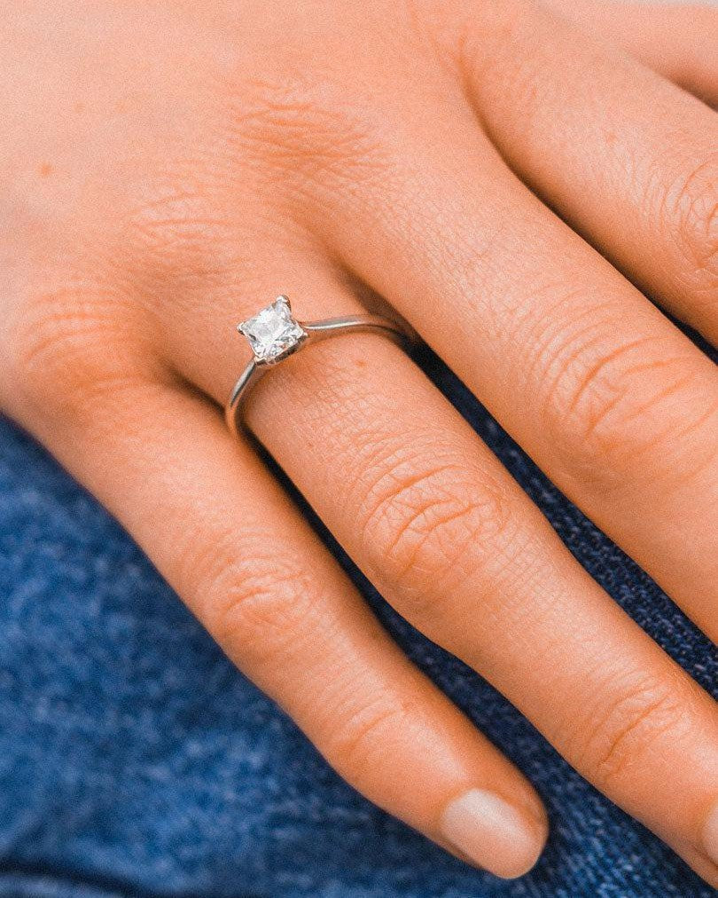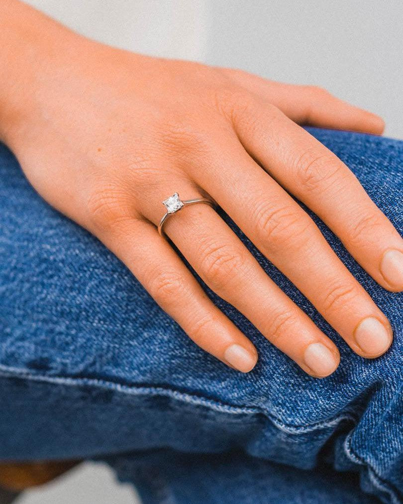 La bague de fiançailles en diamant à quatre griffes d'un demi-carat capture magnifiquement l'essence de votre histoire d'amour. Choisissez entre un diamant taille brillant rond ou un diamant taille princesse carré.