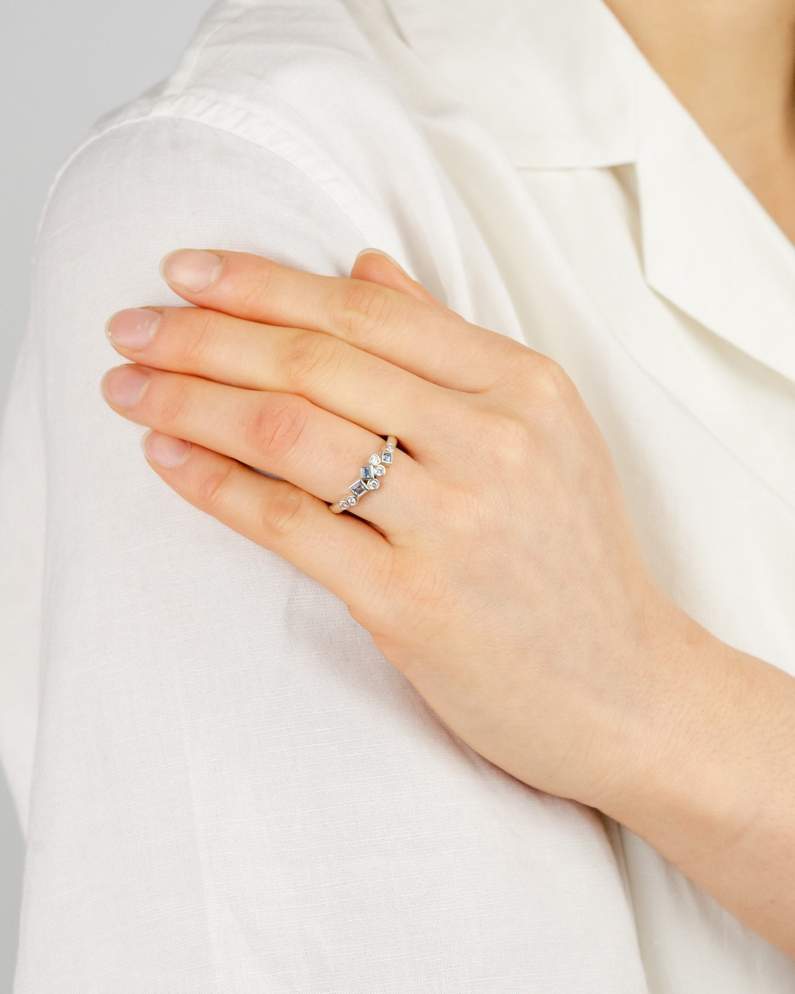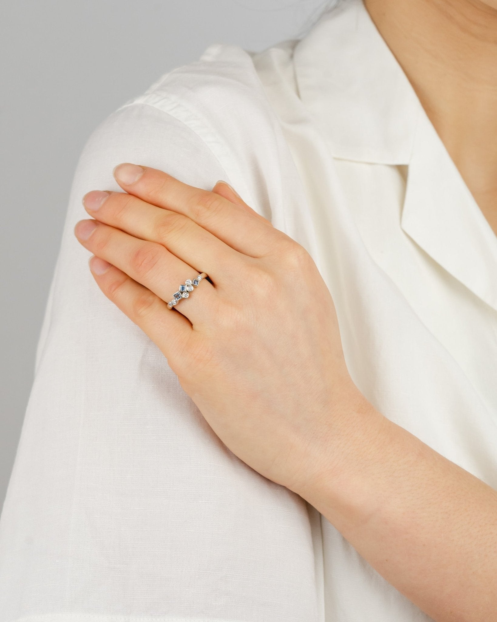 Bague demi-éternité en saphir et diamant rocheux Water Bubbles