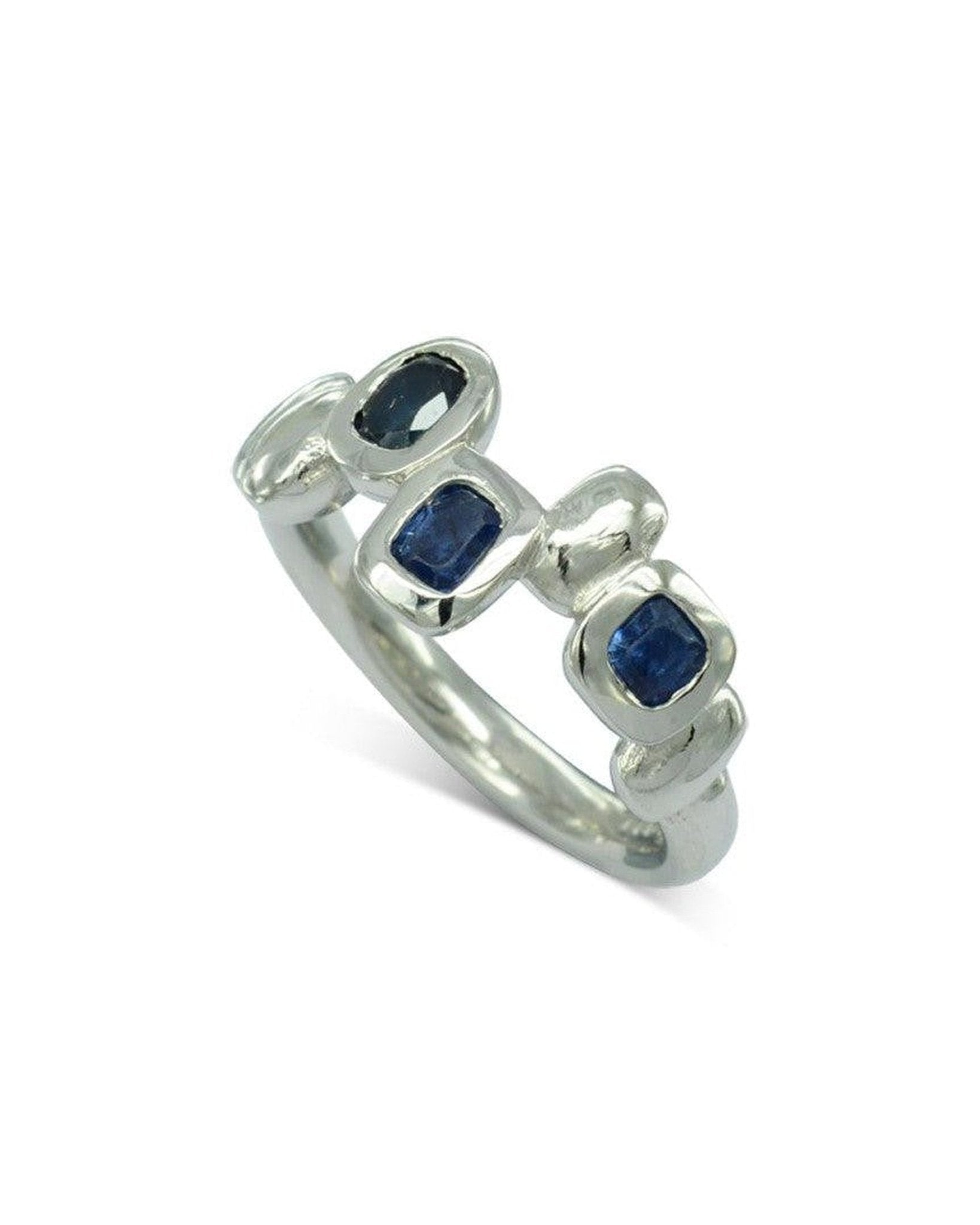 La bague demi-éternité en or 9 carats Pebble Sapphire s'inspire de la côte du Sussex. La pierre saphir lui confère un look intemporel et classique.