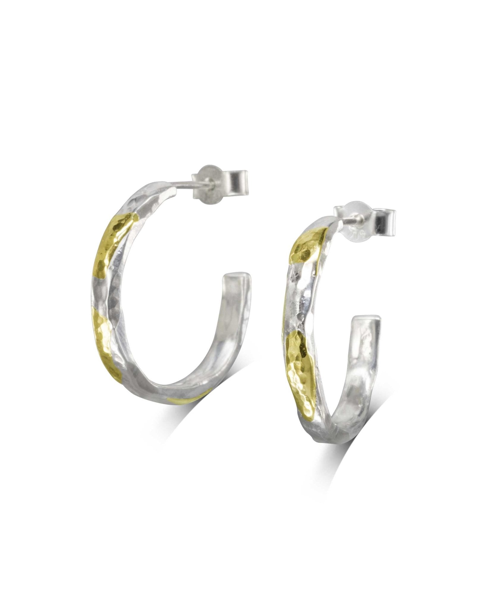 Les créoles martelées en argent et or associent la beauté de l'argent et de l'or jaune. Ces boucles d'oreilles offrent un superbe effet bicolore dans un design accrocheur et élégant.