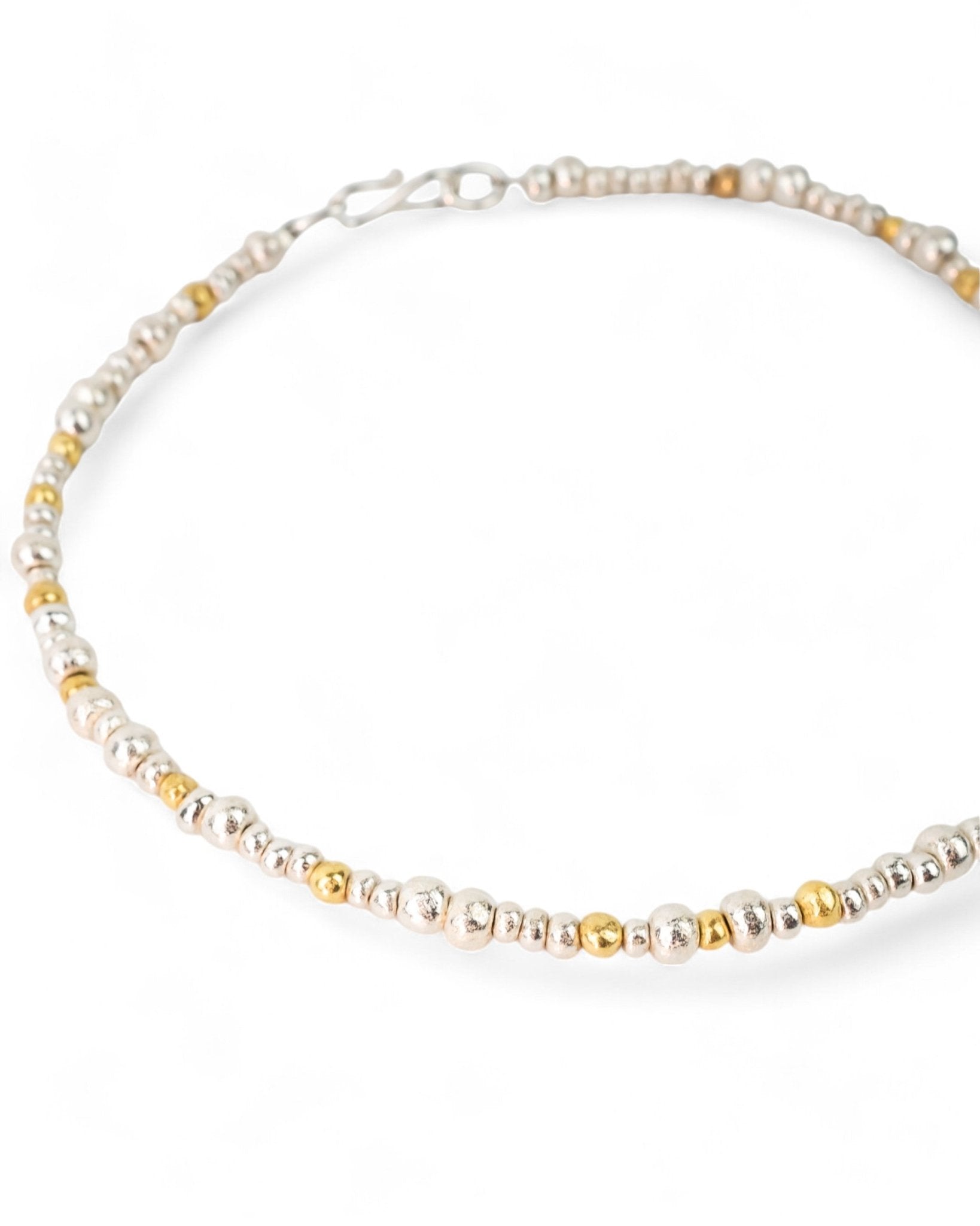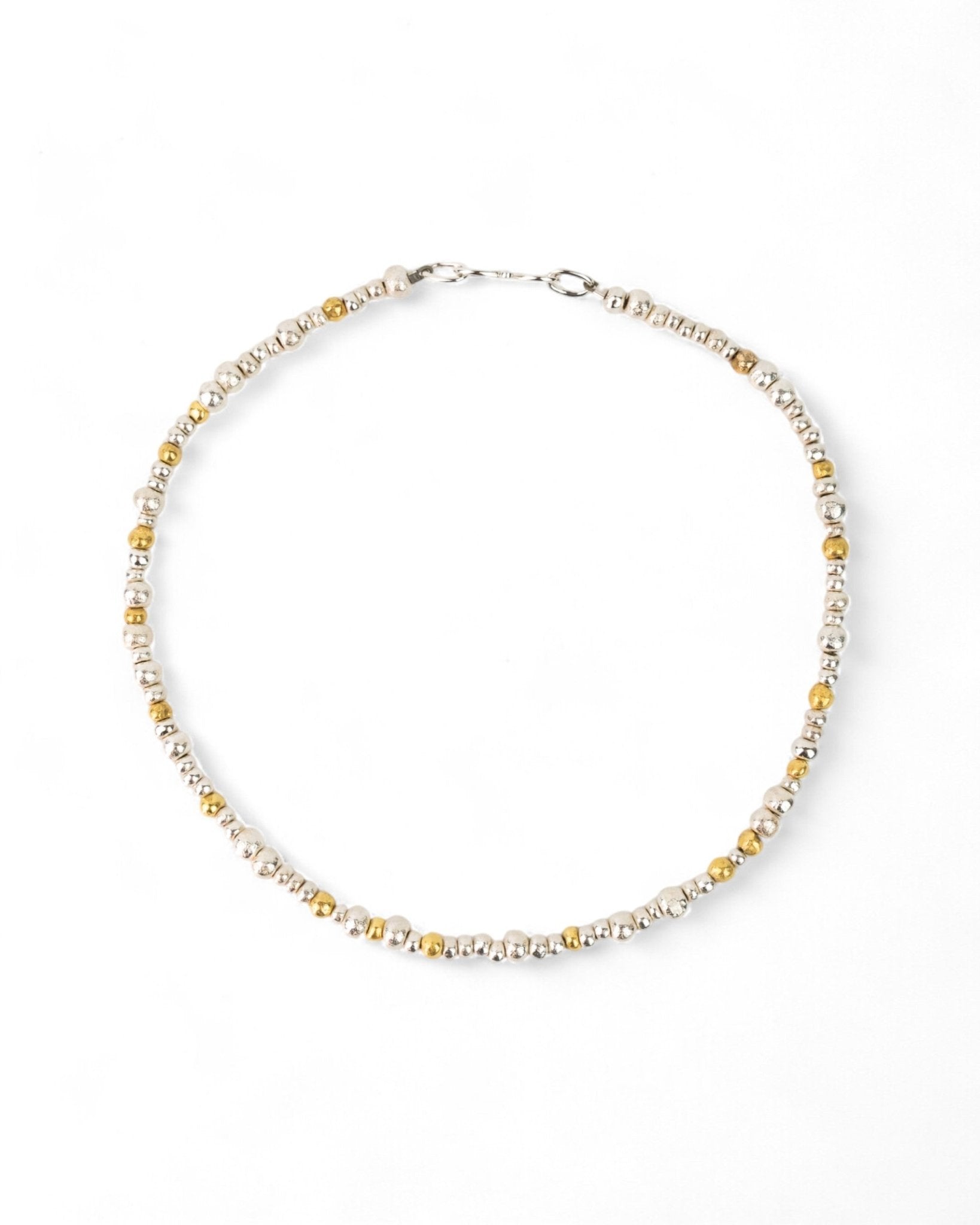 Le collier Random Nugget en argent et or est fabriqué à partir de perles en argent massif et en or fabriquées à la main individuellement. Ce collier est une célébration de l'artisanat, avec un design unique et organique qui met en valeur la beauté naturelle des matériaux.