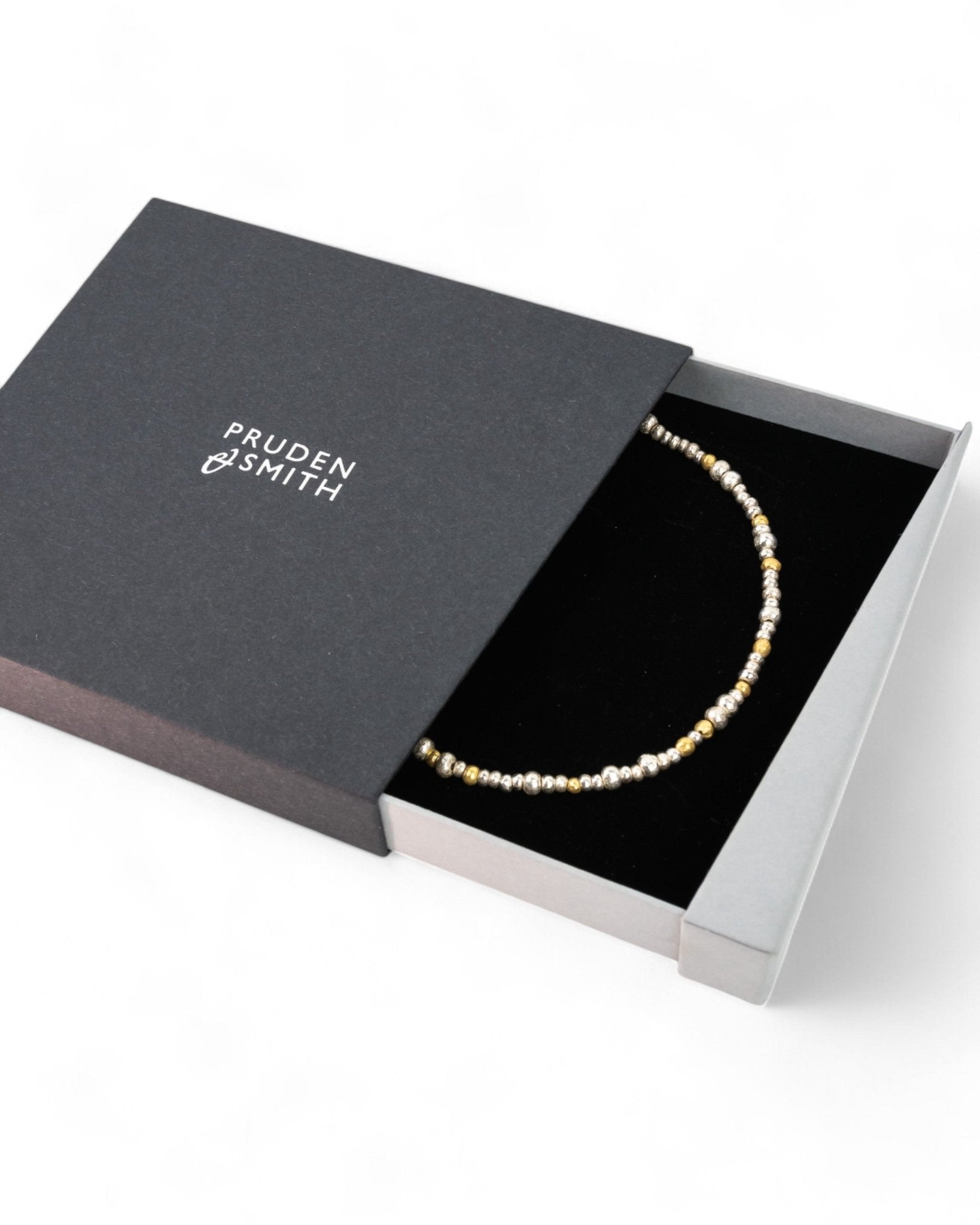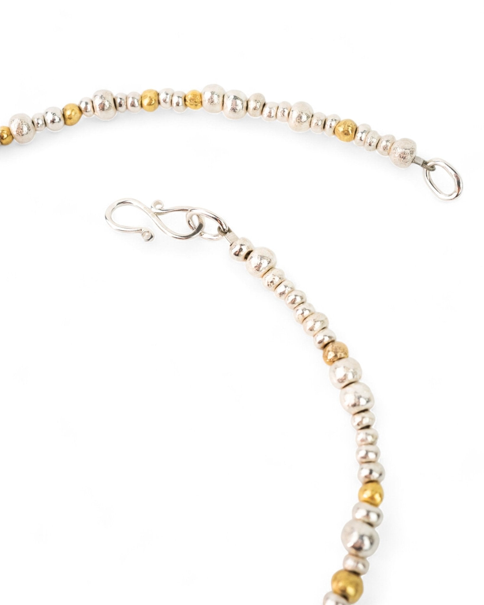 • Perles en argent et en or faites à la main : chaque perle de ce collier est fabriquée à la main individuellement en argent massif et en or, la plus grosse étant une pépite d'argent de 8 mm. Les perles sont solides, ce qui leur confère un poids substantiel et les rend résistantes aux chocs.