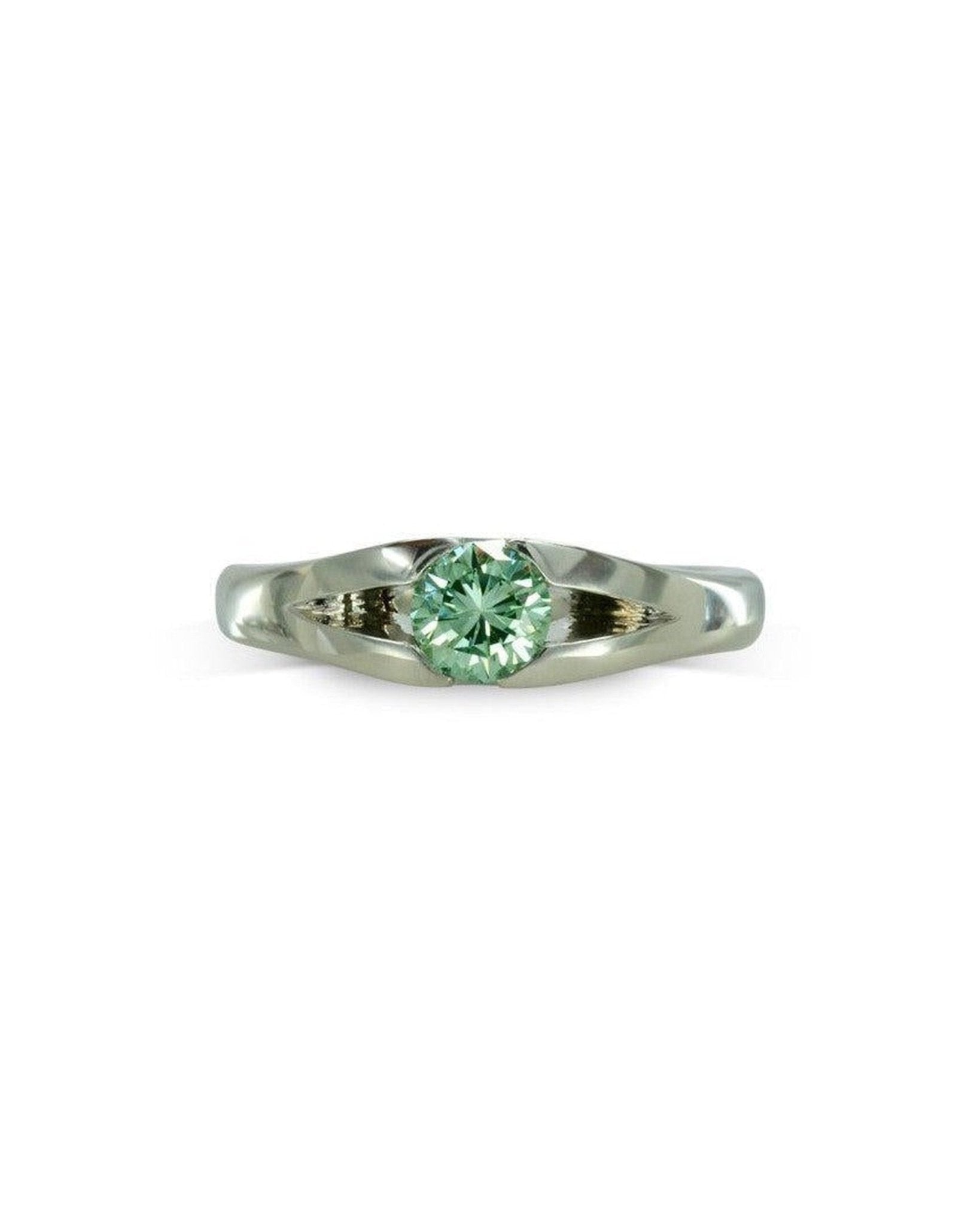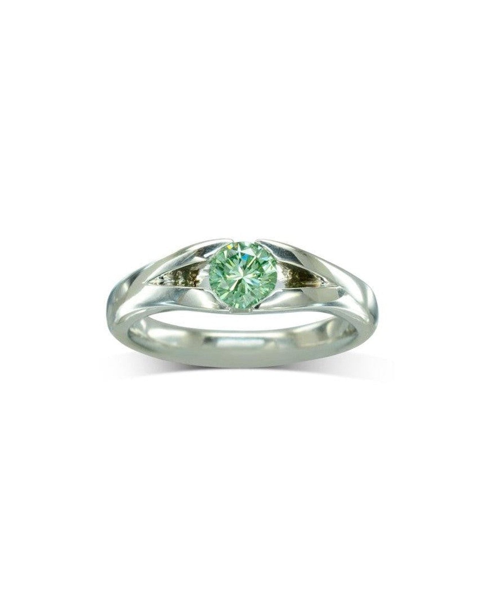 Bague de fiançailles en platine avec diamant vert sur mesure