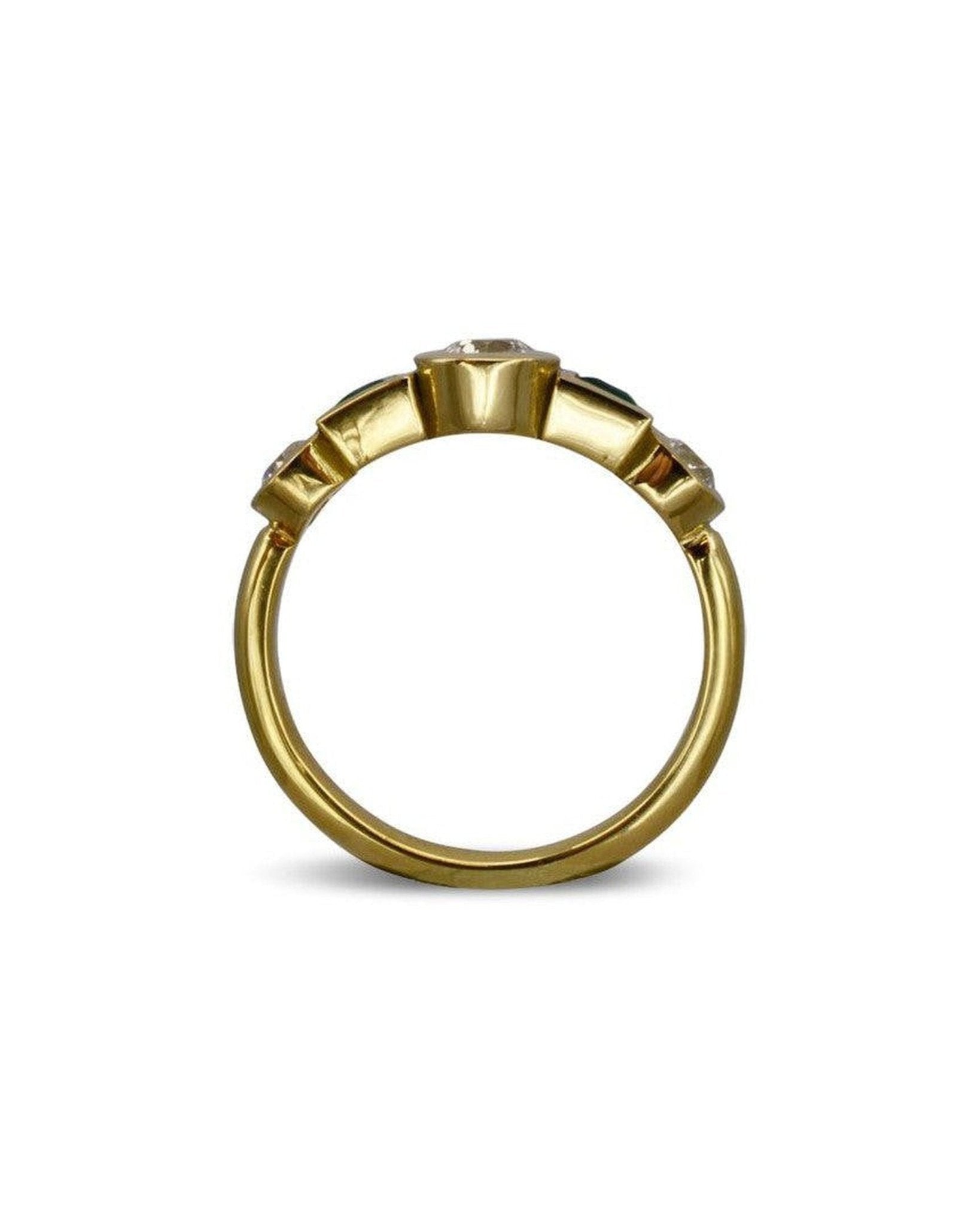 La bague en or jaune avec diamant émeraude marie l'éclat des diamants à la teinte riche et vibrante des émeraudes.