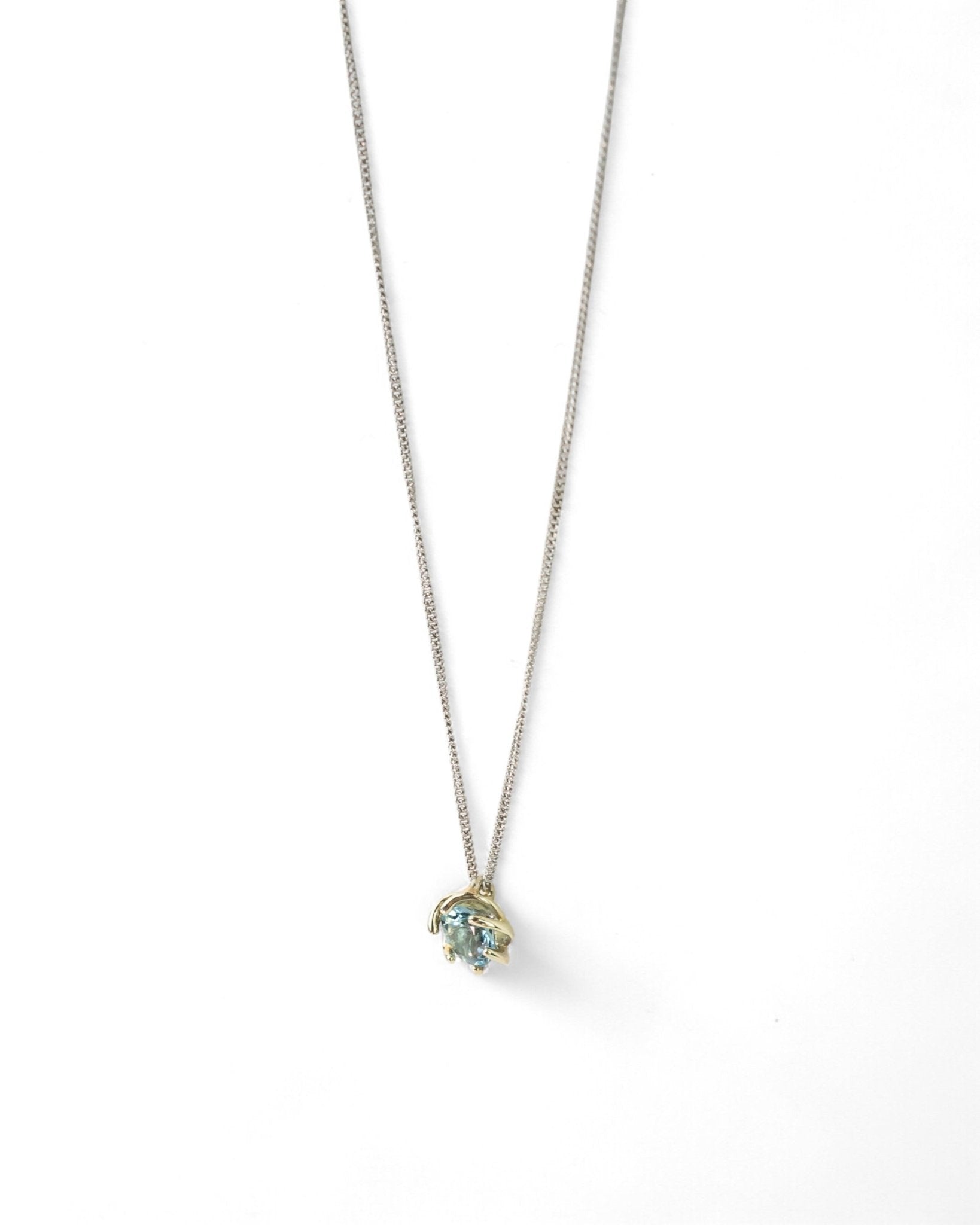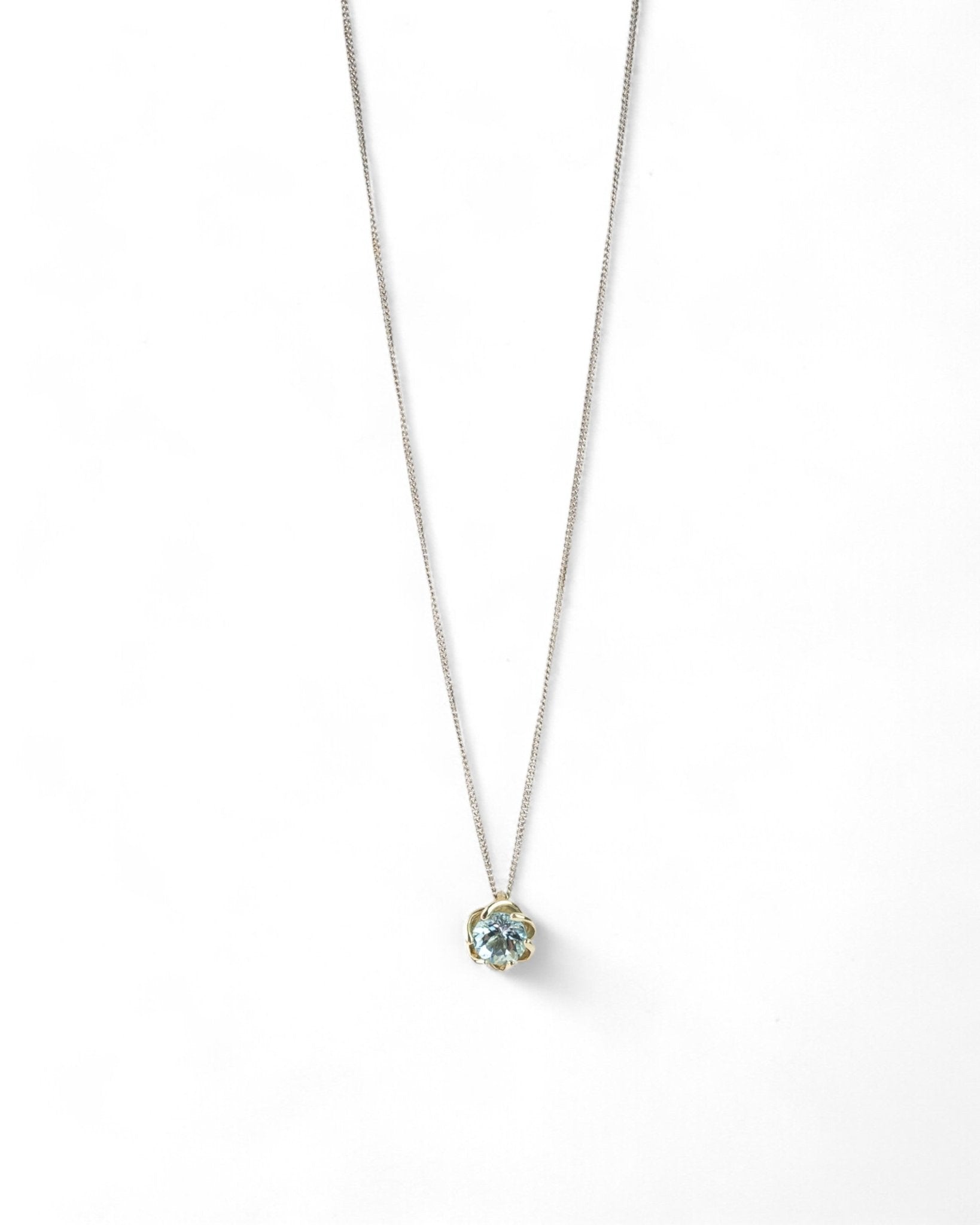 The Revolved Claw 9ct White Gold Aquamarine Pendant features a round aquamarine set in white gold.